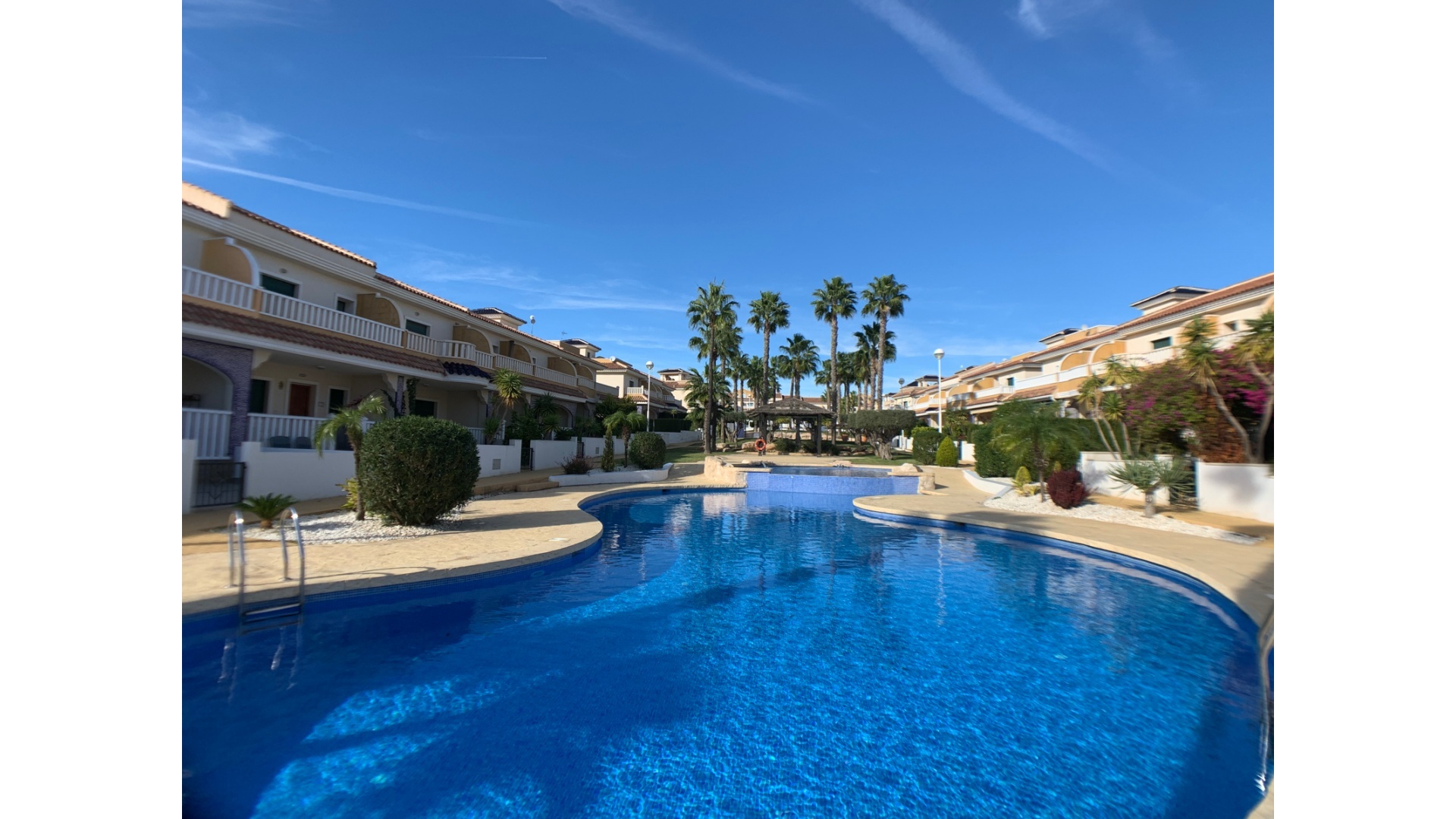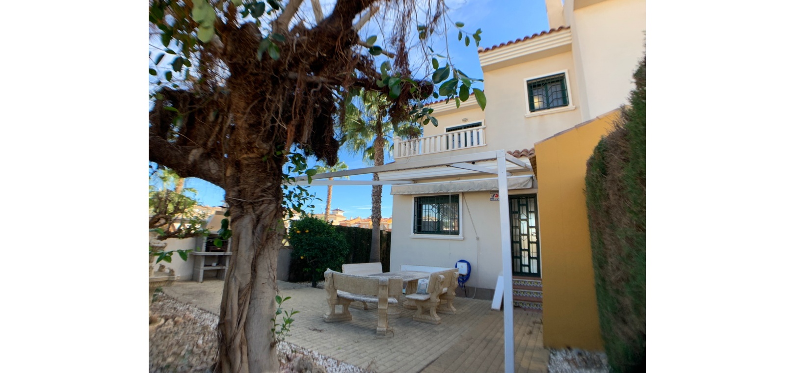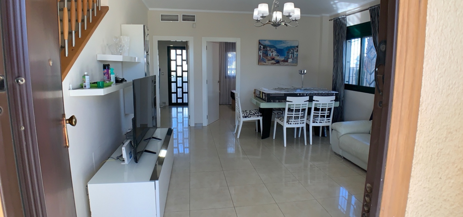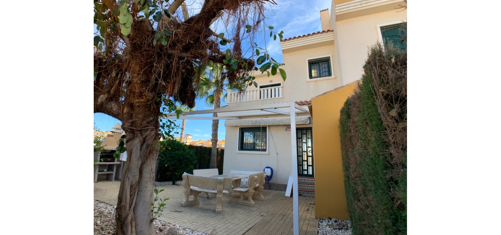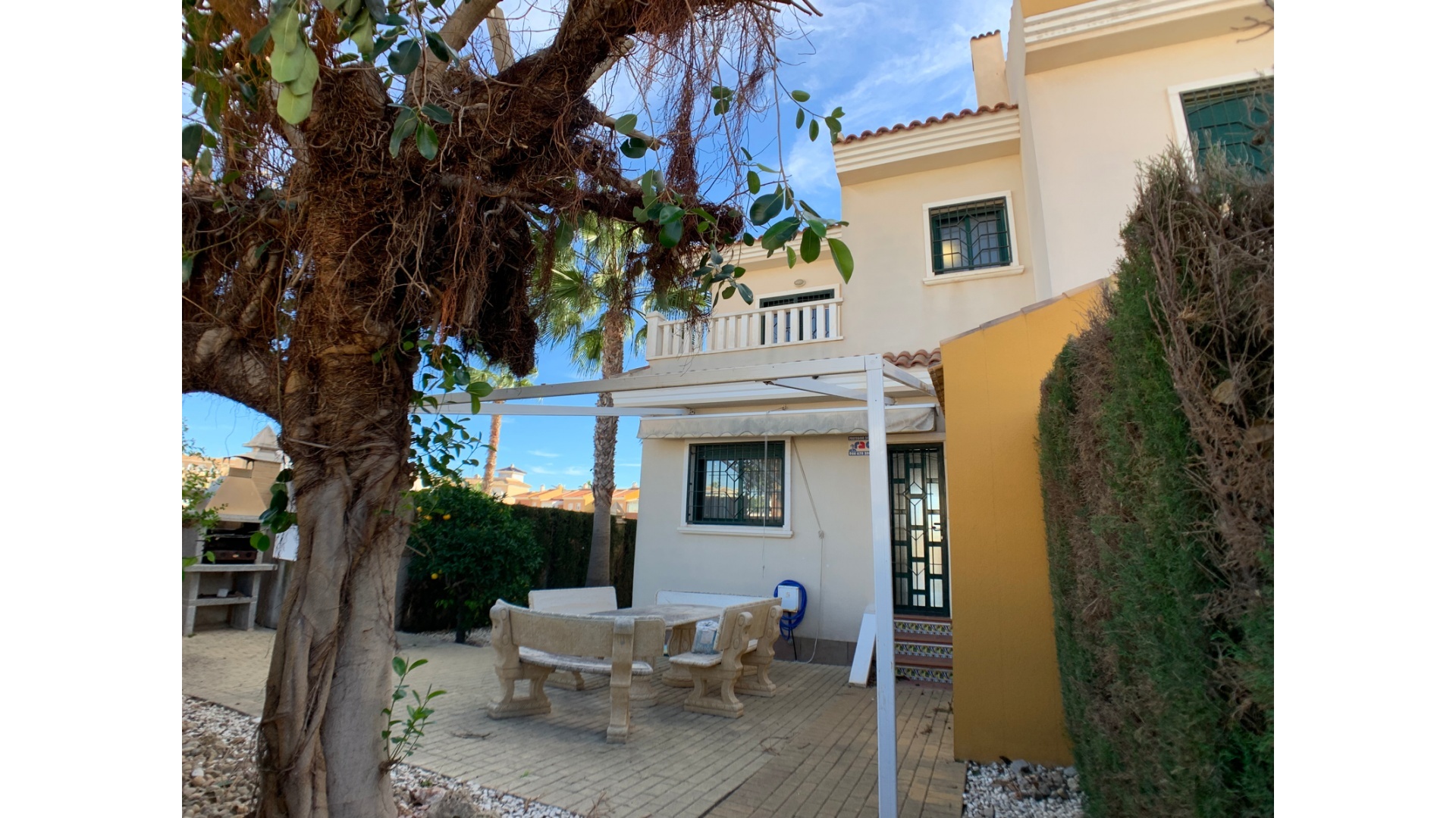 Welcome to this beautiful "Lola" style townhouse in the luxurious Albamar development.This development offers 5 communal pools, where one of them has a jacuzzi feature, and 2 of them are heated pools. This community is gated, has beautiful outside spaces with well maintened gardens and parking off road within the community. The property has a living room, kitchen, and one bedroom & bathroom on the first floor. From the kitchen you have excess to another private terrace. By the main entrance you have a beautiful terrace with plenty of sun. Here you will also find an upper terrace where you can close the windows to make it a perfect addition to the living room in the colder months. On the second floor you will find two bedrooms with wardrobes, and two bedrooms. From both of the bedrooms you have excess to a terrace. The house is sold furnished, and it has AC.