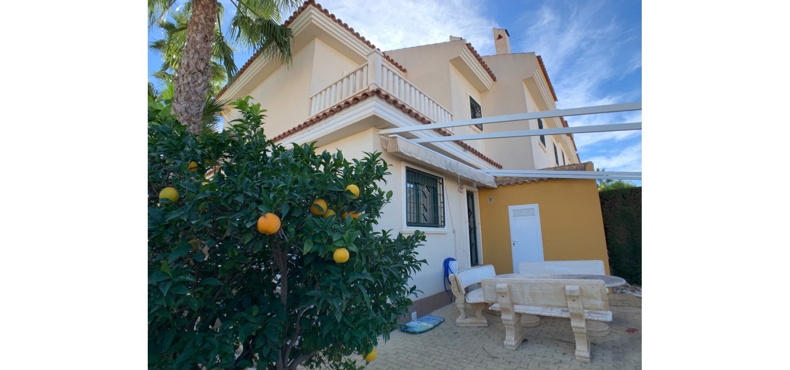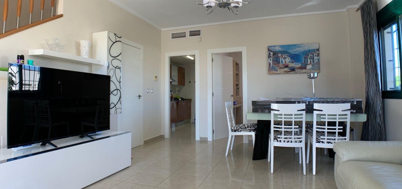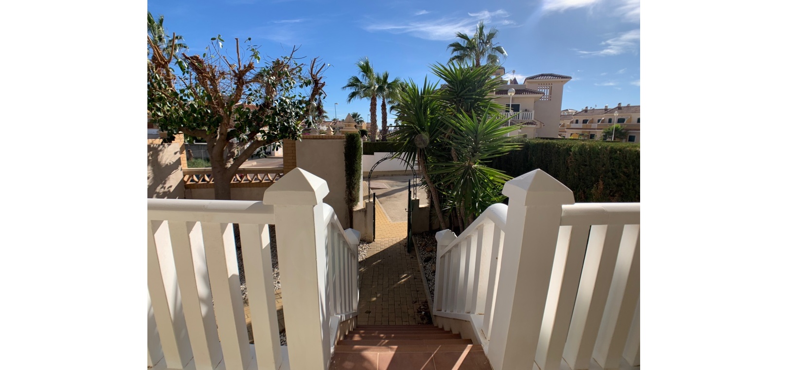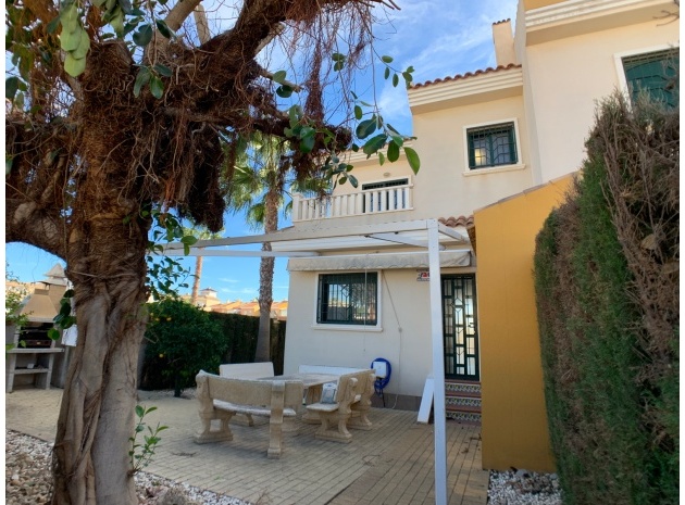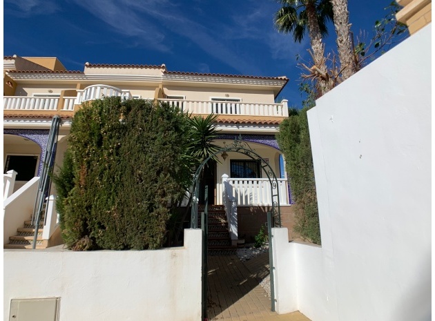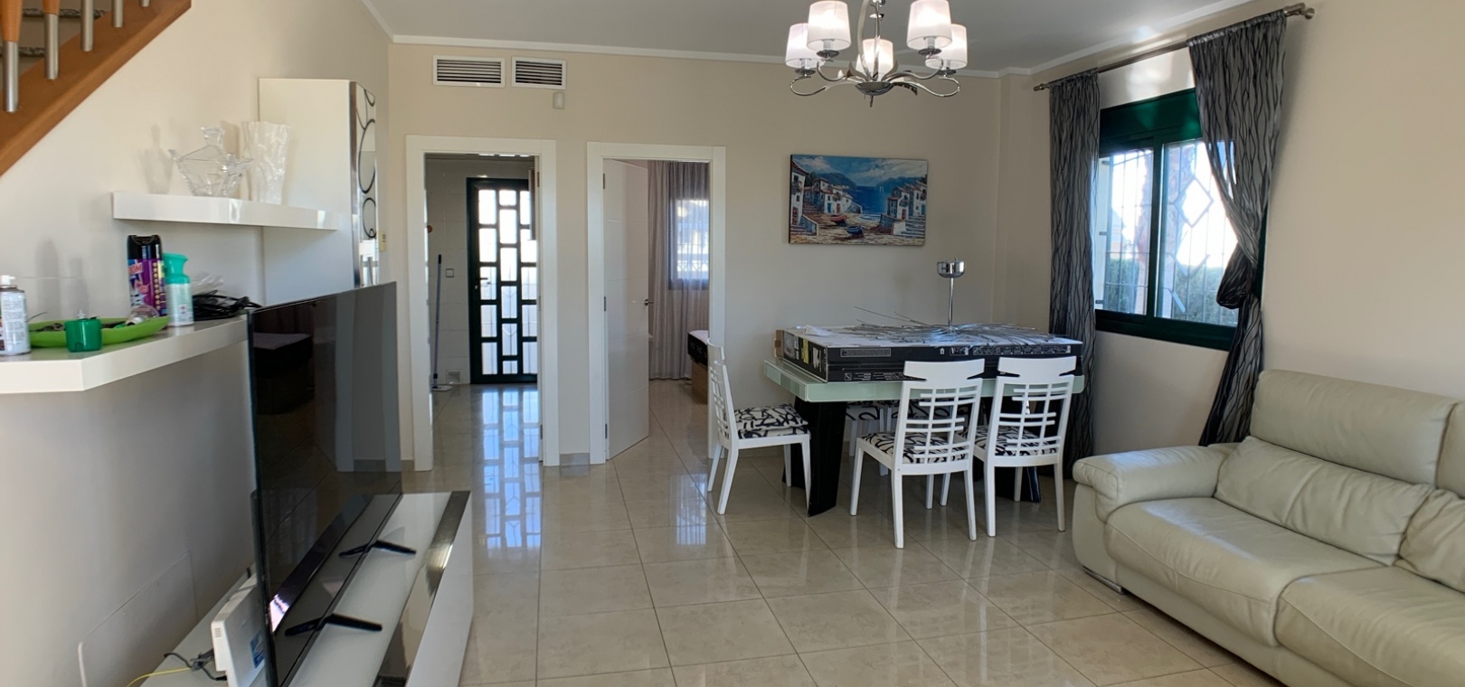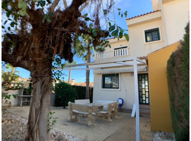 Welcome to this beautiful "Lola" style townhouse in the luxurious Albamar development.This development offers 5 communal pools, where one of them has a jacuzzi feature, and 2 of them are heated pools. This community is gated, has beautiful outside spaces with well maintened gardens and parking off road within the community. The property has a living room, kitchen, and one bedroom & bathroom on the first floor. From the kitchen you have excess to another private terrace. By the main entrance you have a beautiful terrace with plenty of sun. Here you will also find an upper terrace where you can close the windows to make it a perfect addition to the living room in the colder months. On the second floor you will find two bedrooms with wardrobes, and two bedrooms. From both of the bedrooms you have excess to a terrace. The house is sold furnished, and it has AC.