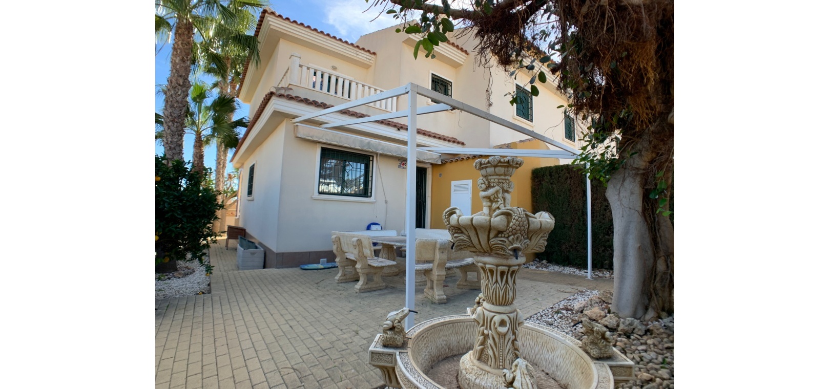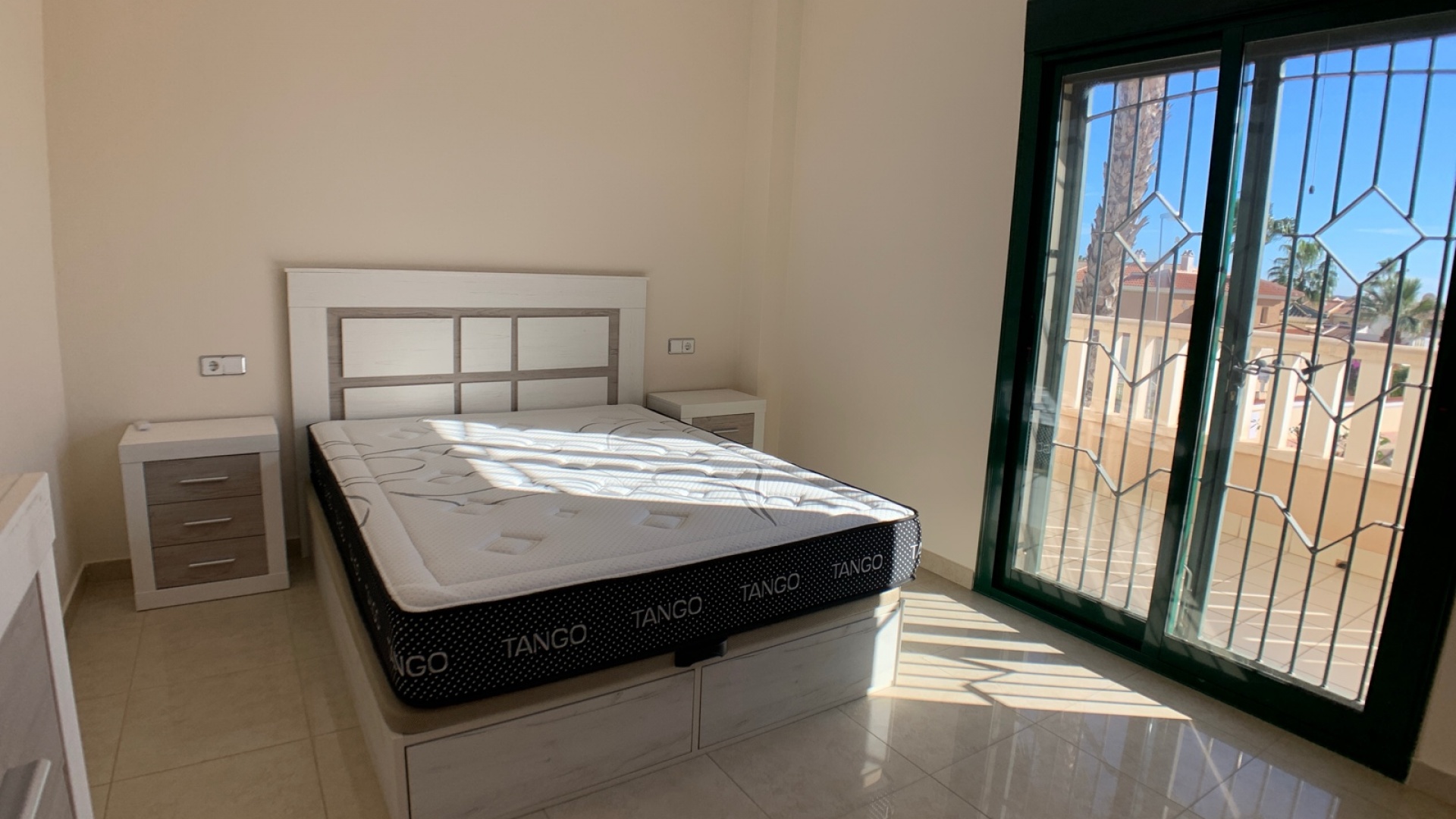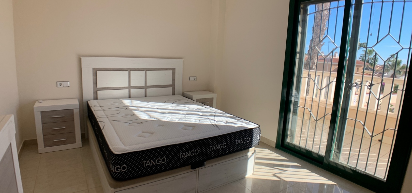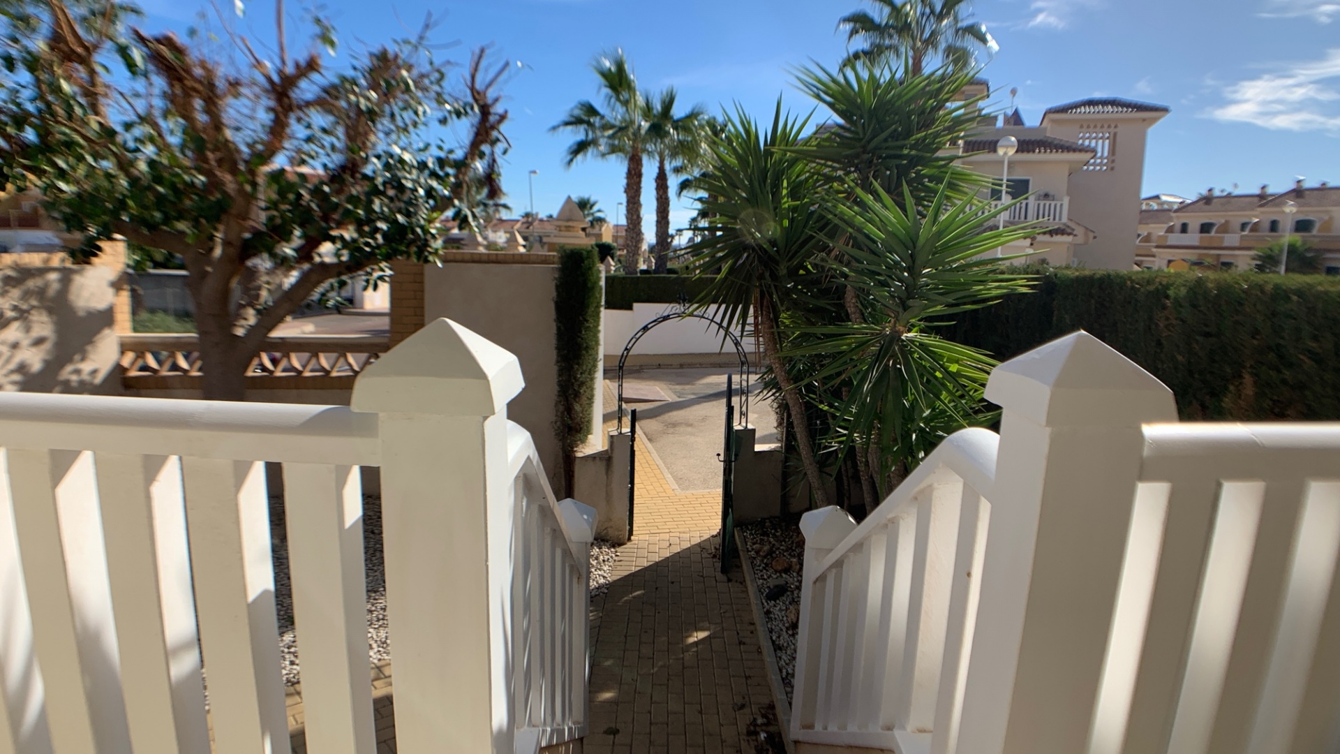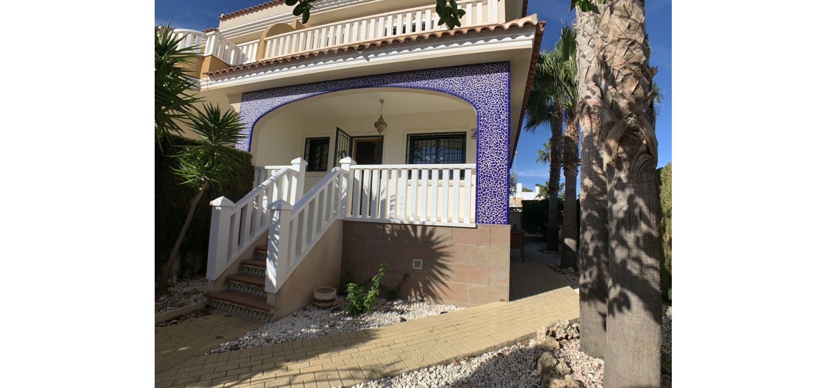 Welcome to this beautiful "Lola" style townhouse in the luxurious Albamar development.This development offers 5 communal pools, where one of them has a jacuzzi feature, and 2 of them are heated pools. This community is gated, has beautiful outside spaces with well maintened gardens and parking off road within the community. The property has a living room, kitchen, and one bedroom & bathroom on the first floor. From the kitchen you have excess to another private terrace. By the main entrance you have a beautiful terrace with plenty of sun. Here you will also find an upper terrace where you can close the windows to make it a perfect addition to the living room in the colder months. On the second floor you will find two bedrooms with wardrobes, and two bedrooms. From both of the bedrooms you have excess to a terrace. The house is sold furnished, and it has AC.
