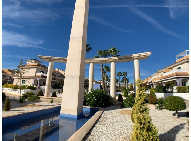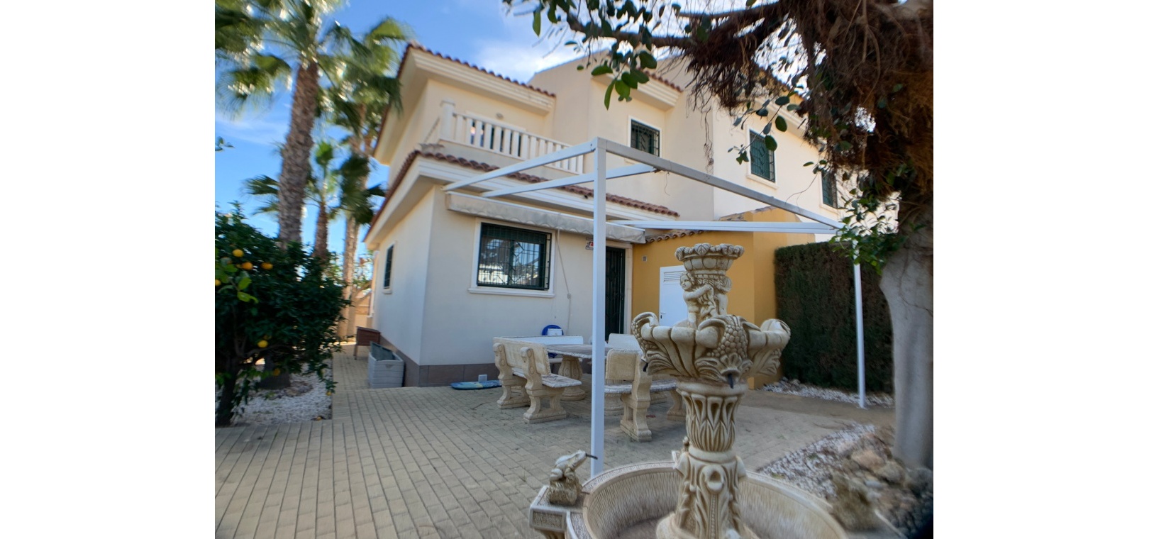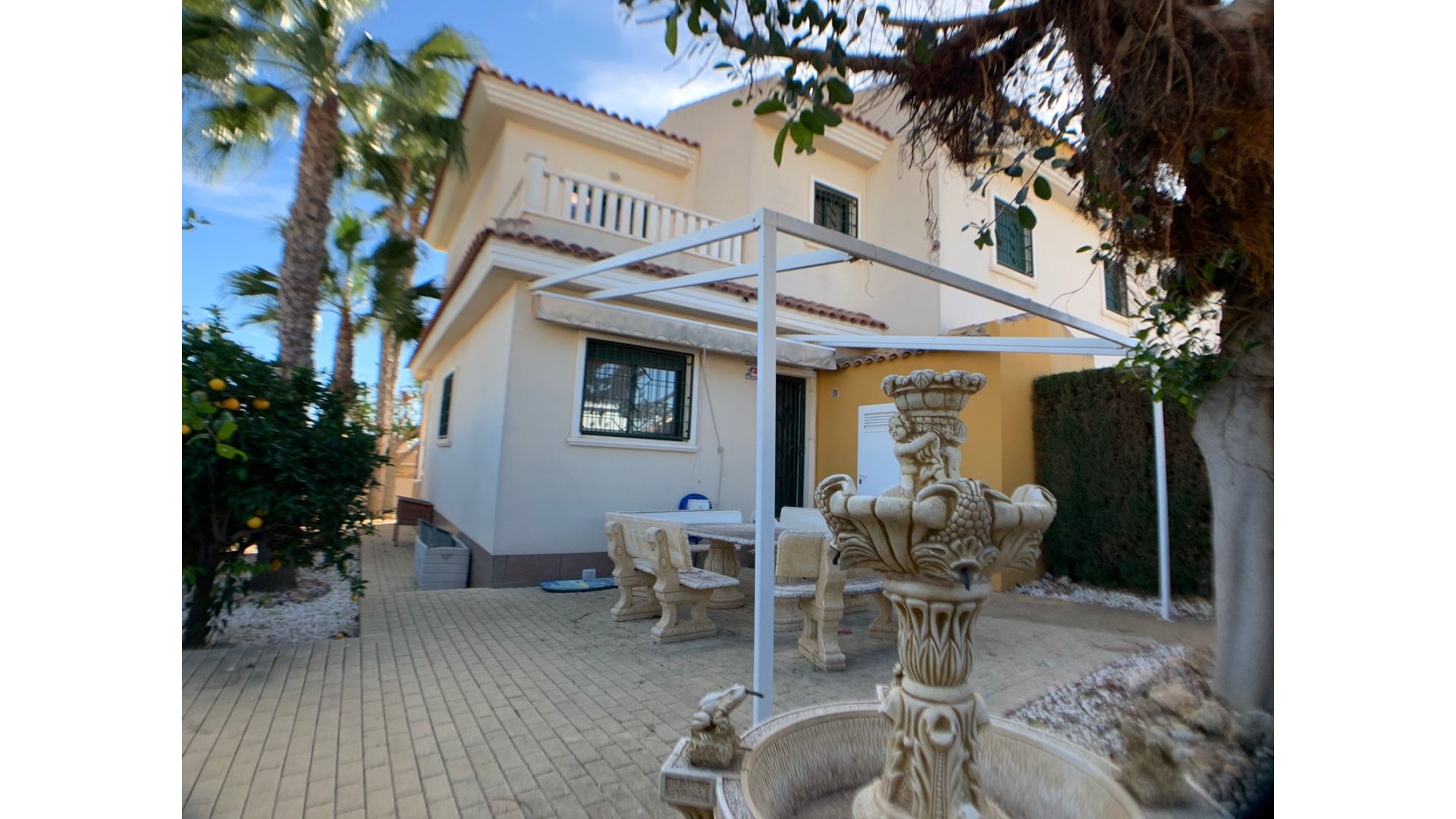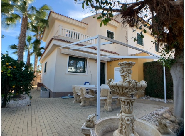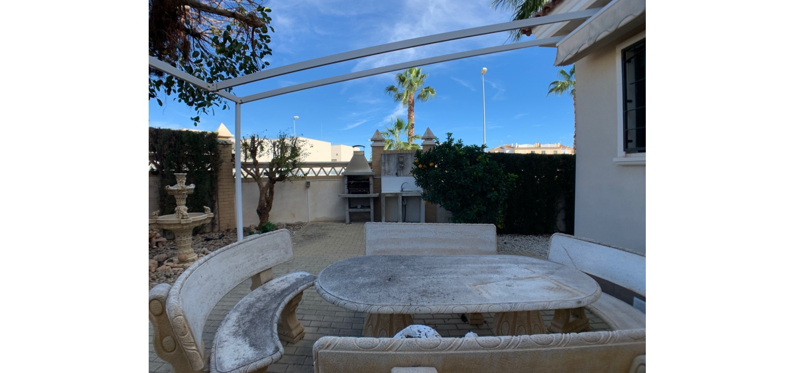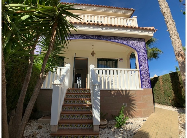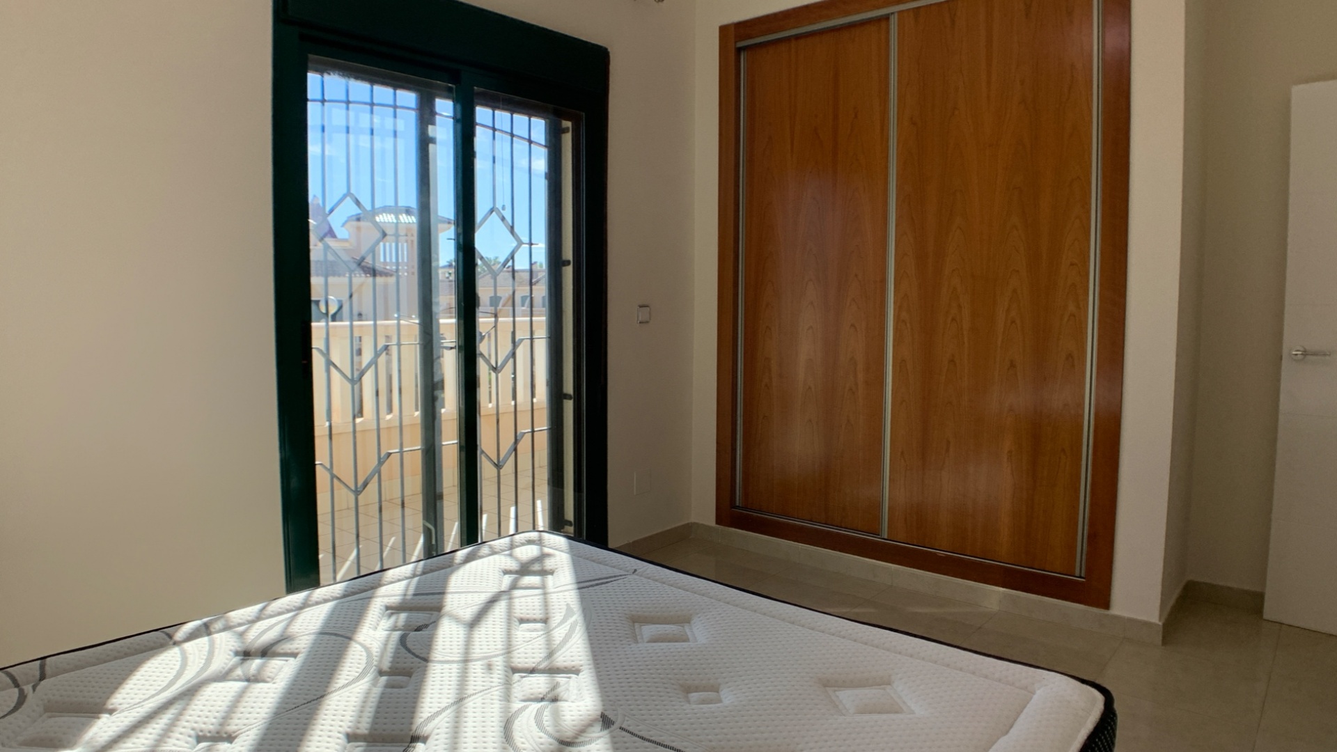 Welcome to this beautiful "Lola" style townhouse in the luxurious Albamar development.This development offers 5 communal pools, where one of them has a jacuzzi feature, and 2 of them are heated pools. This community is gated, has beautiful outside spaces with well maintened gardens and parking off road within the community. The property has a living room, kitchen, and one bedroom & bathroom on the first floor. From the kitchen you have excess to another private terrace. By the main entrance you have a beautiful terrace with plenty of sun. Here you will also find an upper terrace where you can close the windows to make it a perfect addition to the living room in the colder months. On the second floor you will find two bedrooms with wardrobes, and two bedrooms. From both of the bedrooms you have excess to a terrace. The house is sold furnished, and it has AC.