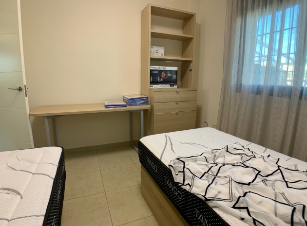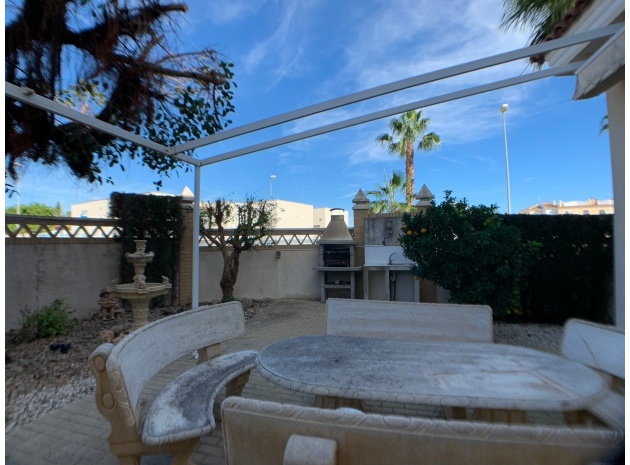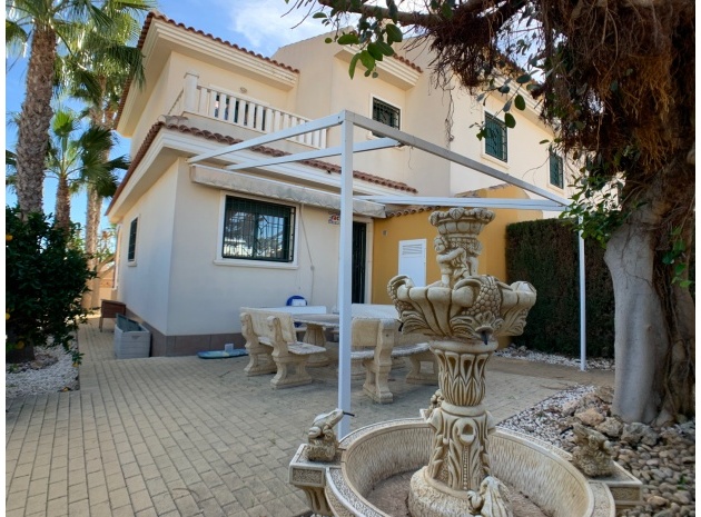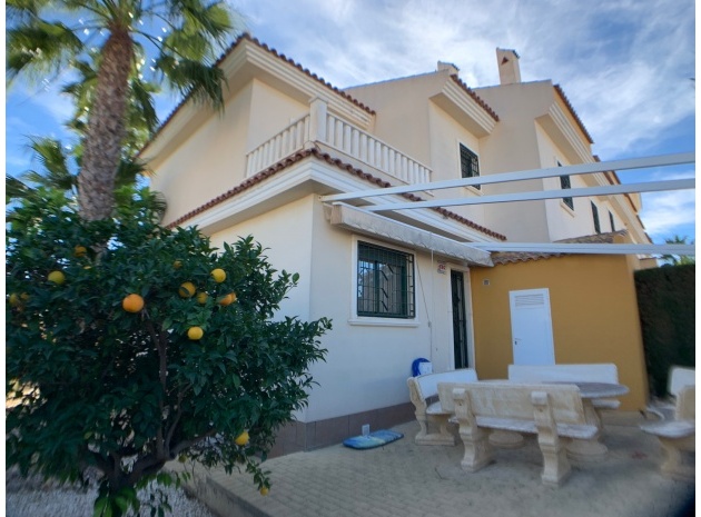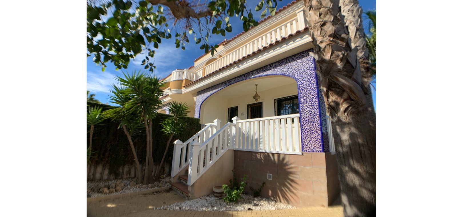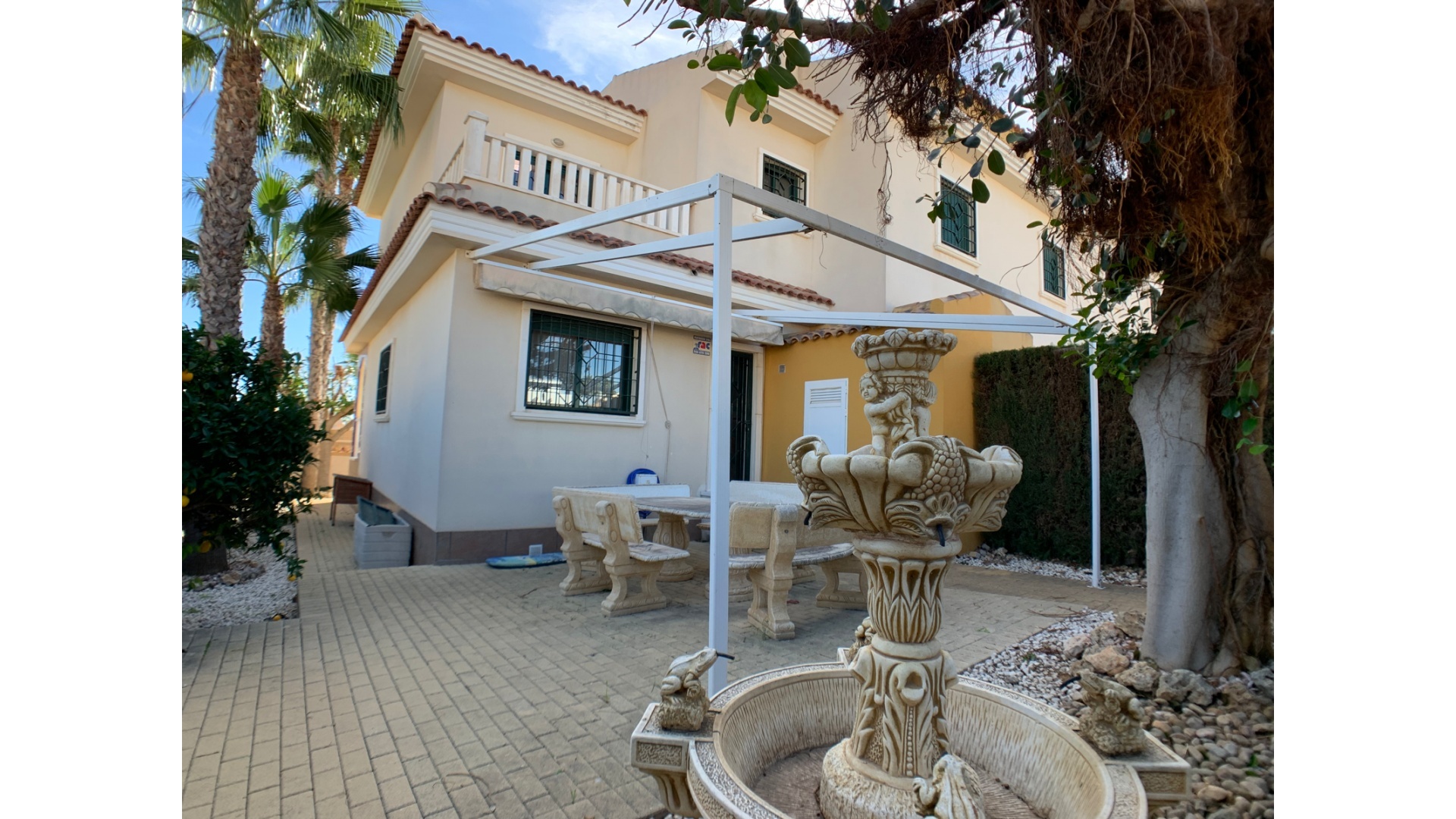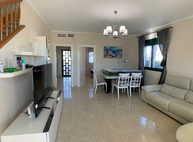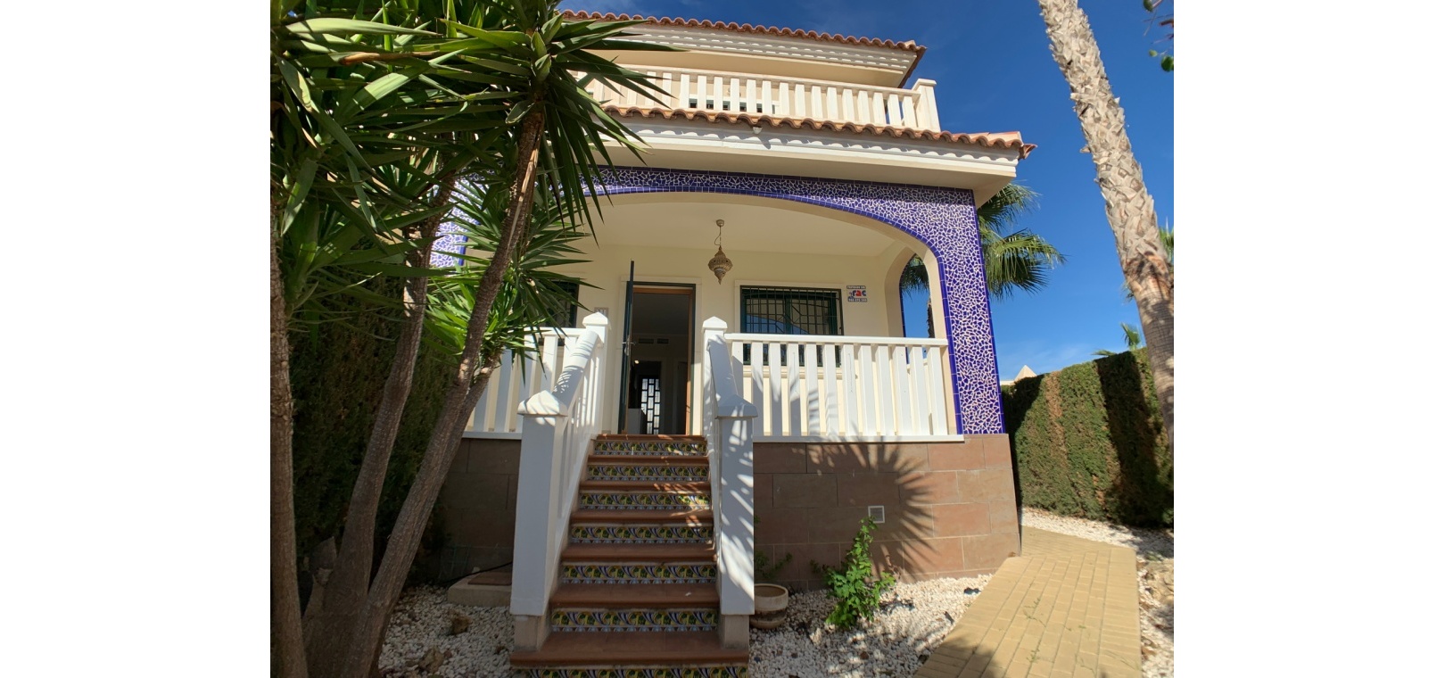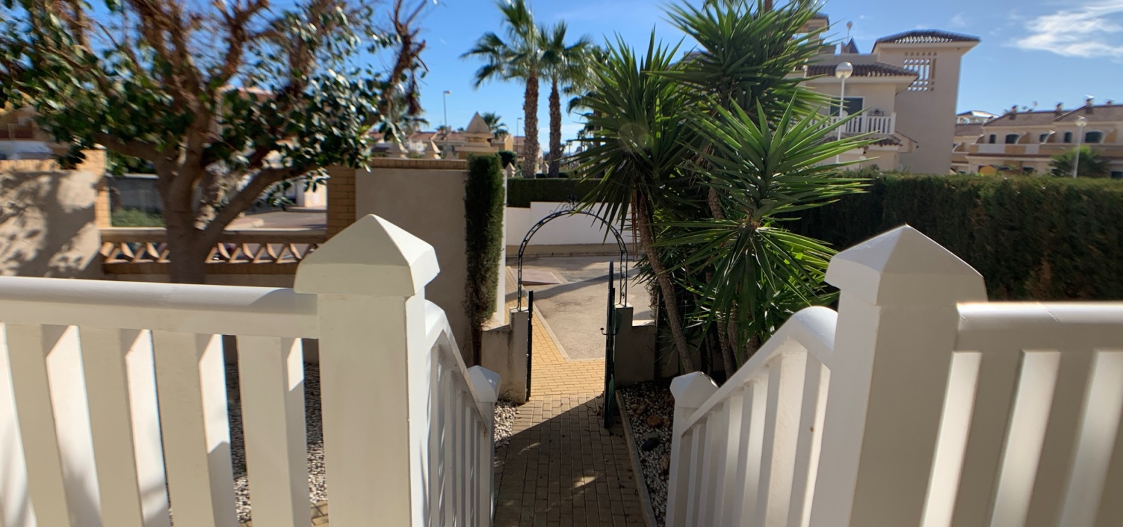 Welcome to this beautiful "Lola" style townhouse in the luxurious Albamar development.This development offers 5 communal pools, where one of them has a jacuzzi feature, and 2 of them are heated pools. This community is gated, has beautiful outside spaces with well maintened gardens and parking off road within the community. The property has a living room, kitchen, and one bedroom & bathroom on the first floor. From the kitchen you have excess to another private terrace. By the main entrance you have a beautiful terrace with plenty of sun. Here you will also find an upper terrace where you can close the windows to make it a perfect addition to the living room in the colder months. On the second floor you will find two bedrooms with wardrobes, and two bedrooms. From both of the bedrooms you have excess to a terrace. The house is sold furnished, and it has AC.
