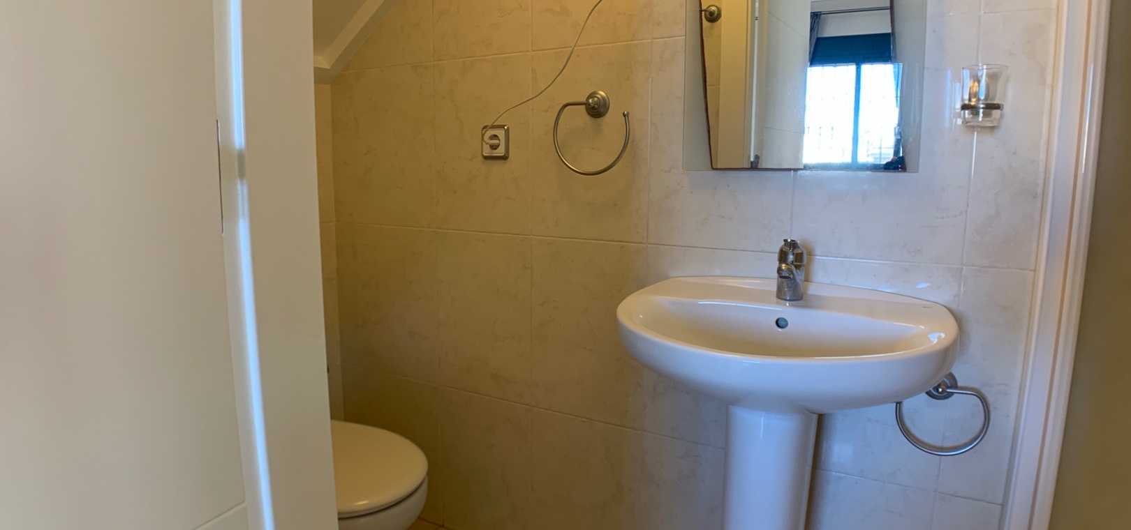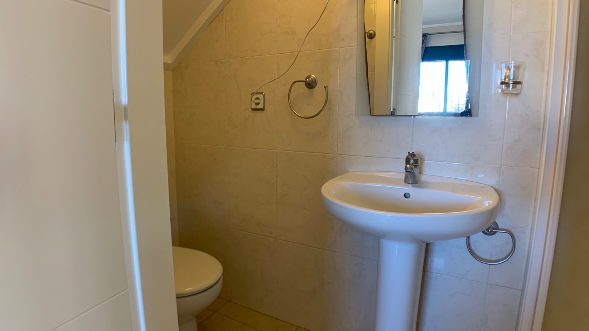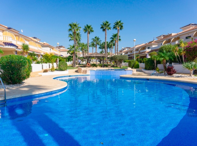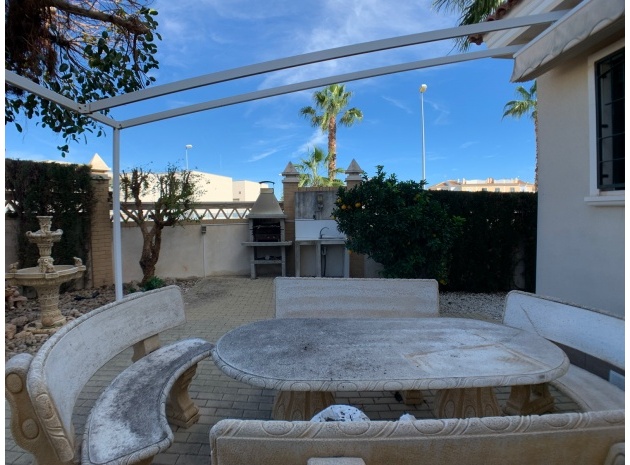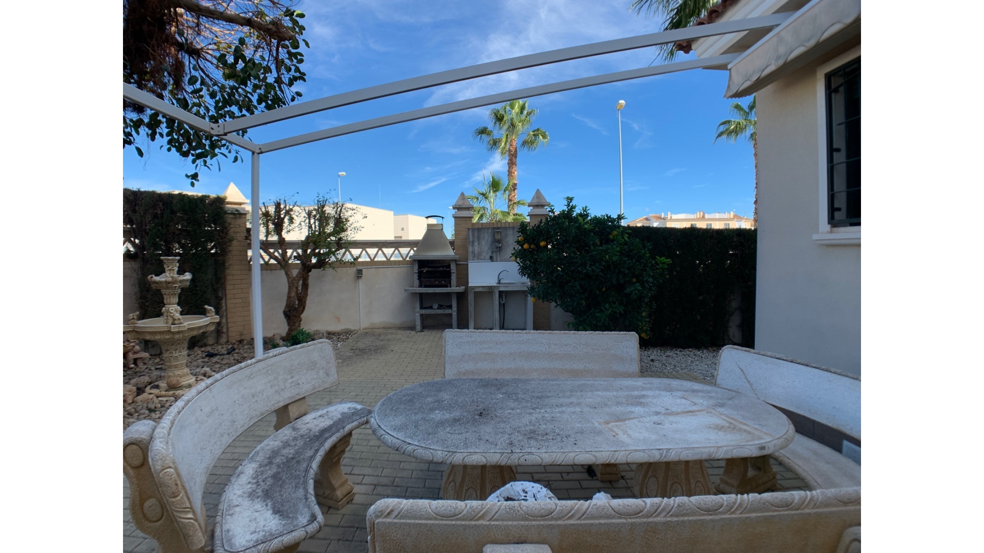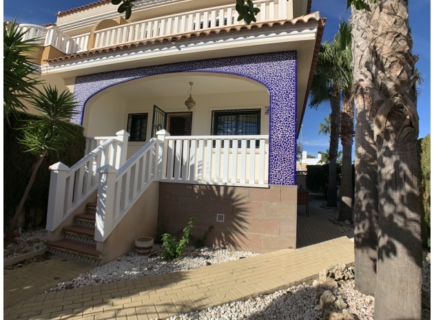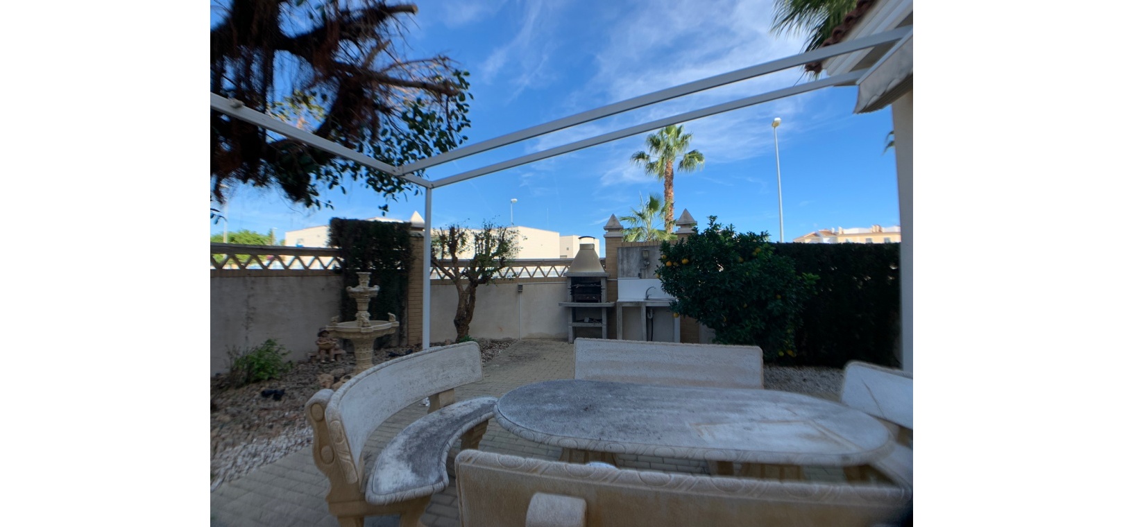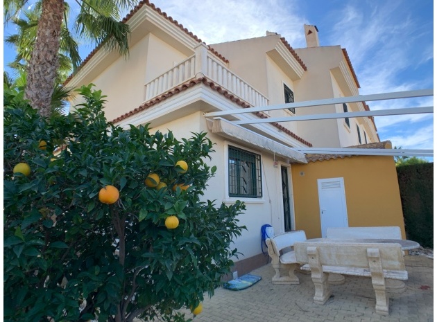 Welcome to this beautiful "Lola" style townhouse in the luxurious Albamar development.This development offers 5 communal pools, where one of them has a jacuzzi feature, and 2 of them are heated pools. This community is gated, has beautiful outside spaces with well maintened gardens and parking off road within the community. The property has a living room, kitchen, and one bedroom & bathroom on the first floor. From the kitchen you have excess to another private terrace. By the main entrance you have a beautiful terrace with plenty of sun. Here you will also find an upper terrace where you can close the windows to make it a perfect addition to the living room in the colder months. On the second floor you will find two bedrooms with wardrobes, and two bedrooms. From both of the bedrooms you have excess to a terrace. The house is sold furnished, and it has AC.