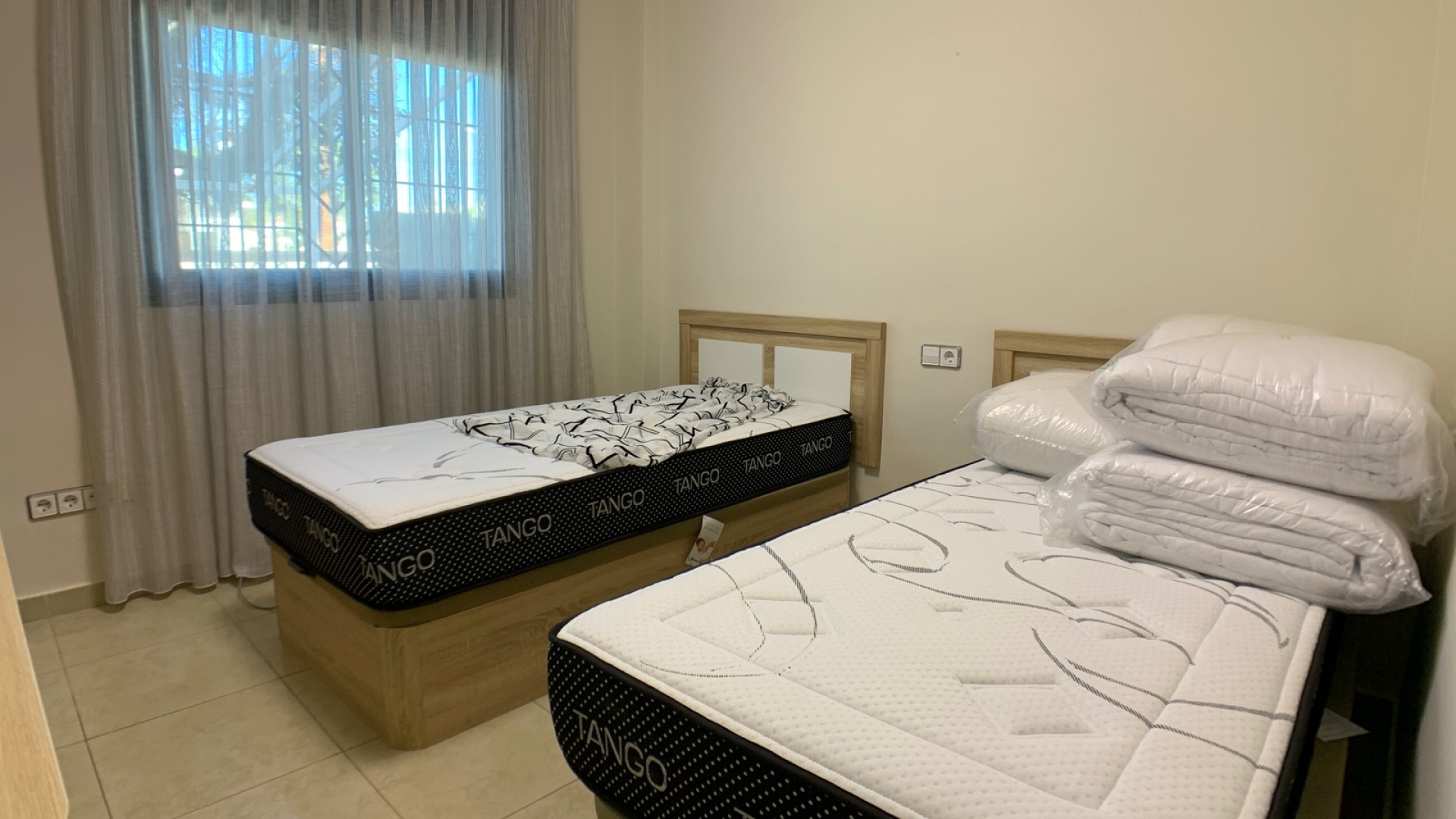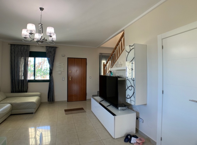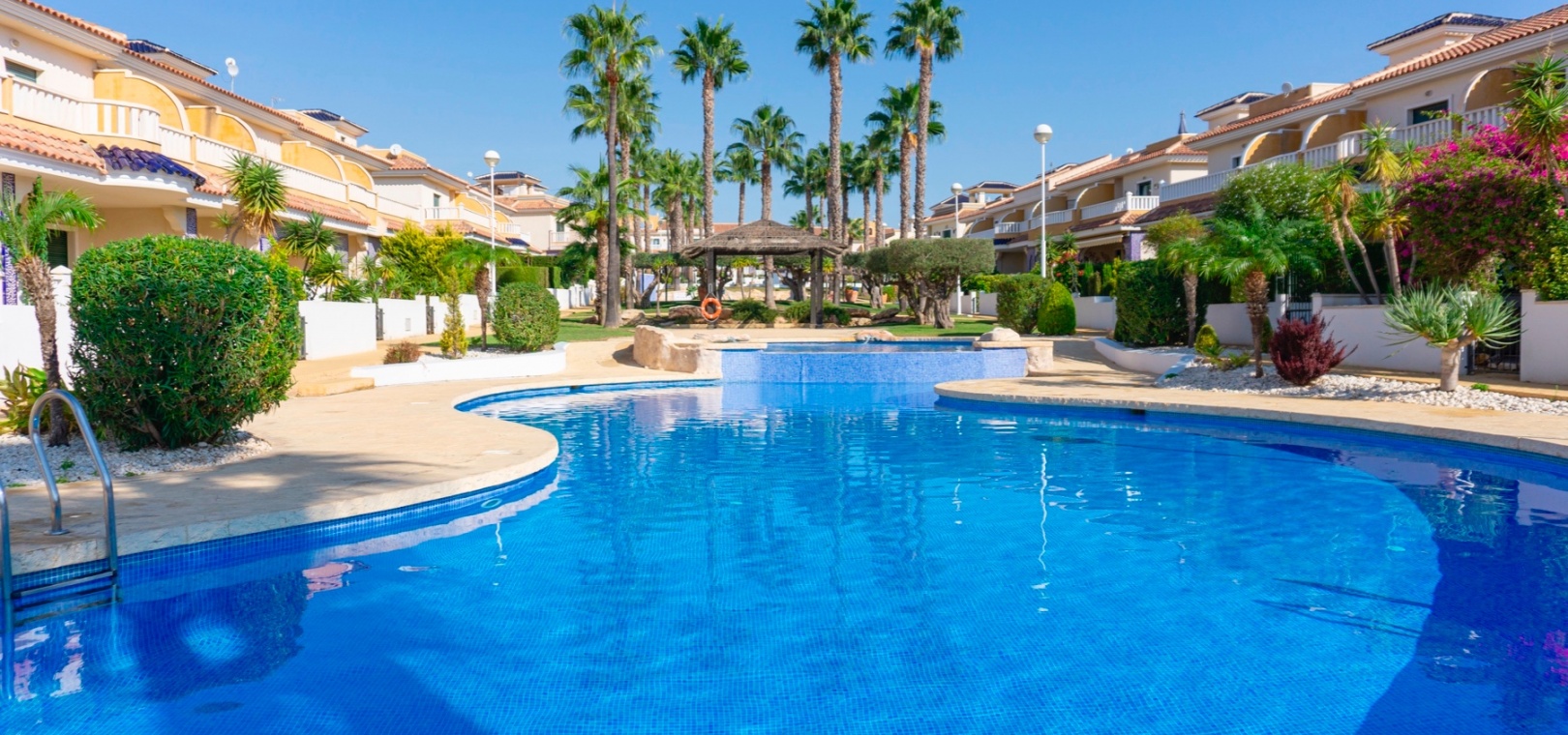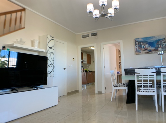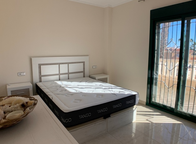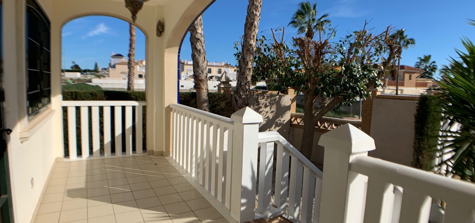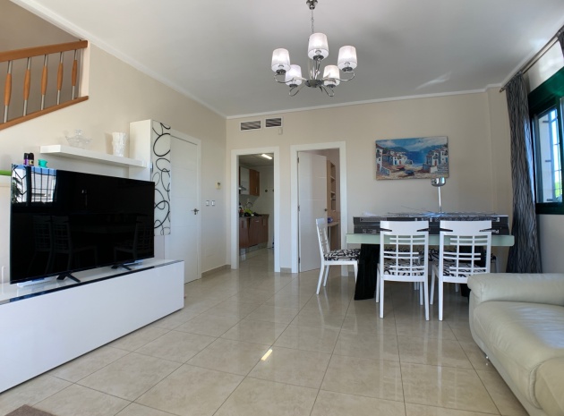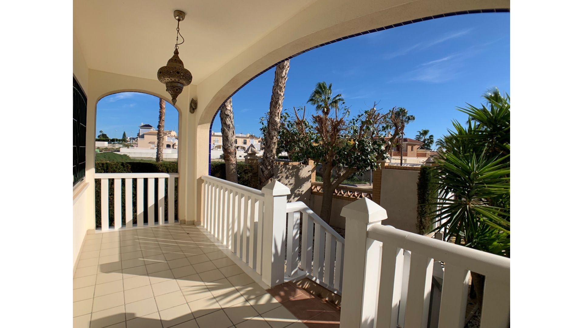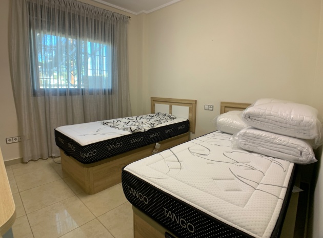 Welcome to this beautiful "Lola" style townhouse in the luxurious Albamar development.This development offers 5 communal pools, where one of them has a jacuzzi feature, and 2 of them are heated pools. This community is gated, has beautiful outside spaces with well maintened gardens and parking off road within the community. The property has a living room, kitchen, and one bedroom & bathroom on the first floor. From the kitchen you have excess to another private terrace. By the main entrance you have a beautiful terrace with plenty of sun. Here you will also find an upper terrace where you can close the windows to make it a perfect addition to the living room in the colder months. On the second floor you will find two bedrooms with wardrobes, and two bedrooms. From both of the bedrooms you have excess to a terrace. The house is sold furnished, and it has AC.