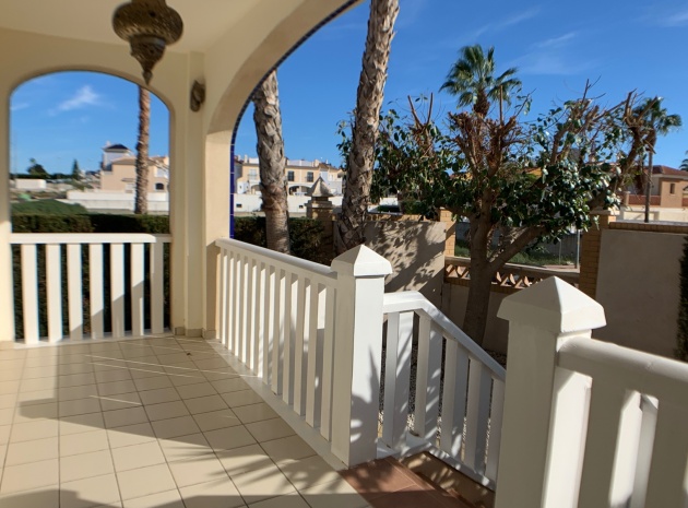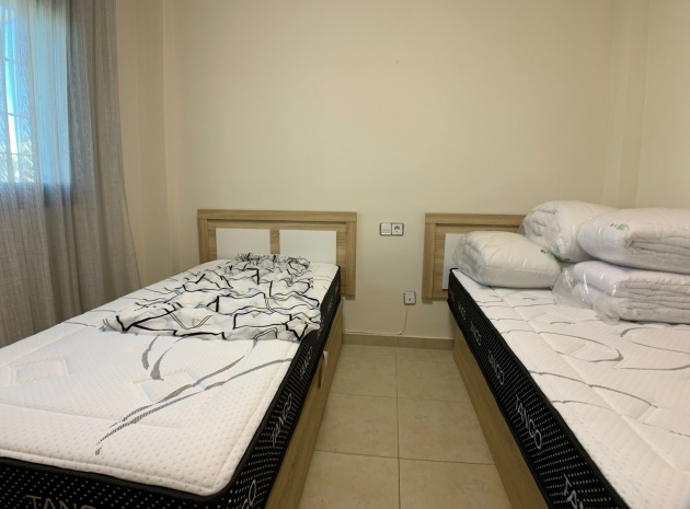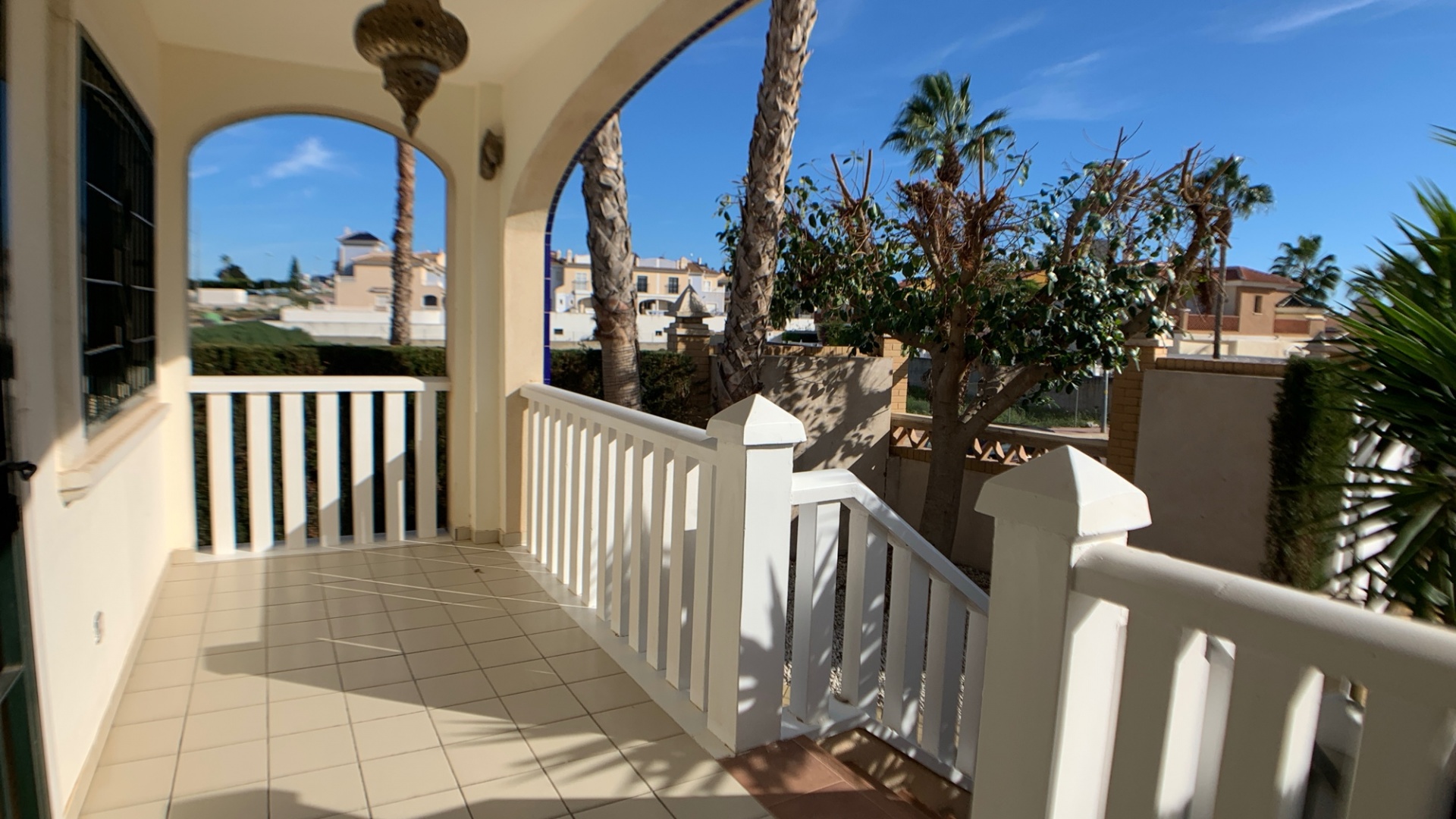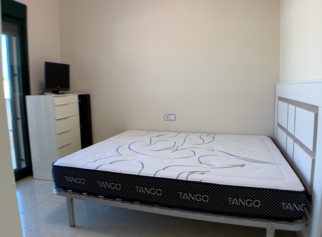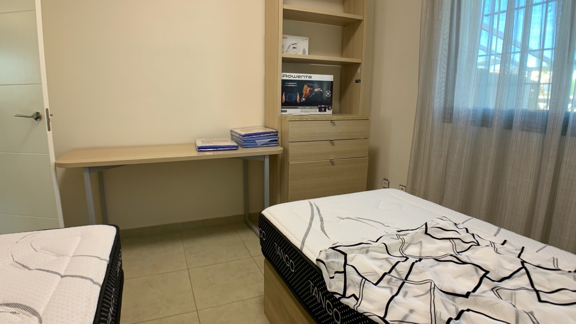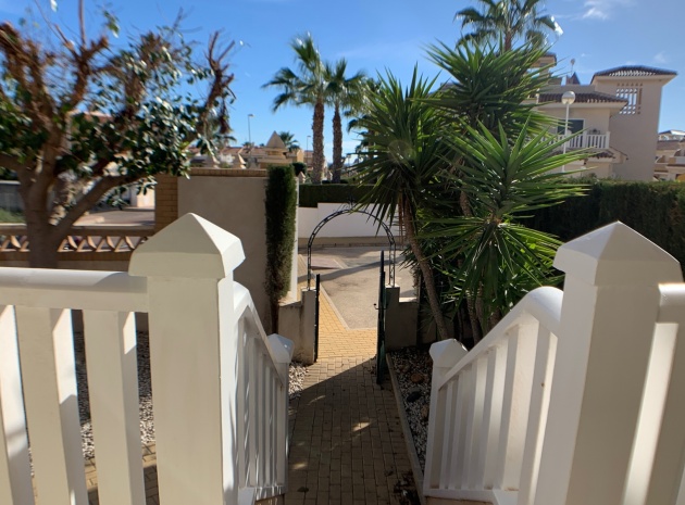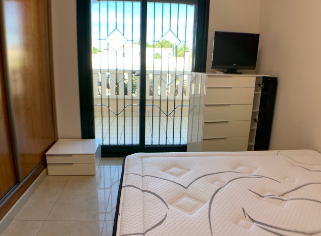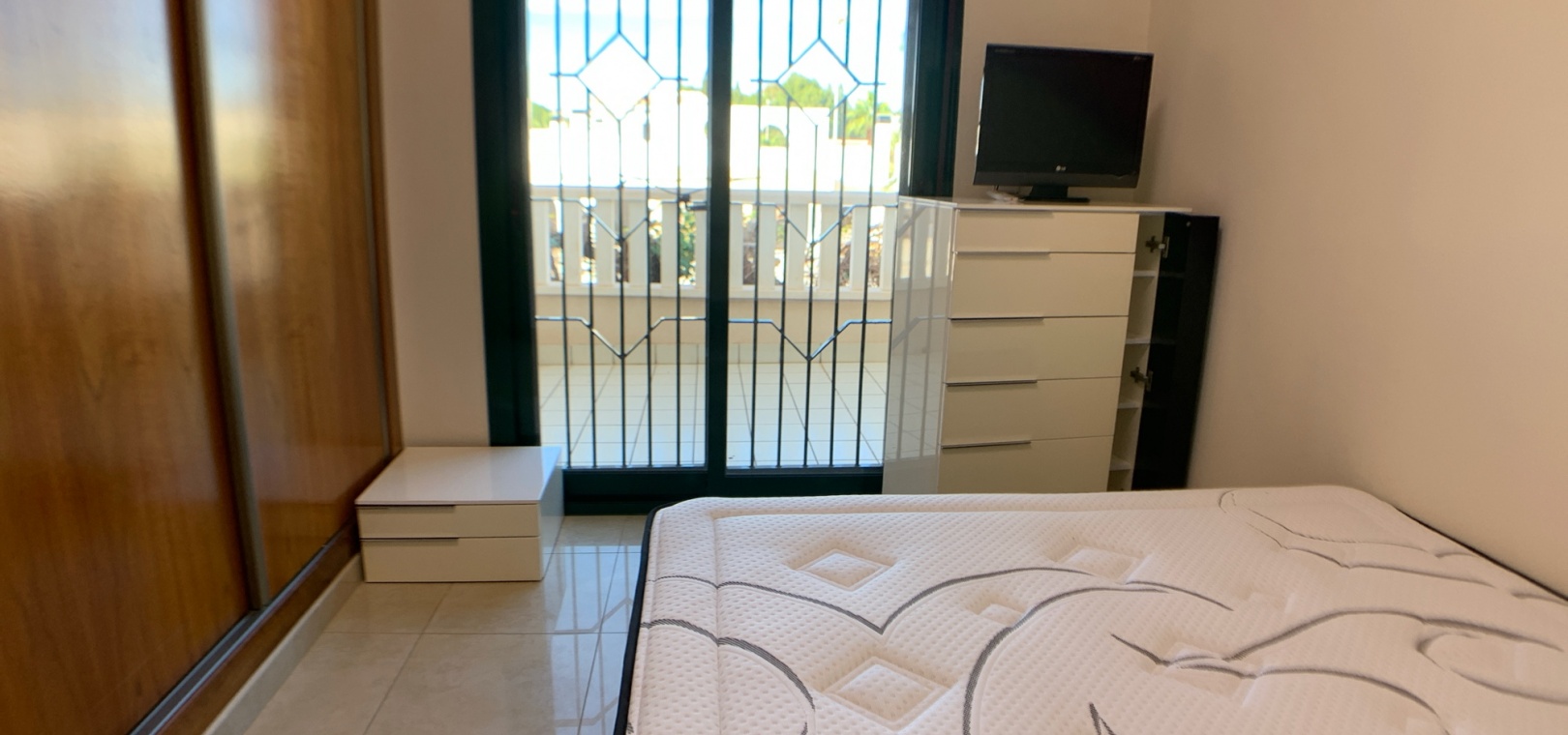Welcome to this beautiful "Lola" style townhouse in the luxurious Albamar development.This development offers 5 communal pools, where one of them has a jacuzzi feature, and 2 of them are heated pools. This community is gated, has beautiful outside spaces with well maintened gardens and parking off road within the community. The property has a living room, kitchen, and one bedroom & bathroom on the first floor. From the kitchen you have excess to another private terrace. By the main entrance you have a beautiful terrace with plenty of sun. Here you will also find an upper terrace where you can close the windows to make it a perfect addition to the living room in the colder months. On the second floor you will find two bedrooms with wardrobes, and two bedrooms. From both of the bedrooms you have excess to a terrace. The house is sold furnished, and it has AC.