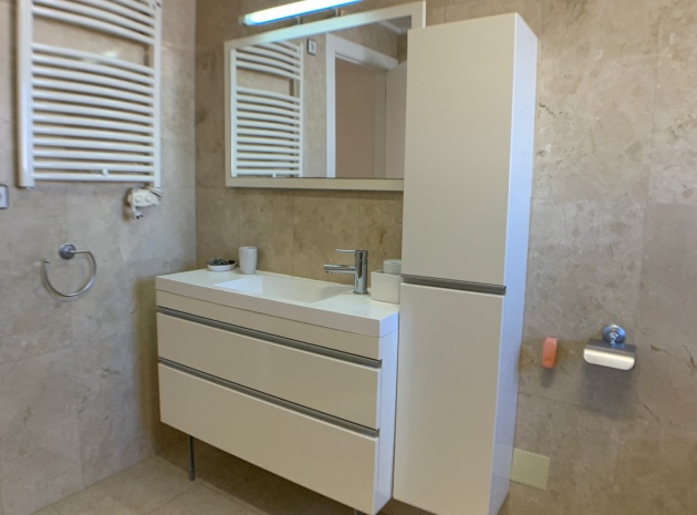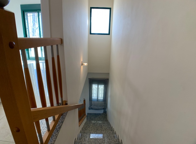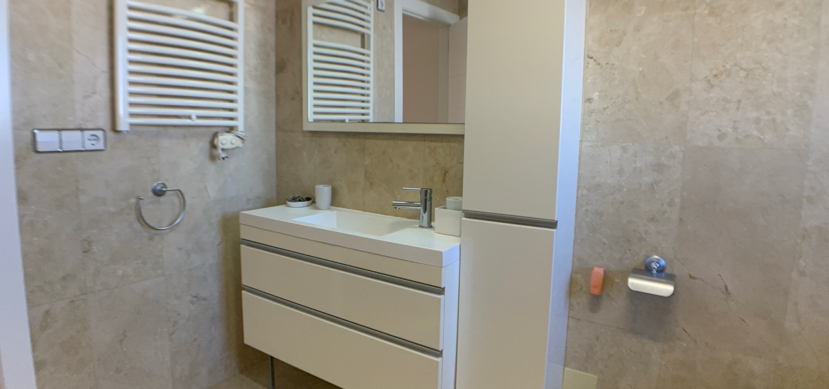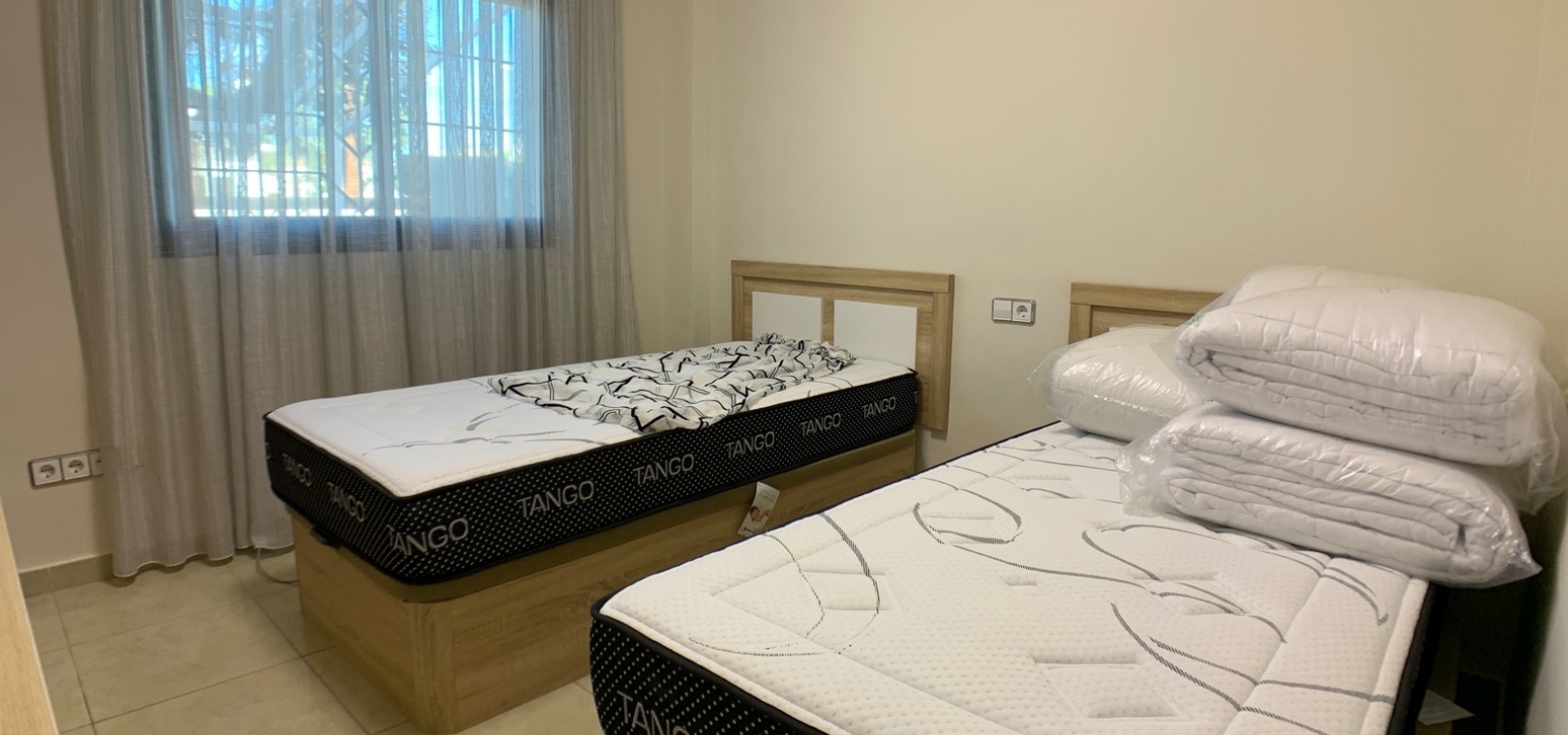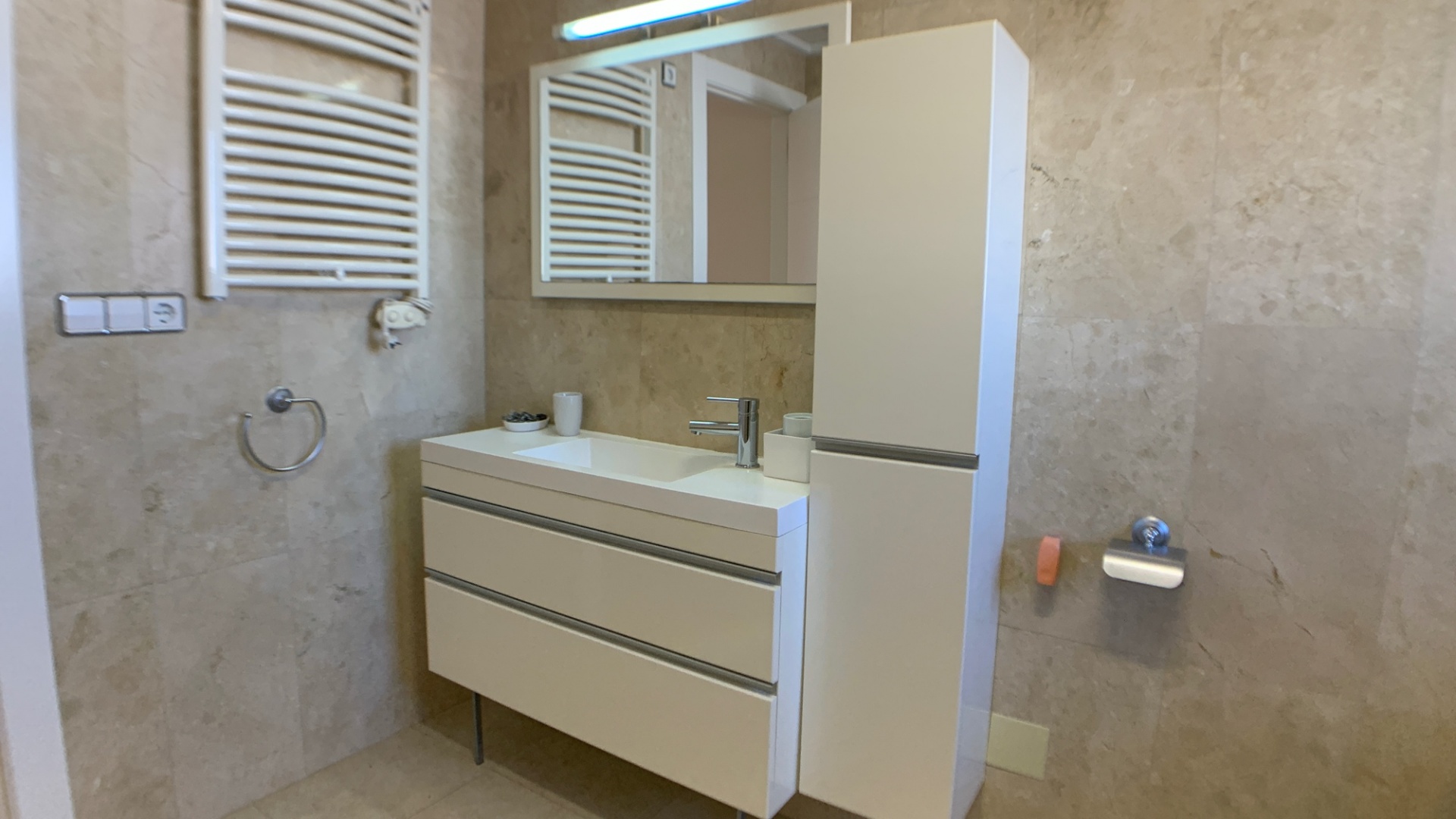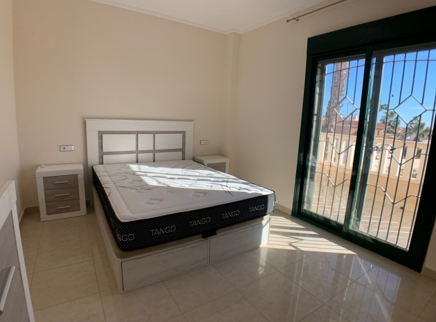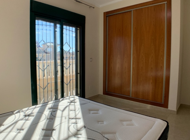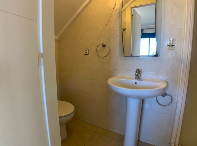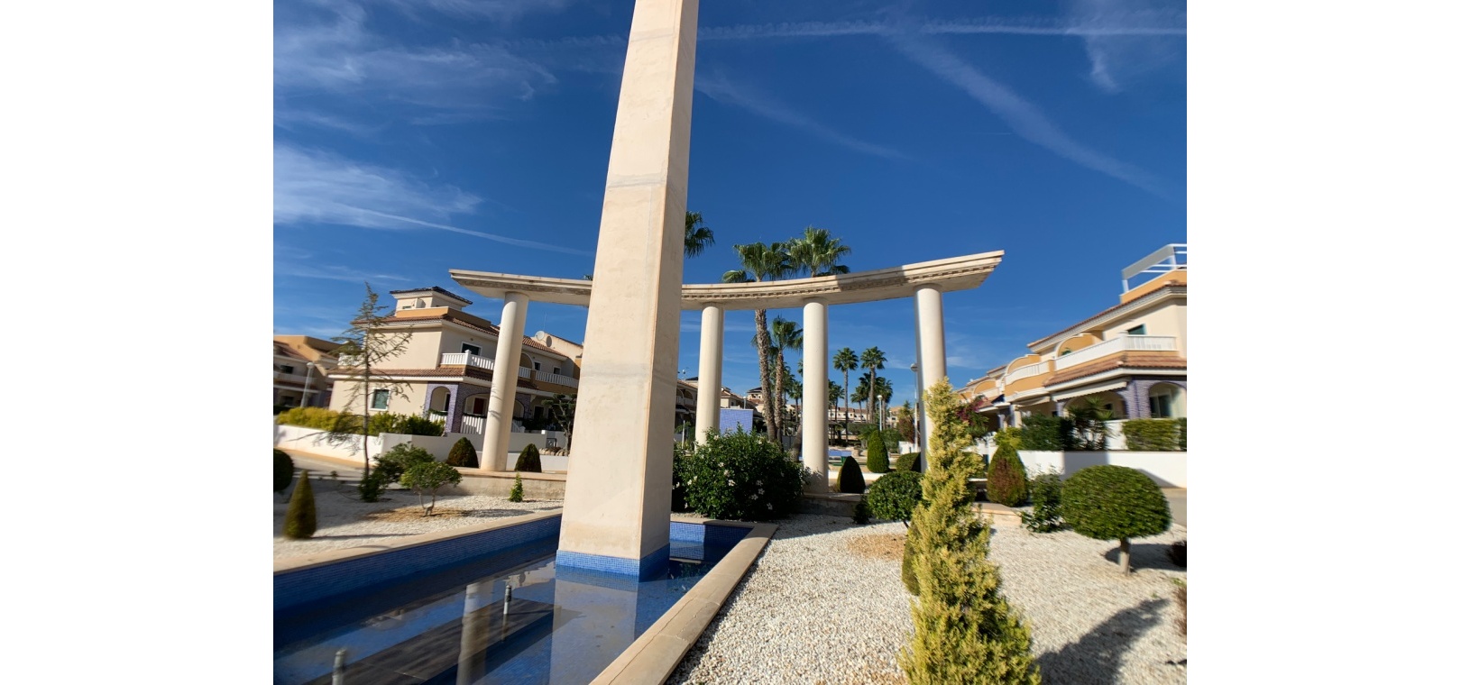 Welcome to this beautiful "Lola" style townhouse in the luxurious Albamar development.This development offers 5 communal pools, where one of them has a jacuzzi feature, and 2 of them are heated pools. This community is gated, has beautiful outside spaces with well maintened gardens and parking off road within the community. The property has a living room, kitchen, and one bedroom & bathroom on the first floor. From the kitchen you have excess to another private terrace. By the main entrance you have a beautiful terrace with plenty of sun. Here you will also find an upper terrace where you can close the windows to make it a perfect addition to the living room in the colder months. On the second floor you will find two bedrooms with wardrobes, and two bedrooms. From both of the bedrooms you have excess to a terrace. The house is sold furnished, and it has AC.