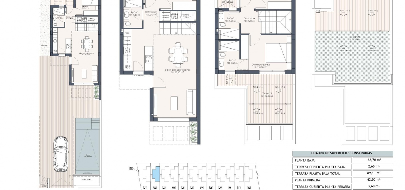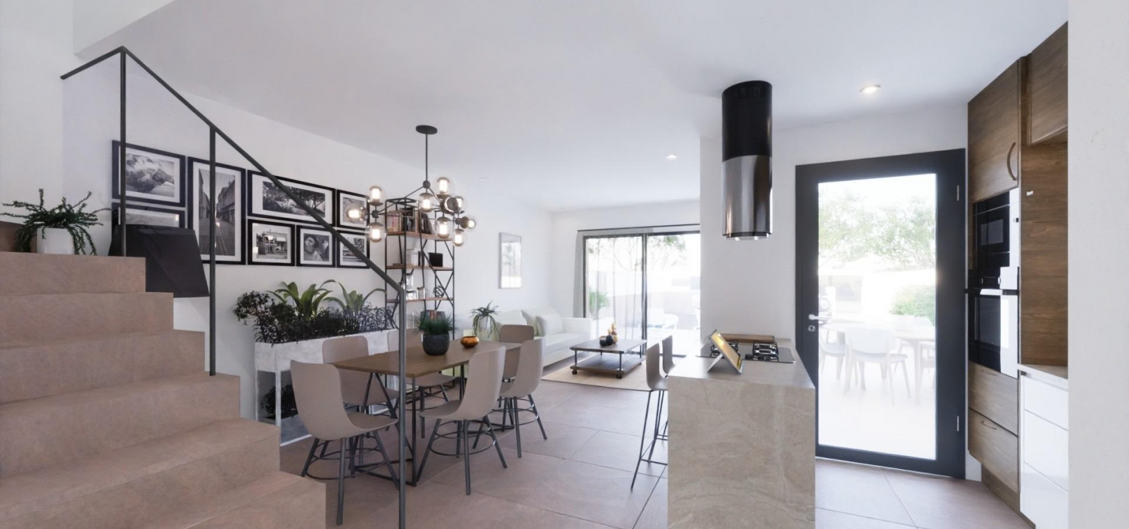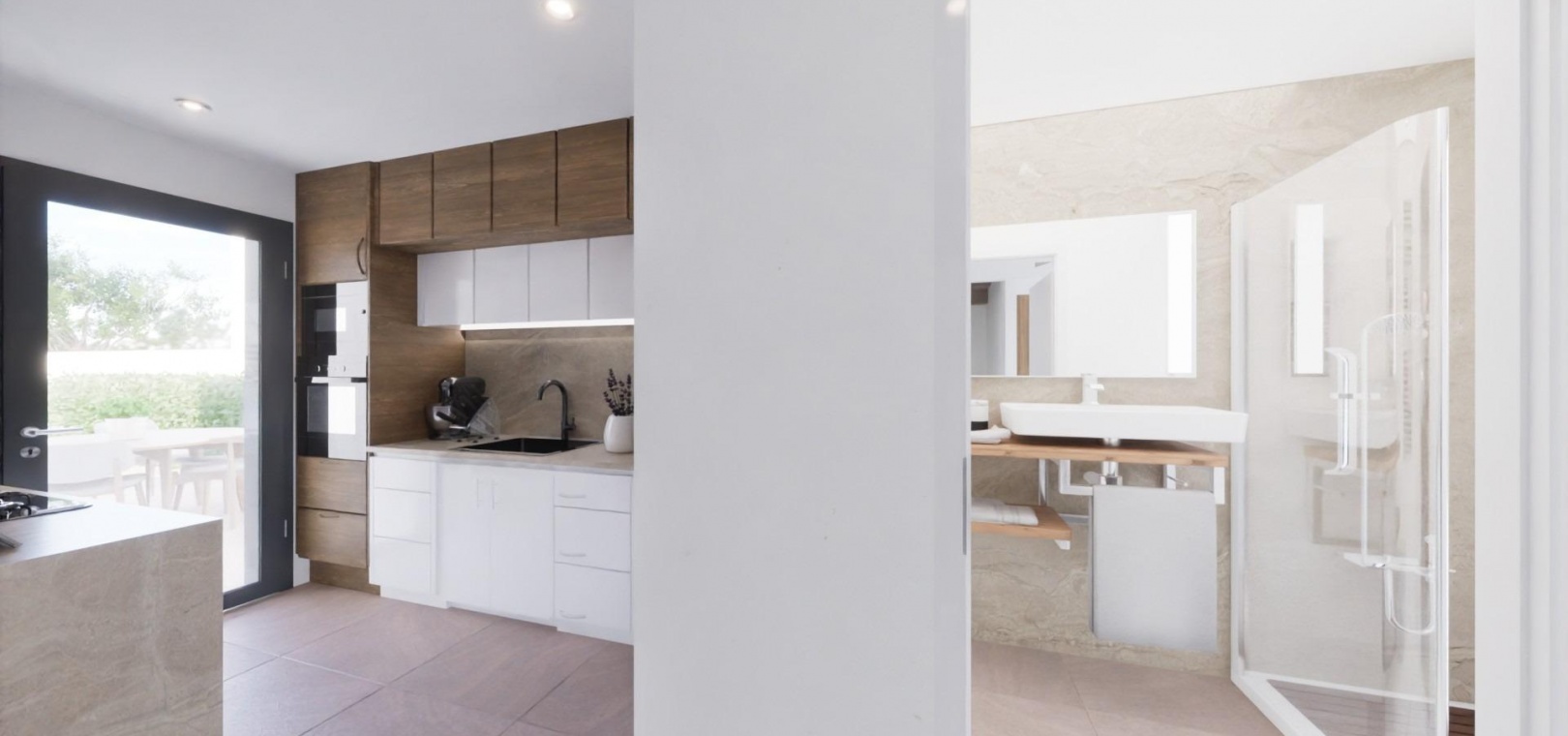 Beautiful villas with 3 bedrooms and 3 bathrooms, open plan kitchen with the living room, wonderfull solarium with amazing views, private garden with the pool and parking space.