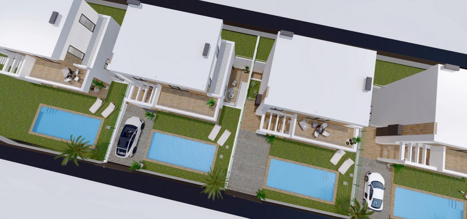 Villas build over 2 floors and has 3 bedrooms, 3 bathrooms, open plan kitchen with lounge, build-in wardrobes, equipped kitchen, private garden with the pool and parking.