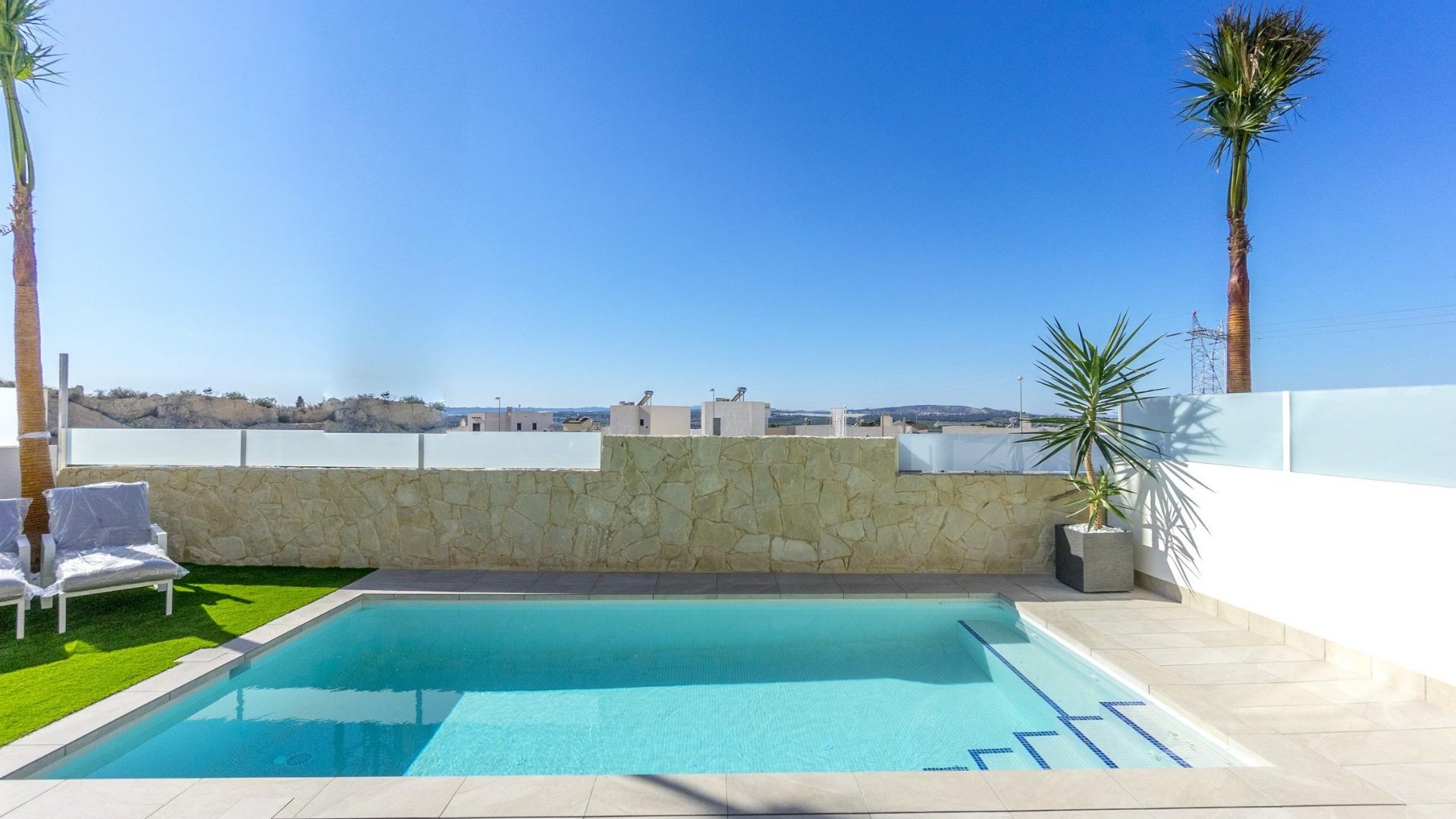 Villas build over 2 floors, with 3 bedrooms and 3 bathrooms, open plan kitchen with the lounge area, fitted wardrobes, terrace, private garden with the pool and parking space.