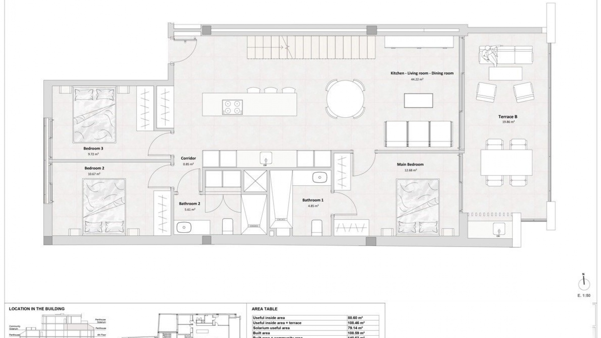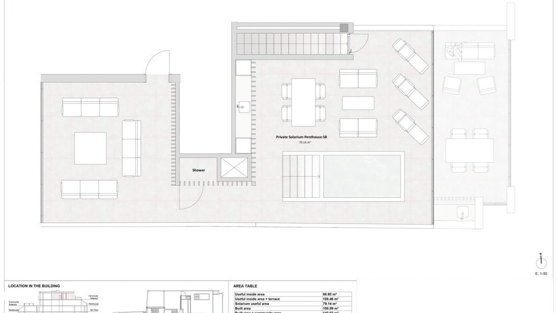 The penthouse apartments also have direct access to their own private roof terrace of 80 m2, with panoramic views.
