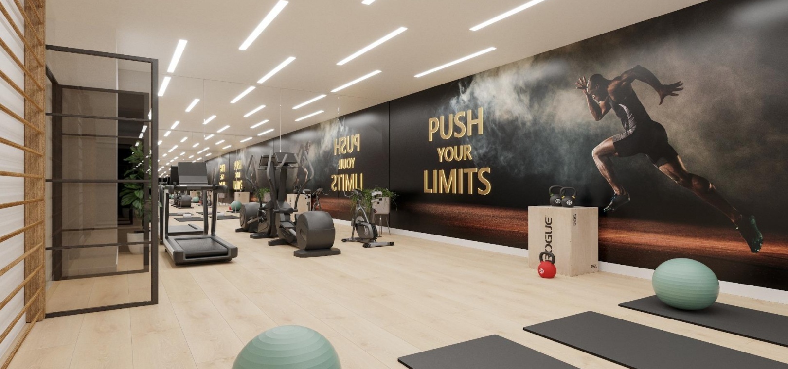 The common areas, designed for leisure and fun for the whole family, with a swimming pool, gym, chill out area: