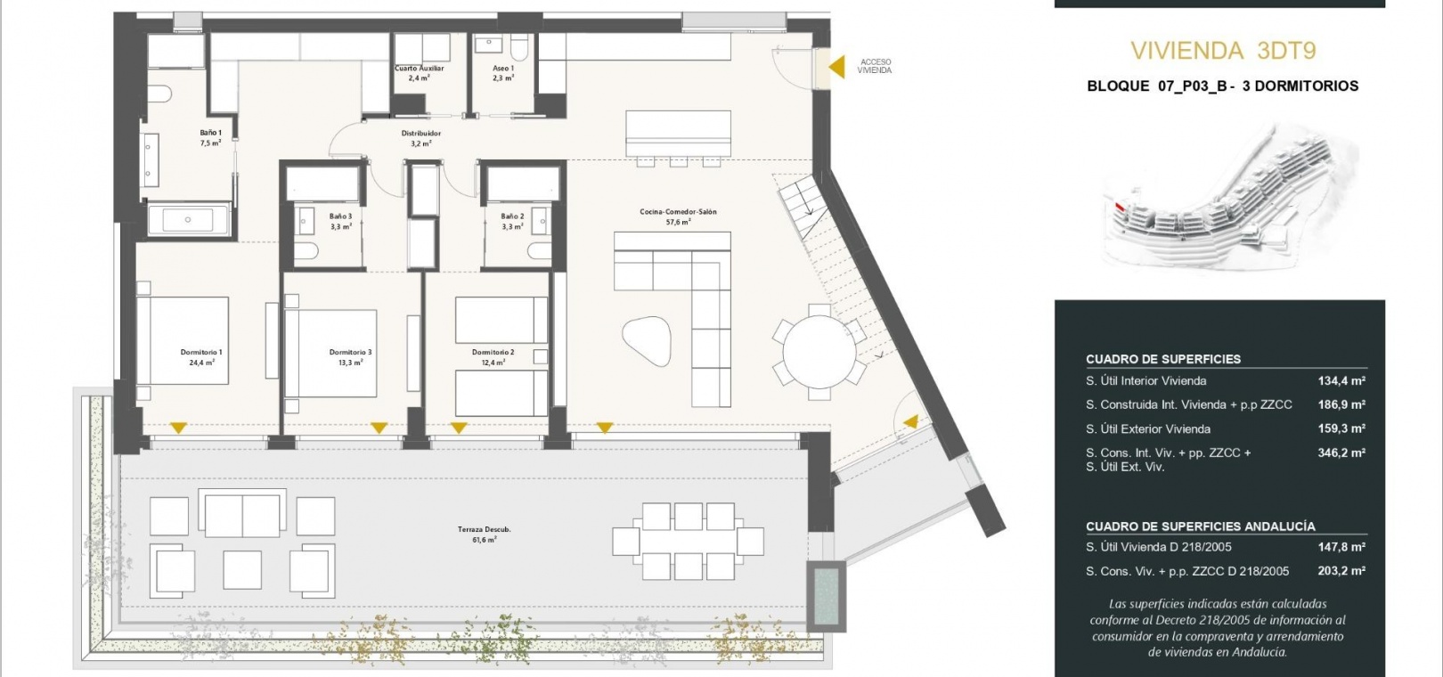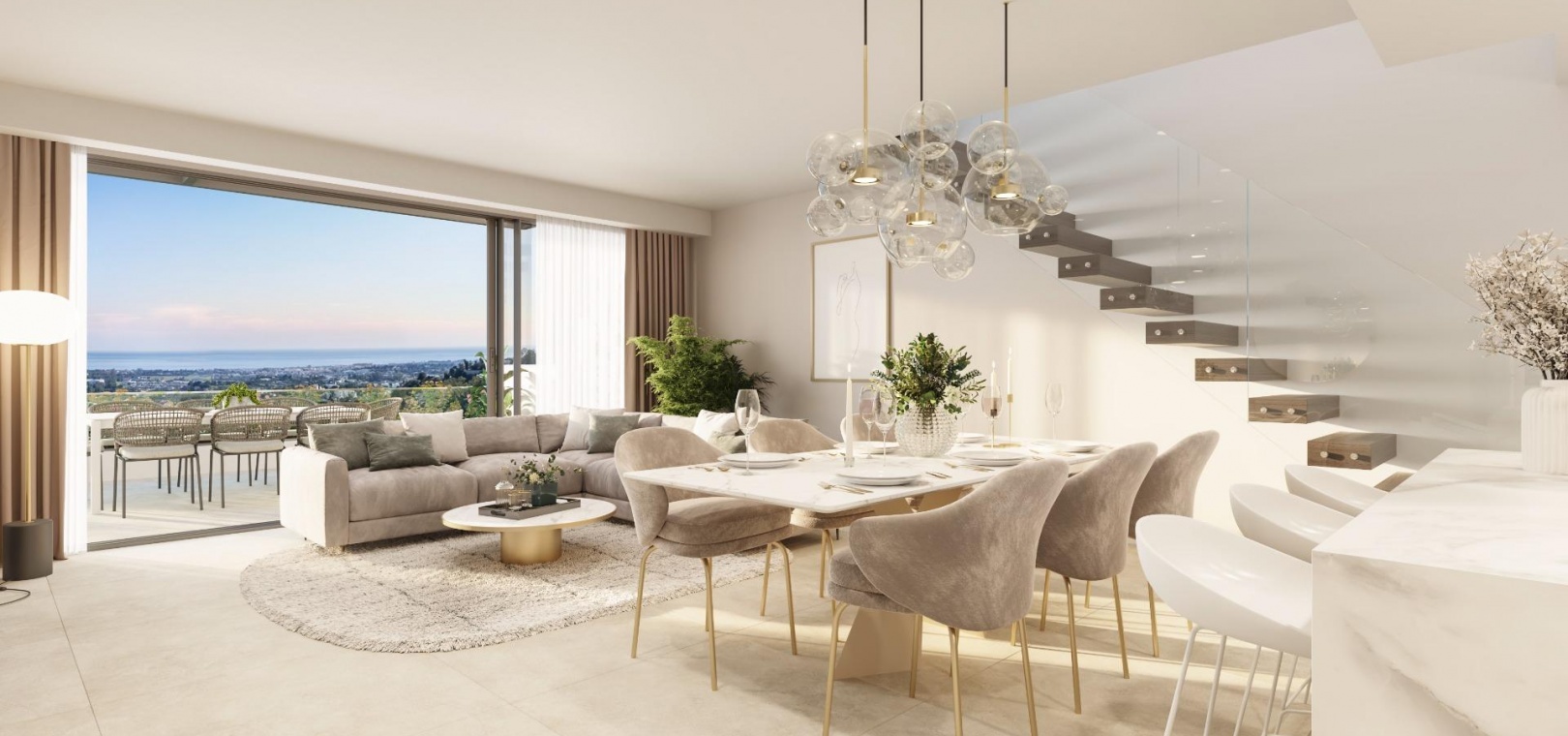 Development of 56 exclusive 3 and 4 bedroom homes with panoramic sea views, distributed in 7 blocks with only 2 homes per floor, which further increases their exclusivity. Fully equipped kitchens. All bedrooms en suite, with an extra bathroom for guests. Each bedroom has direct access to the terrace, so you can wake up with the best views of the Costa del Sol and enjoy breathtaking views of the entire coastline and the Bay of Marbella, up to the Rock of Gibraltar and Africa in the background.