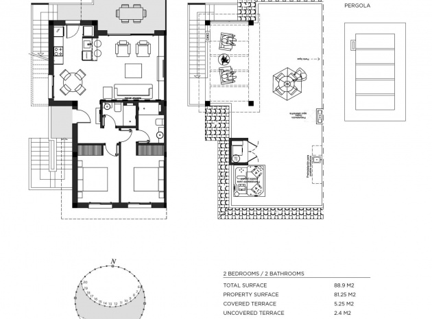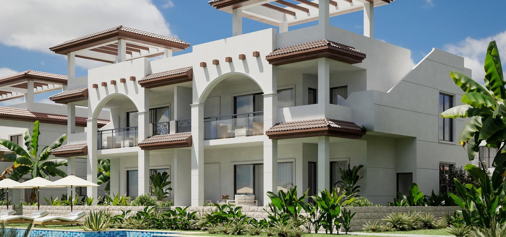 Modern semi-detached villas build over 2 floors and has 3 bedrooms, 2 and 3 bathrooms, open plan kitchen and the lounge area, fitted wardrobes, terraces, private garden and solarium.