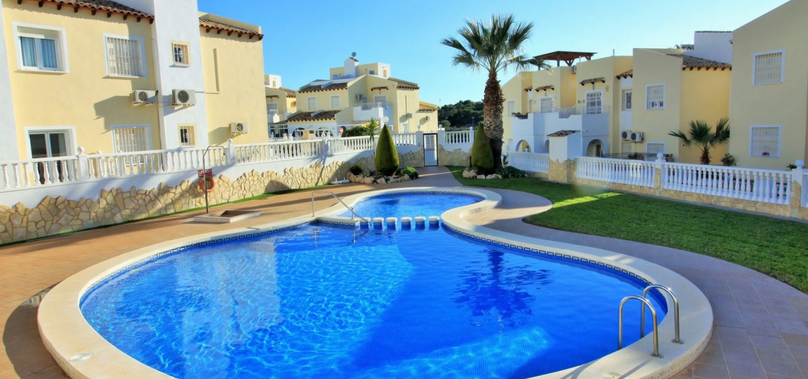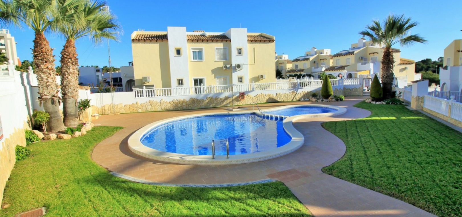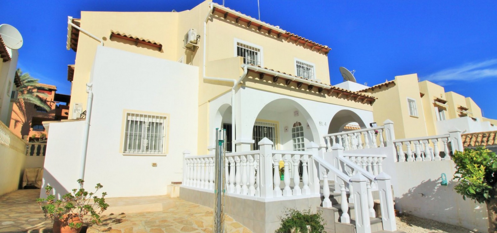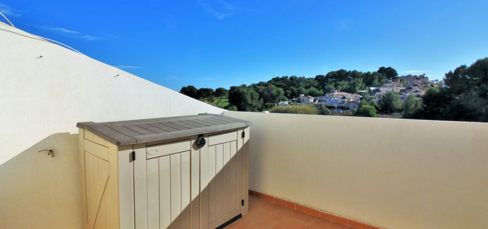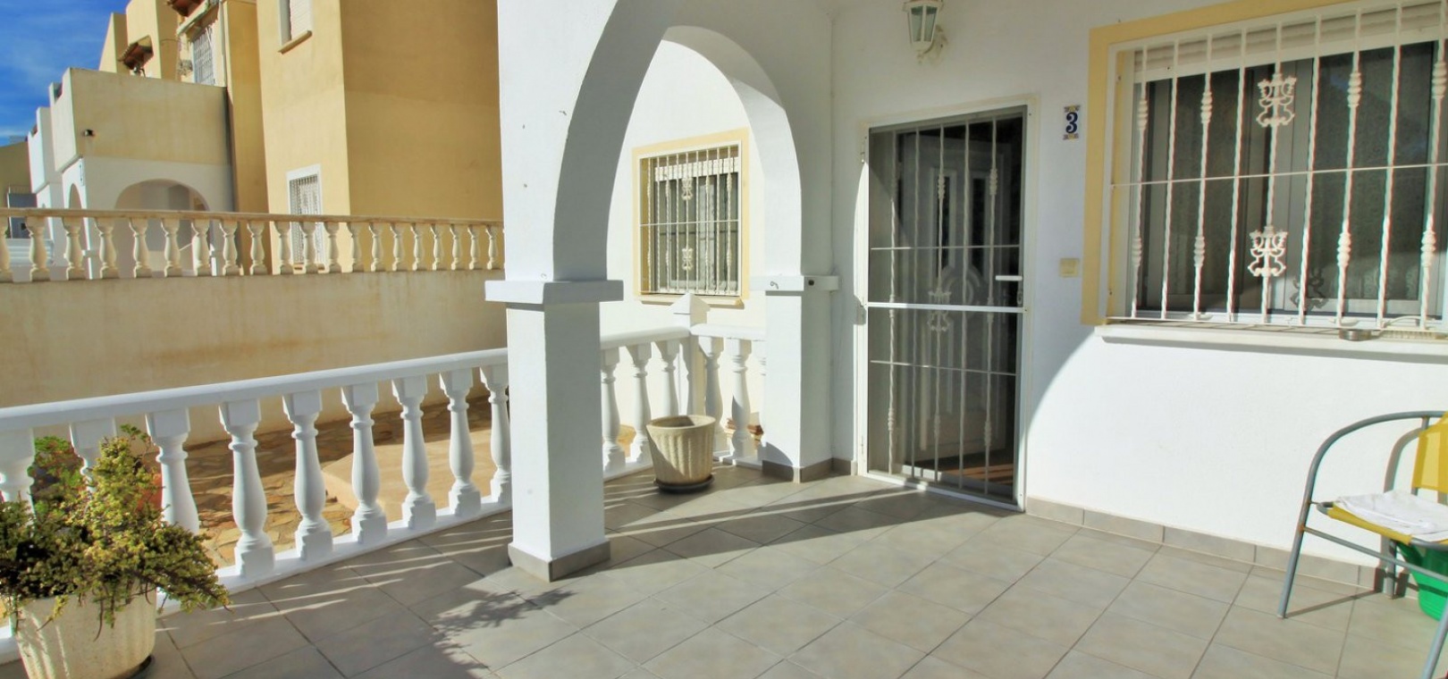 A South facing 3 bed 2 bath quad house with a private rooftop solarium located in Panorama Golf, Villamartin, Costa Blanca.