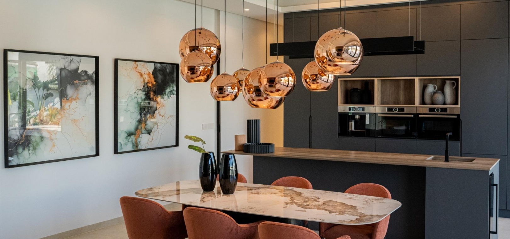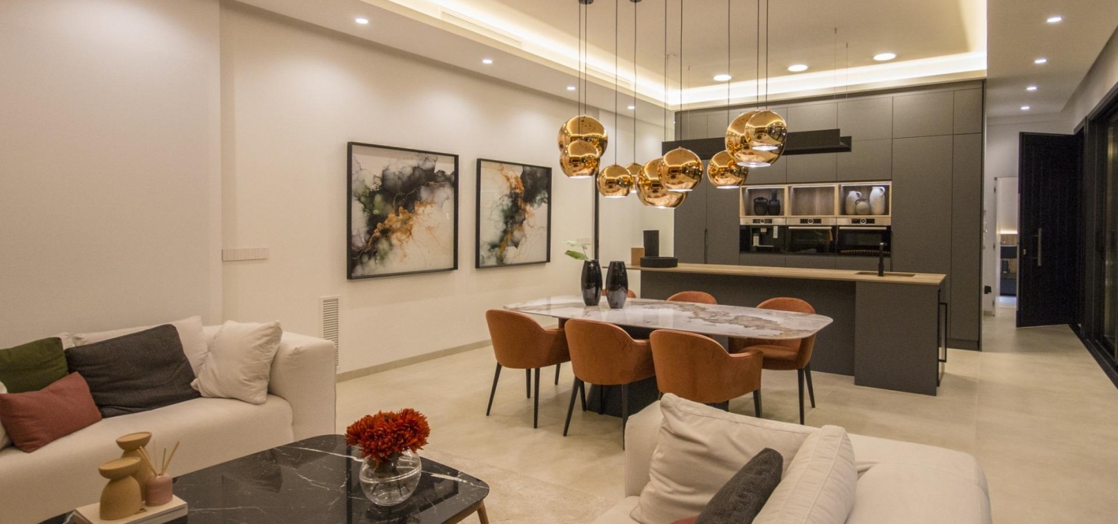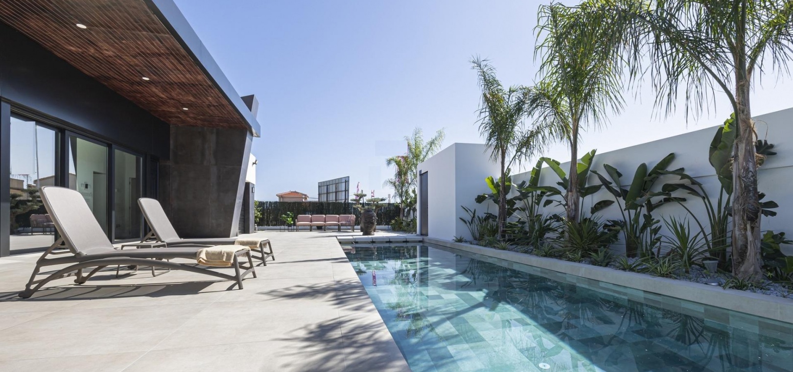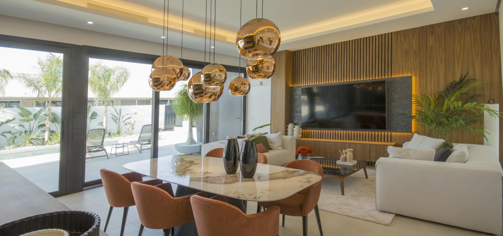 Beautiful villas distributed on one level and have 3 bedrooms and 2 bathrooms, guest toilet, open plan kitchen with the lounge area, fitted wardrobes, private garden with the pool and off road parking space,