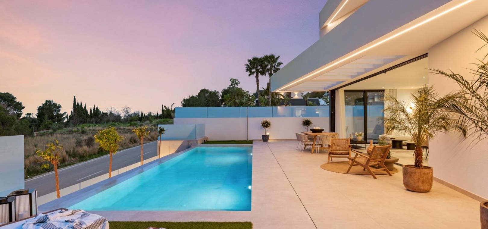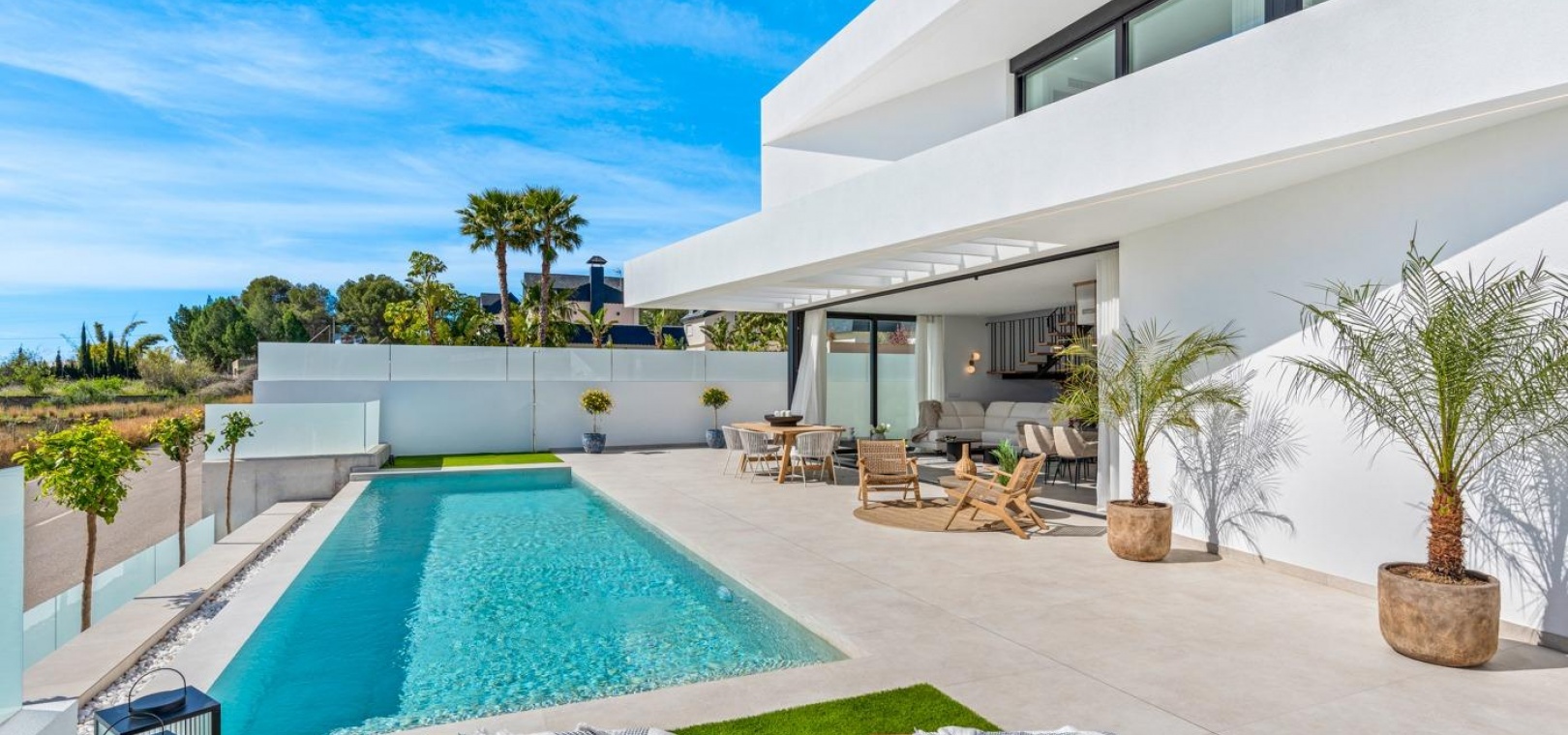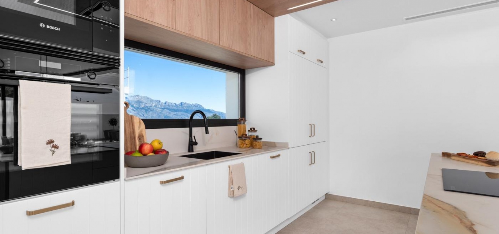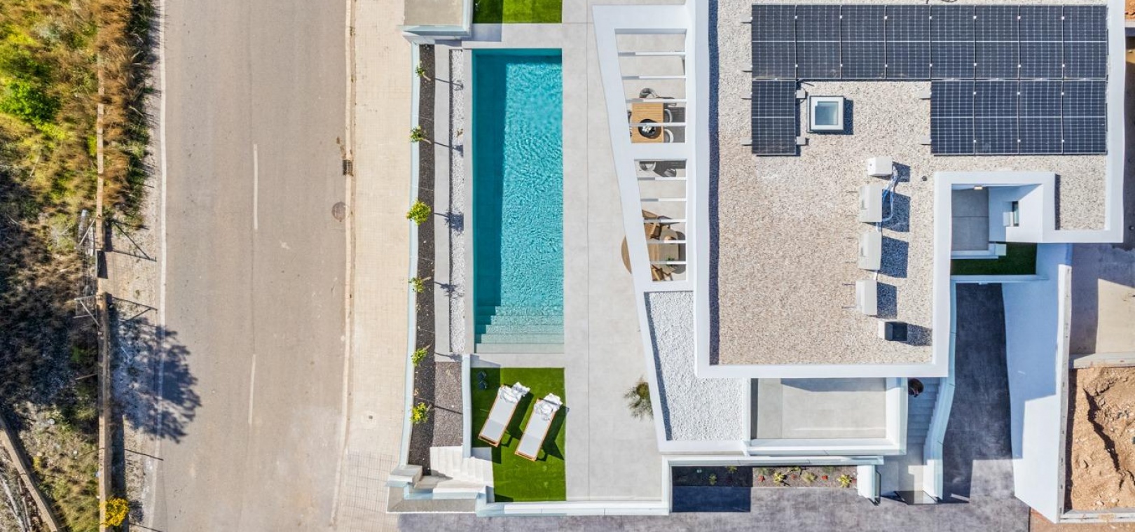 Modern villas build over 2 floors, has 3 bedrooms, 3 bathrooms, guest toilet, open plan modern kitchen with large living/dining room has direct access to the terrace with the pool, fitted wardrobes, basement with garage and storeroom, air conditioning, white goods.