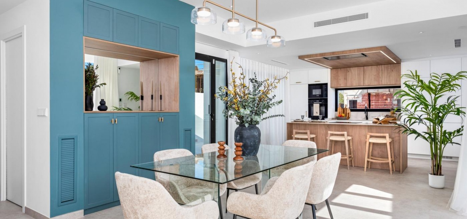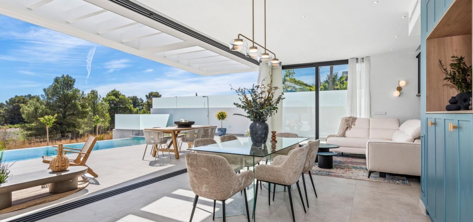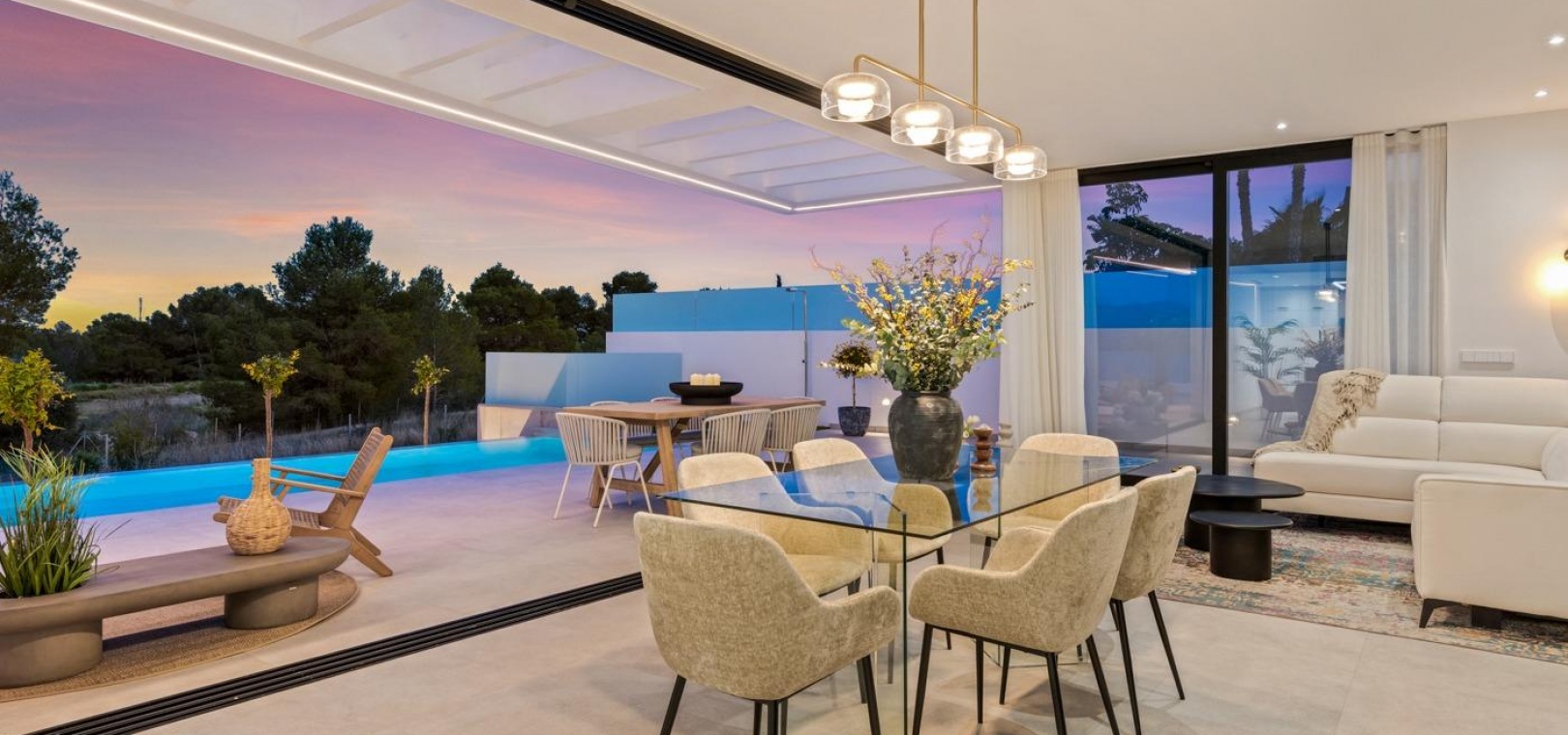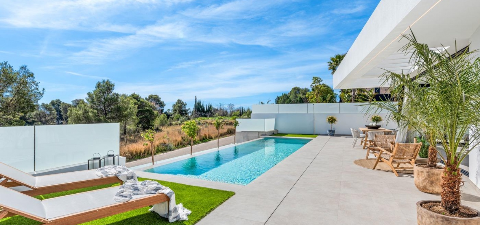 Modern villas build over 2 floors, has 3 bedrooms, 3 bathrooms, guest toilet, open plan modern kitchen with large living/dining room has direct access to the terrace with the pool, fitted wardrobes, basement with garage and storeroom, air conditioning, white goods.