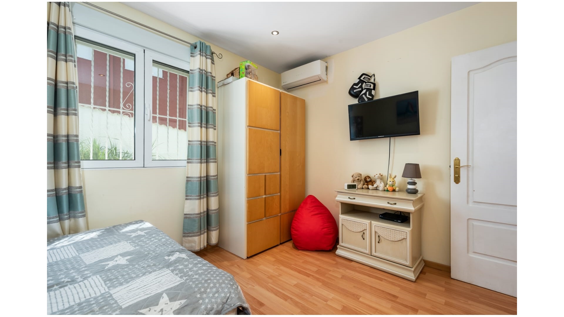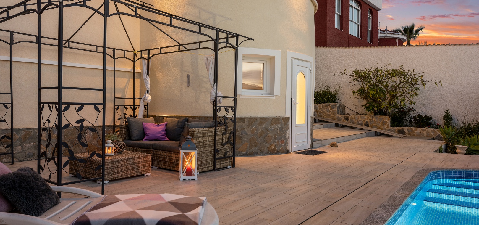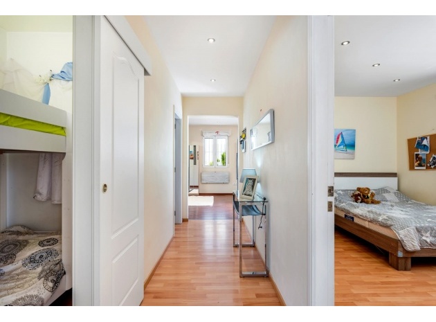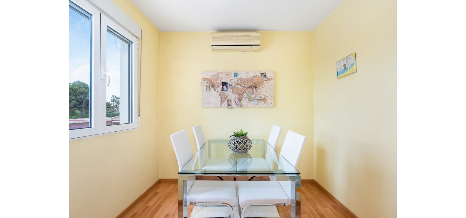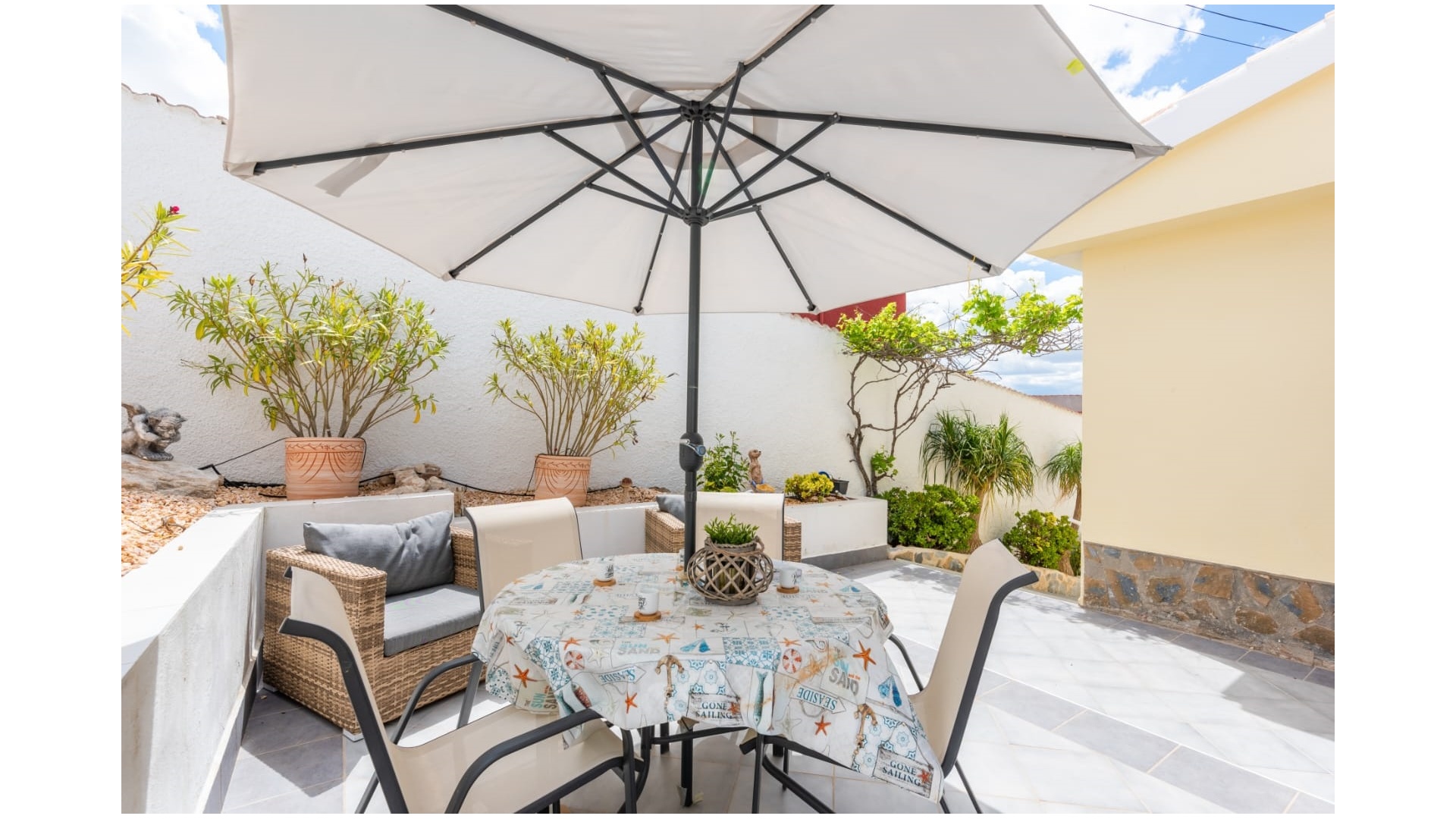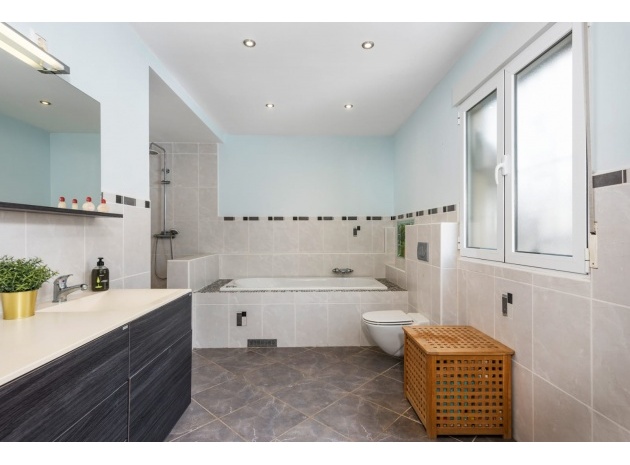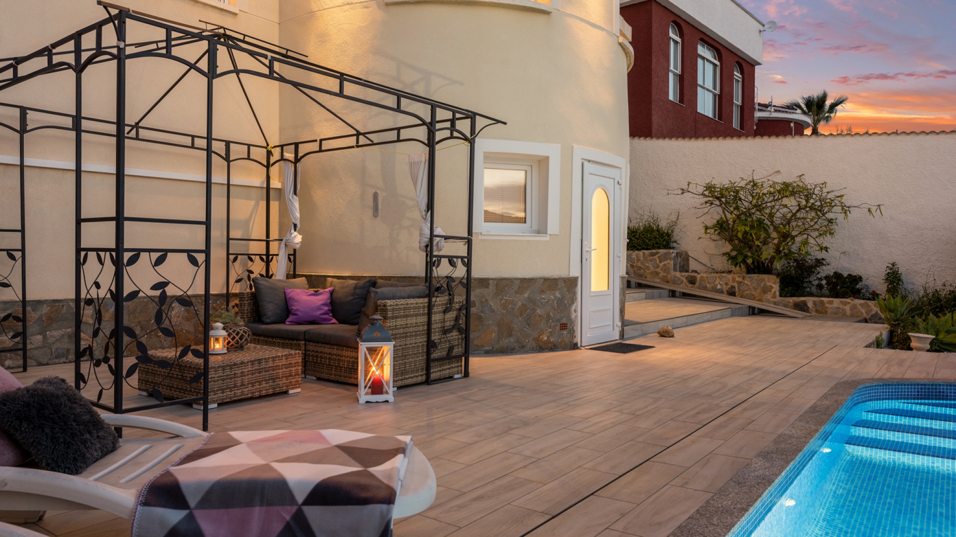 The villa is distributed over two levels. The main house is on the upper level and consists of two double bedrooms and one single sleeping alcove. The master bedroom has a large en-suite bathroom and this floor also has a shared bathroom. The main level also consists of an entrance area, a living room, a dining room and a kitchen.In the semi-basement you can find a flat with separate entrance, consisting of a living room with sleeping space, kitchen and a bathroom.The house has new doors, portholes, double glazed windows, new kitchen and the main floor has a beautiful wooden floor. It has air conditioning throughout.Outdoor areaThe house is located on a plot of 500 m2 with south-east orientation. In the garden you can find a beautiful swimming pool with outdoor shower. The area around the pool is tiled and is perfect for outdoor lounging areas and sun loungers. Next to the entrance there is also a seating area and an off road parking space.The rest of the garden is laid to gravel, also with space for outdoor seating areas.AreaThe villa is located in Ciudad Quesada, within walking distance to the main street and all its amenities.