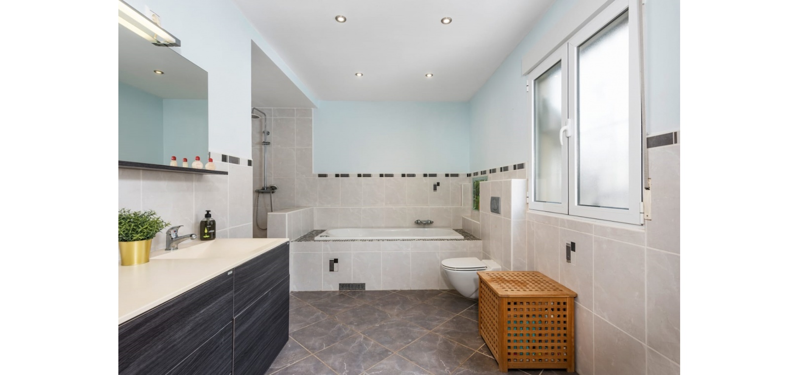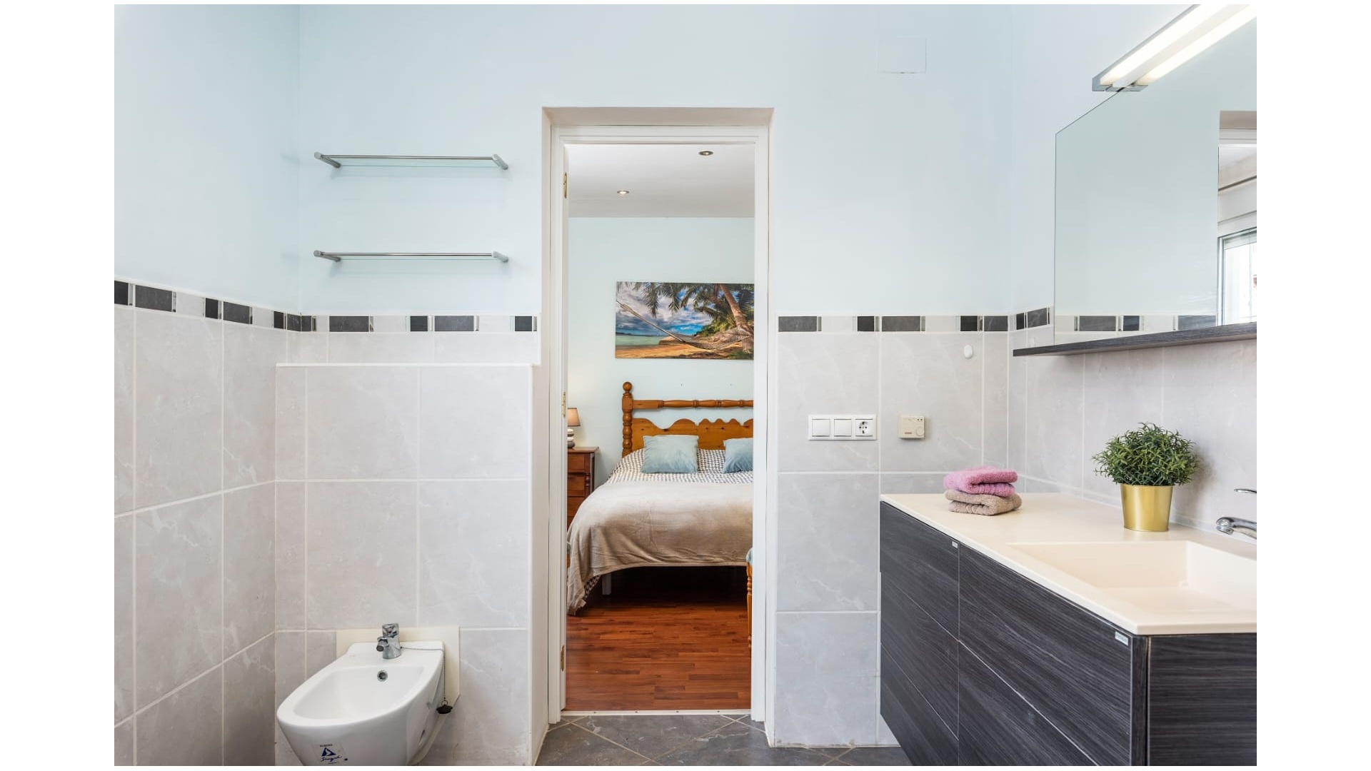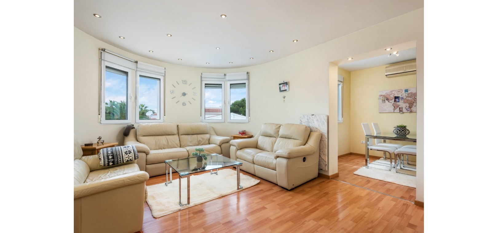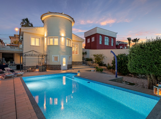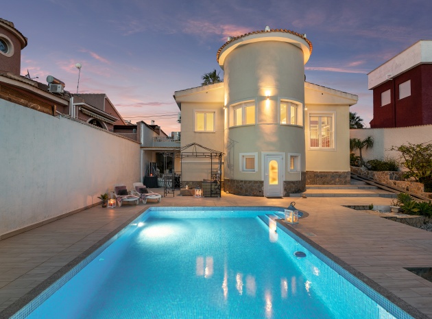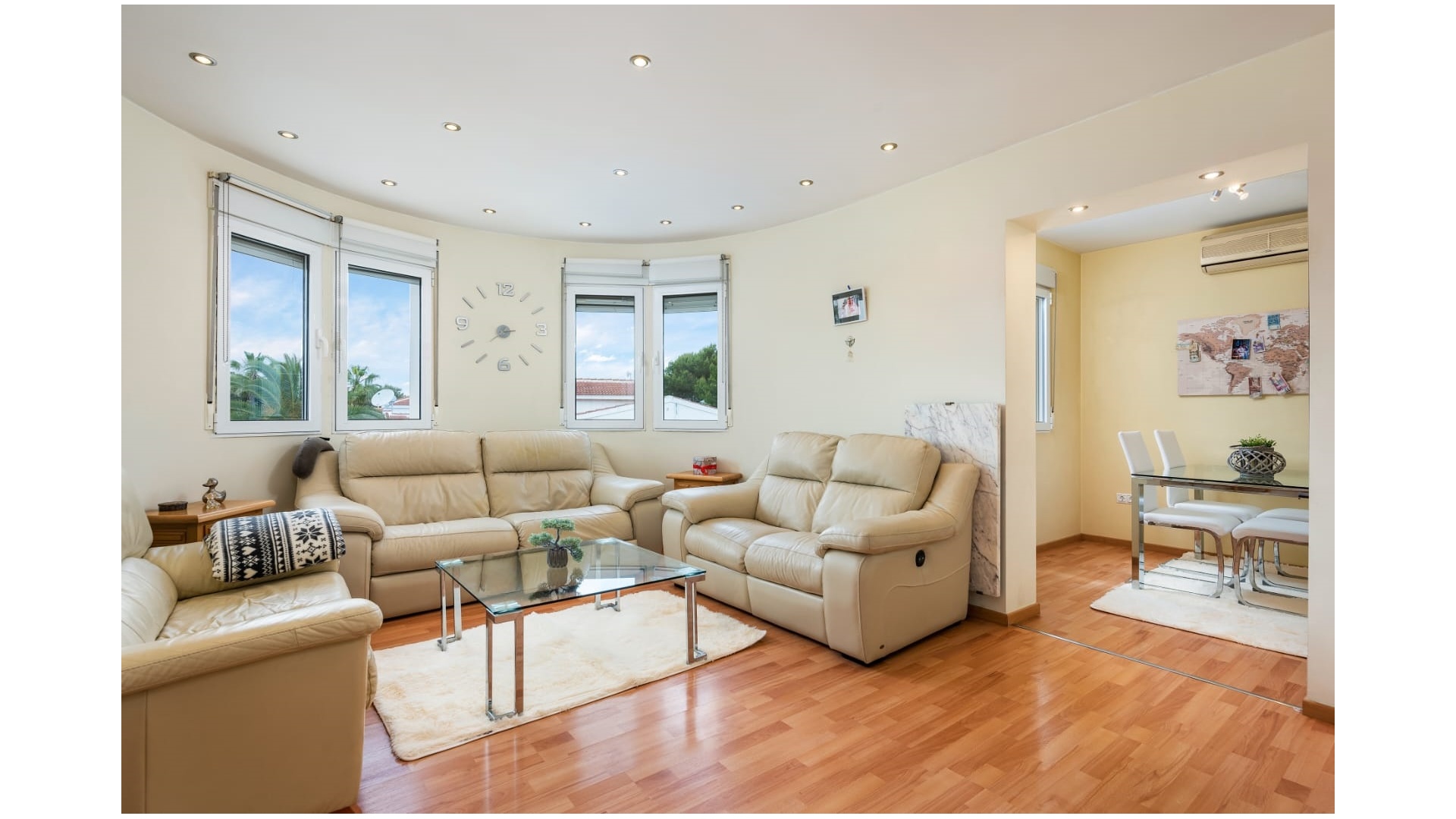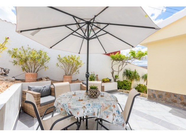 The villa is distributed over two levels. The main house is on the upper level and consists of two double bedrooms and one single sleeping alcove. The master bedroom has a large en-suite bathroom and this floor also has a shared bathroom. The main level also consists of an entrance area, a living room, a dining room and a kitchen.In the semi-basement you can find a flat with separate entrance, consisting of a living room with sleeping space, kitchen and a bathroom.The house has new doors, portholes, double glazed windows, new kitchen and the main floor has a beautiful wooden floor. It has air conditioning throughout.Outdoor areaThe house is located on a plot of 500 m2 with south-east orientation. In the garden you can find a beautiful swimming pool with outdoor shower. The area around the pool is tiled and is perfect for outdoor lounging areas and sun loungers. Next to the entrance there is also a seating area and an off road parking space.The rest of the garden is laid to gravel, also with space for outdoor seating areas.AreaThe villa is located in Ciudad Quesada, within walking distance to the main street and all its amenities.