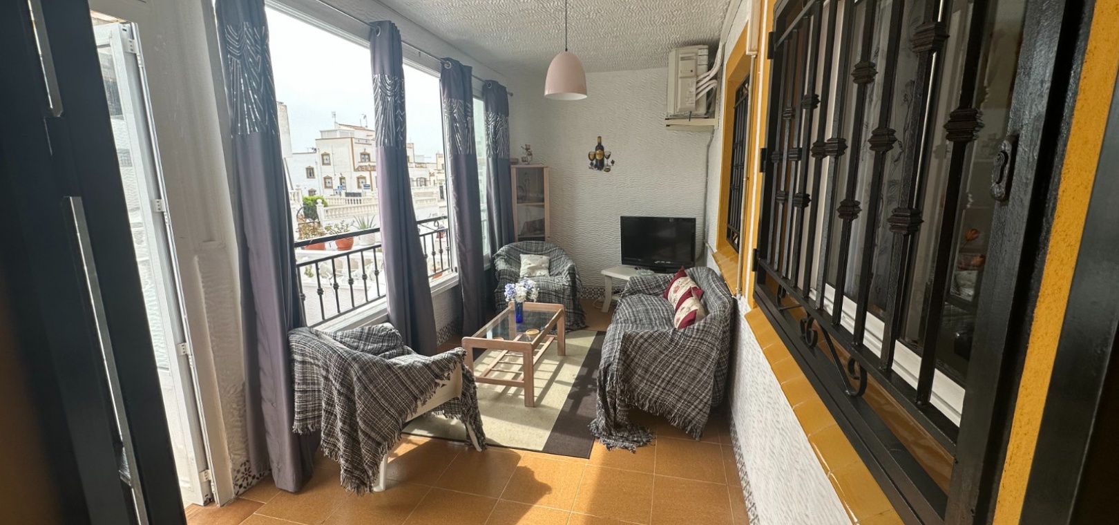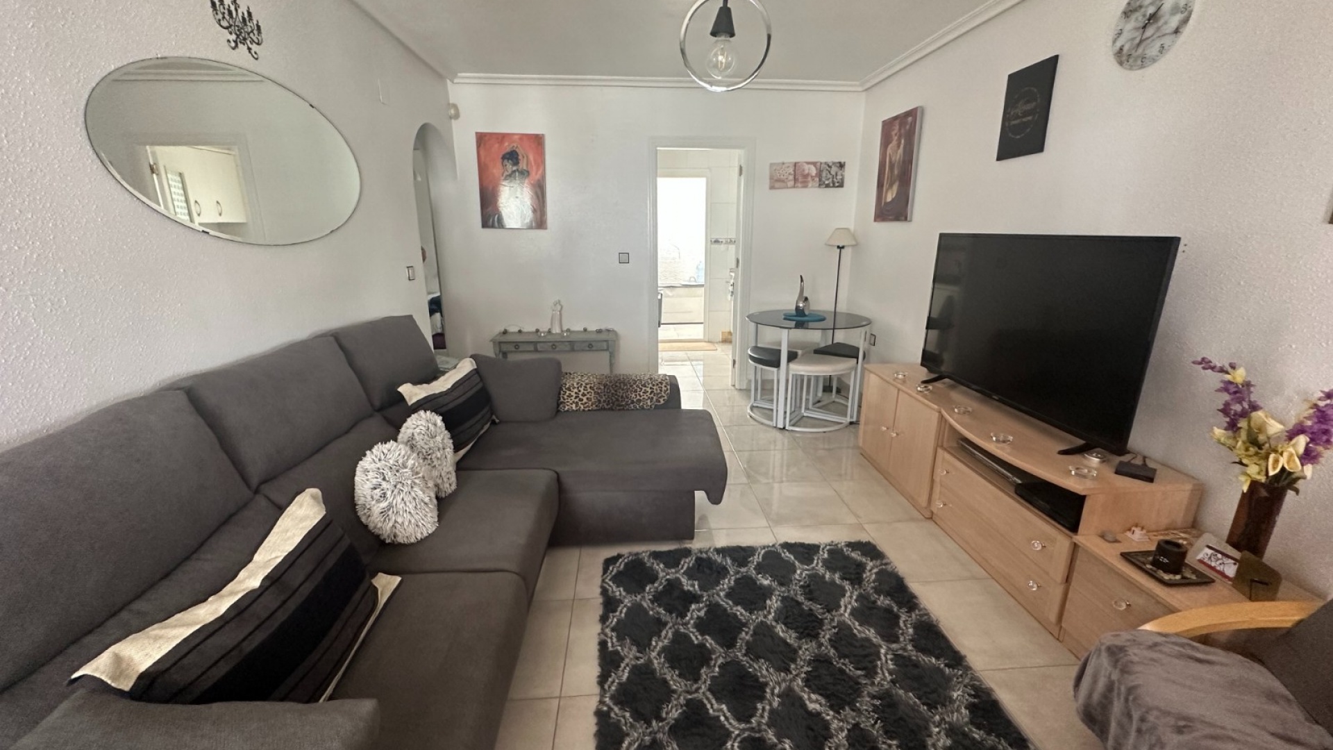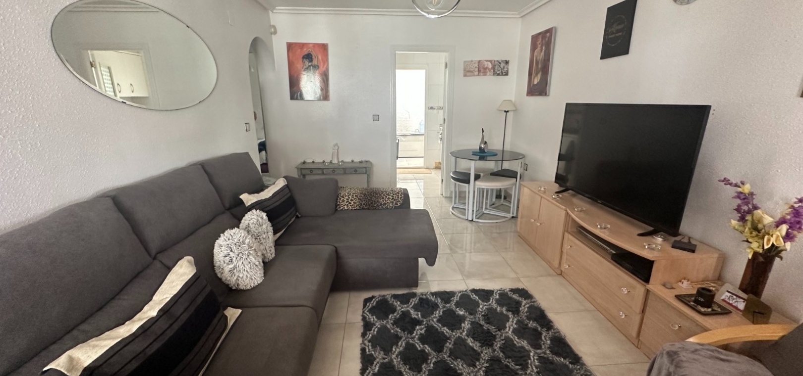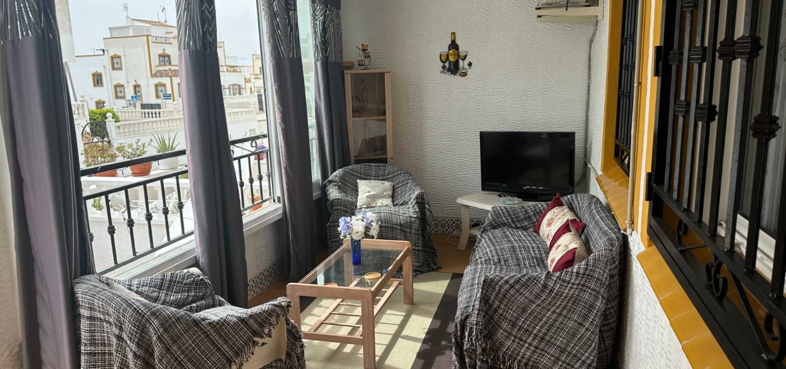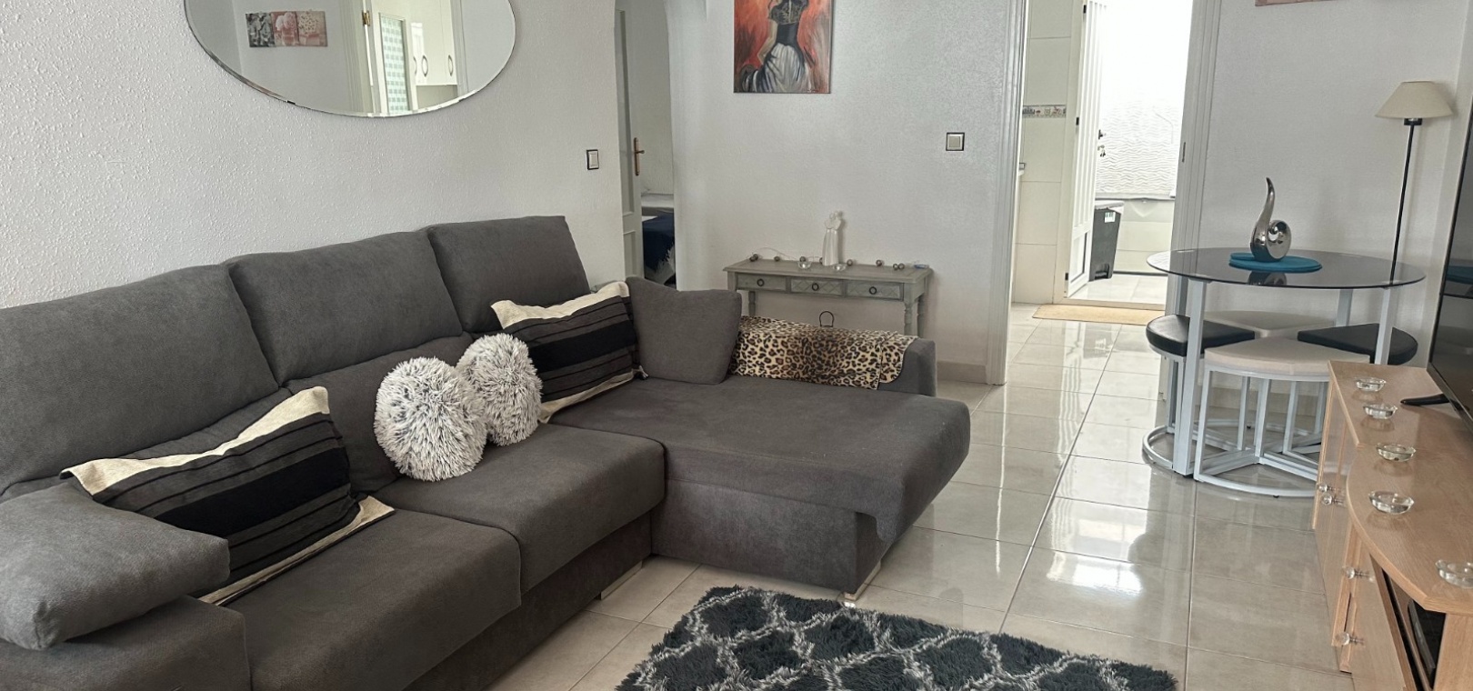 Lovely well presented ground floor apartment with 2 bedrooms, family bathroom, living area , separate kitchen , storage area at the back, front garden and glazed in terrace at the front , perfect to use as another room . The apartment faces south and has a renovated kitchen, bathroom and new floors . The property comes fully furnished