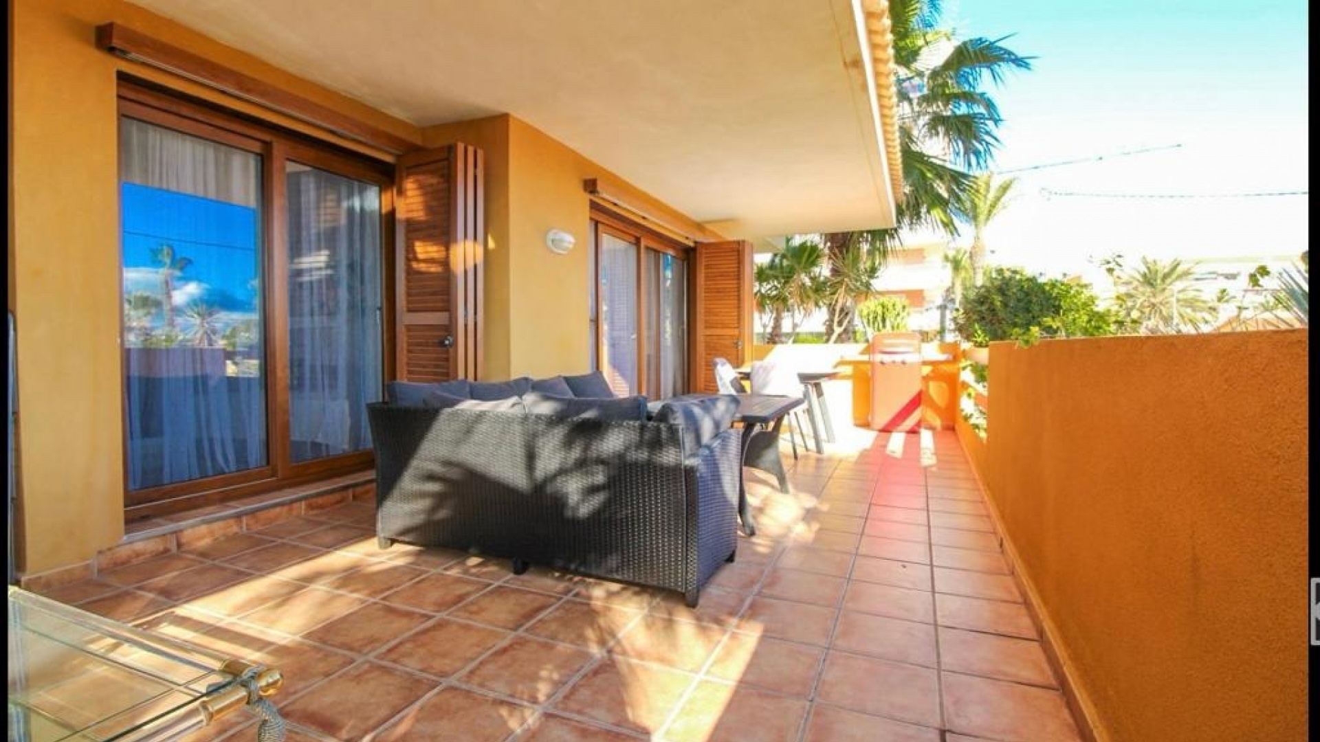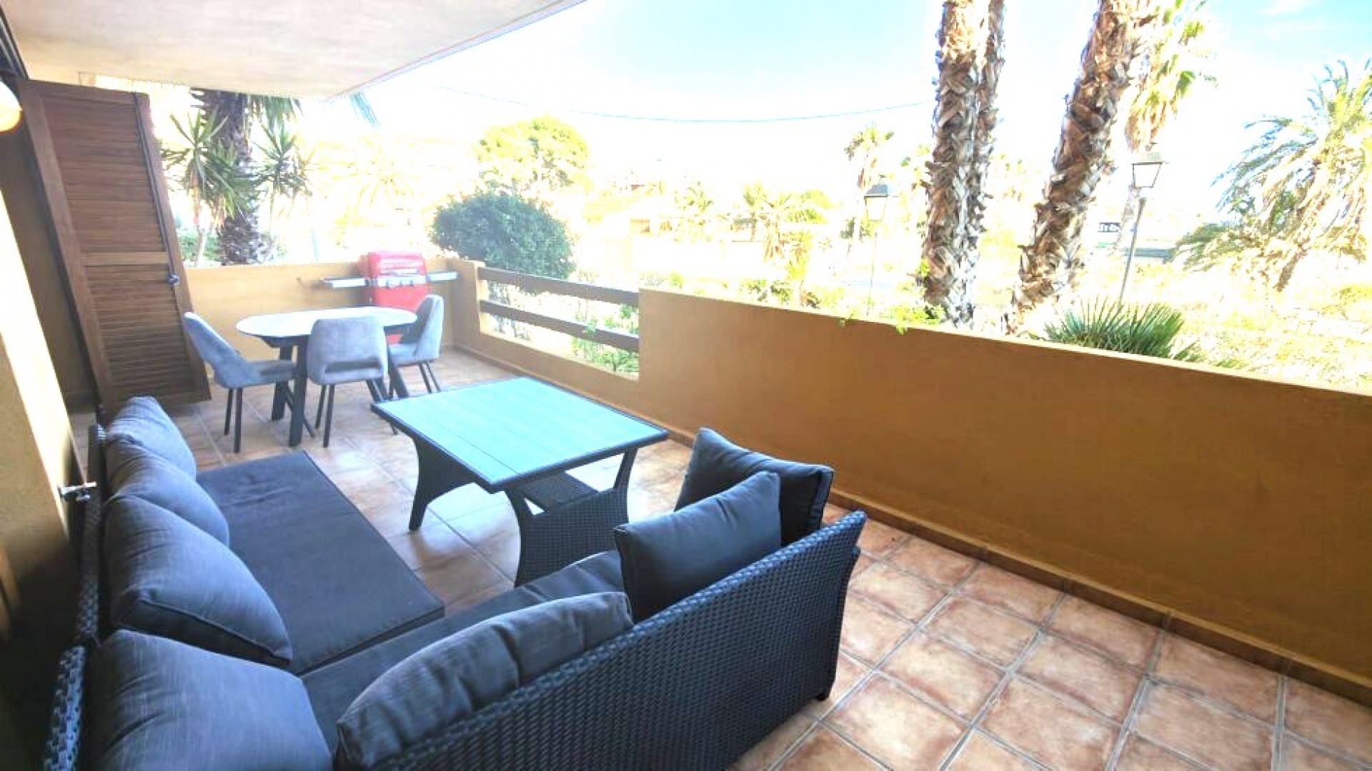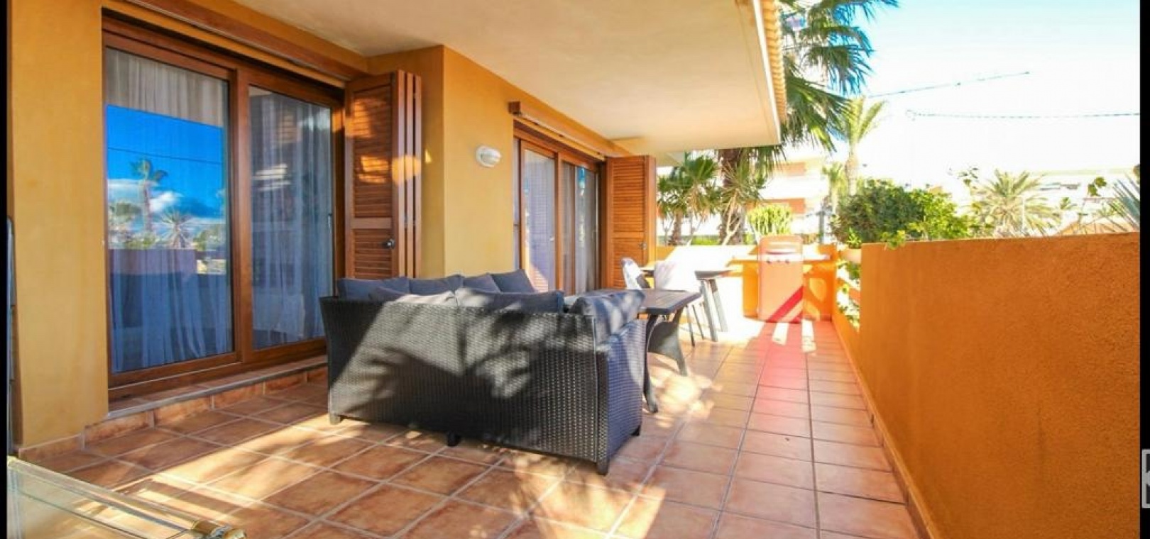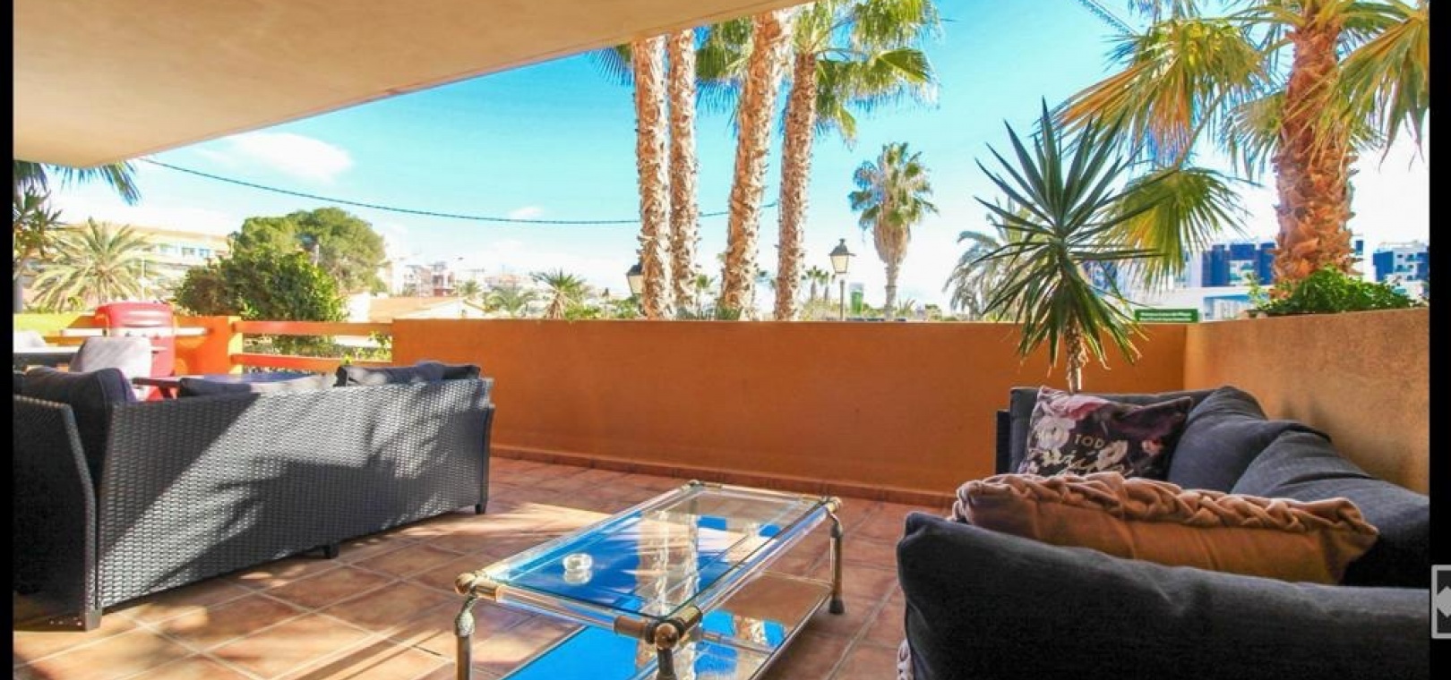 We offer for sale this spacious apartment on the ground floor located in one of the most desirable urbanizations of Punta Prima, La Entrada. The apartment is composed of 2 bedrooms, 2 bathrooms, a large lounge, kitchen and an impressive terrace of 36 m2. La Entrada is the gated community with several swimming pools, ( one is heated), perfectly maintained green zones and a 24/7 security. It is a perfect place to live all year round or to spend your holidays with friends and family. Punta Prima is a typical Spanish seaside tourist resort, located on the southern Costa Blanca and less than 30 minutes from two international airports, Murcia and Alicante. The beaches, which are some of the cleanest around, have been awarded by Blue Flag status. There is a wonderful promenade with shops, boutiques, bars and restaurants. Punta Prima has a Mediterranean climate with 320 days of sunshine a year.