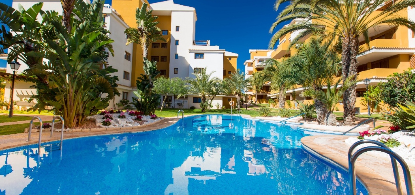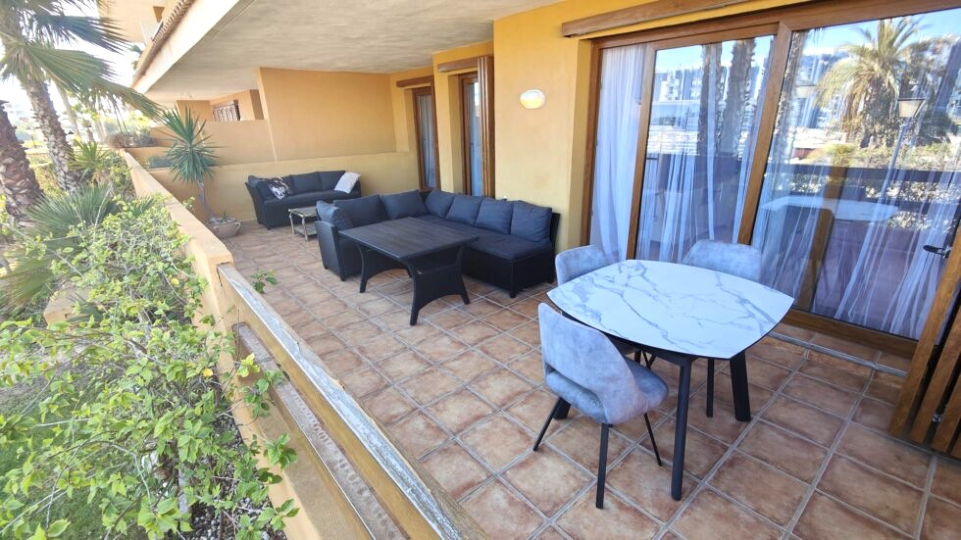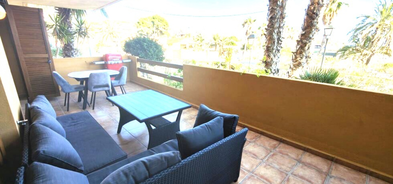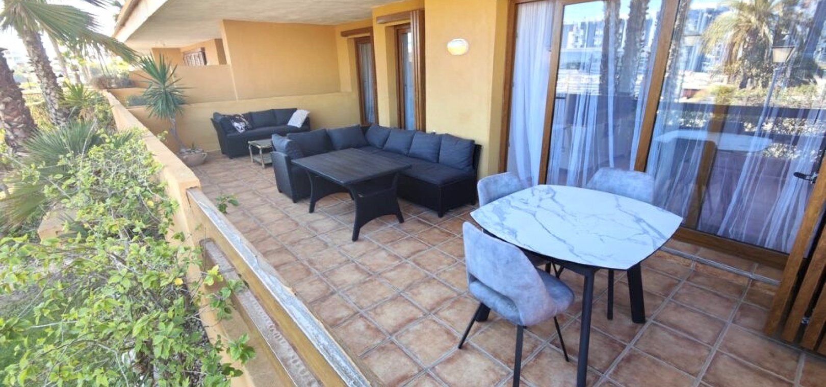 We offer for sale this spacious apartment on the ground floor located in one of the most desirable urbanizations of Punta Prima, La Entrada. The apartment is composed of 2 bedrooms, 2 bathrooms, a large lounge, kitchen and an impressive terrace of 36 m2. La Entrada is the gated community with several swimming pools, ( one is heated), perfectly maintained green zones and a 24/7 security. It is a perfect place to live all year round or to spend your holidays with friends and family. Punta Prima is a typical Spanish seaside tourist resort, located on the southern Costa Blanca and less than 30 minutes from two international airports, Murcia and Alicante. The beaches, which are some of the cleanest around, have been awarded by Blue Flag status. There is a wonderful promenade with shops, boutiques, bars and restaurants. Punta Prima has a Mediterranean climate with 320 days of sunshine a year.
