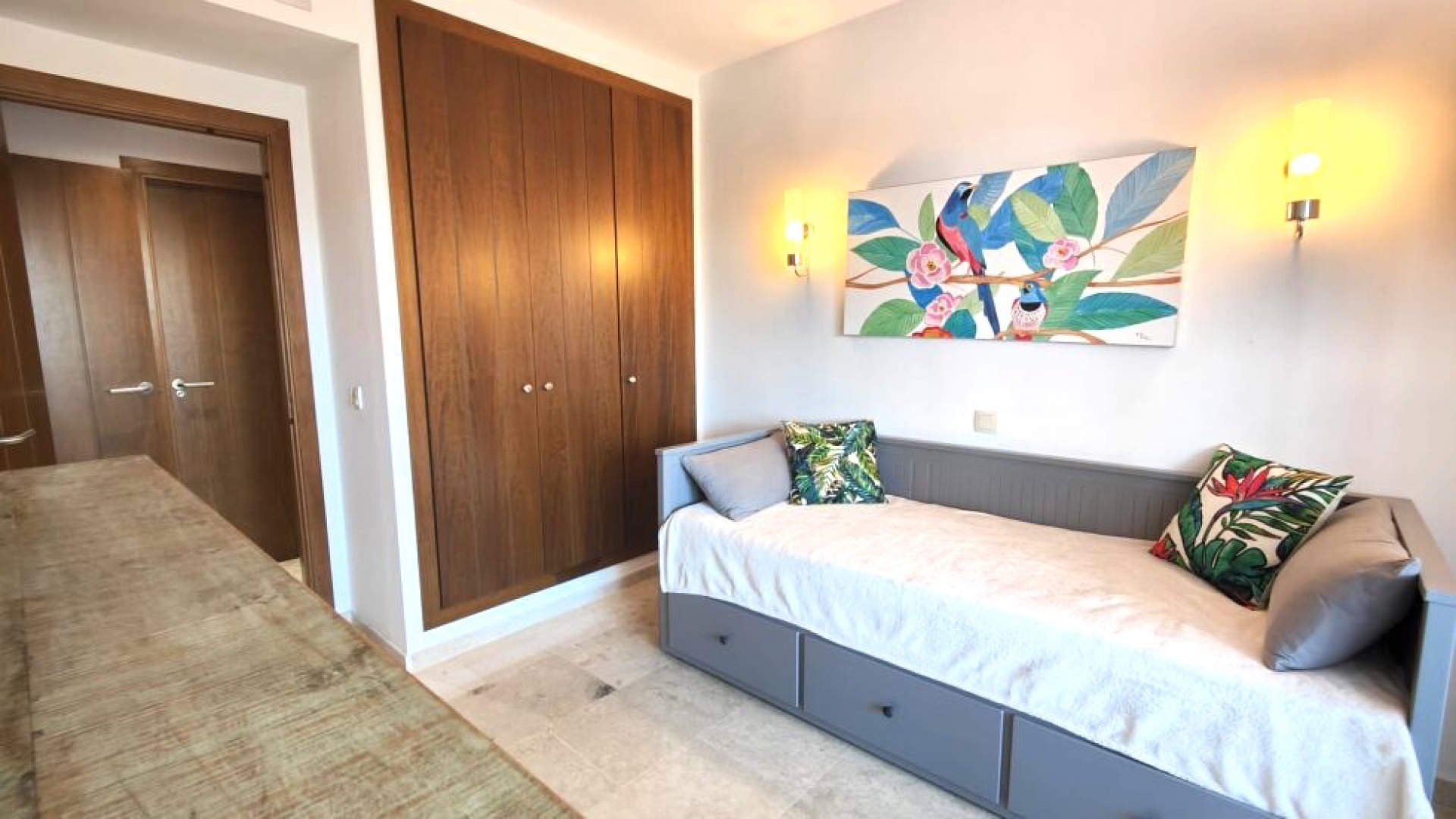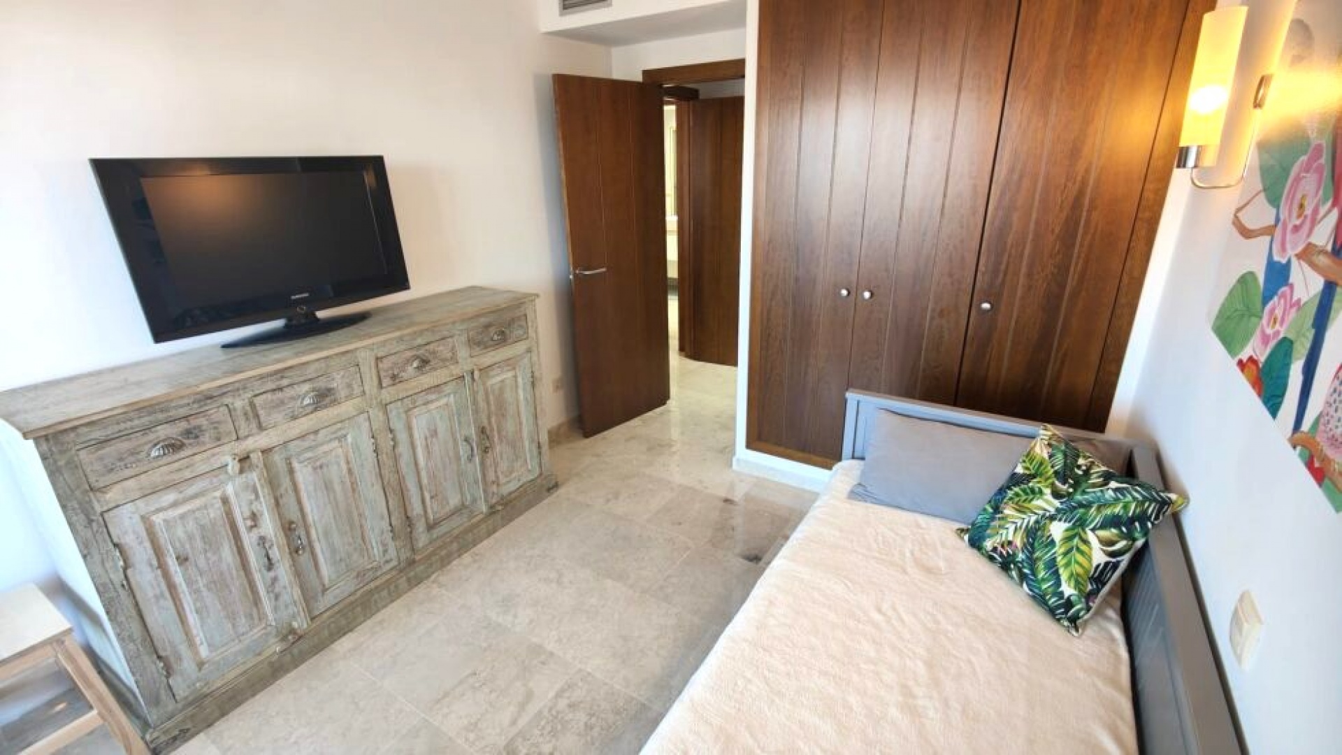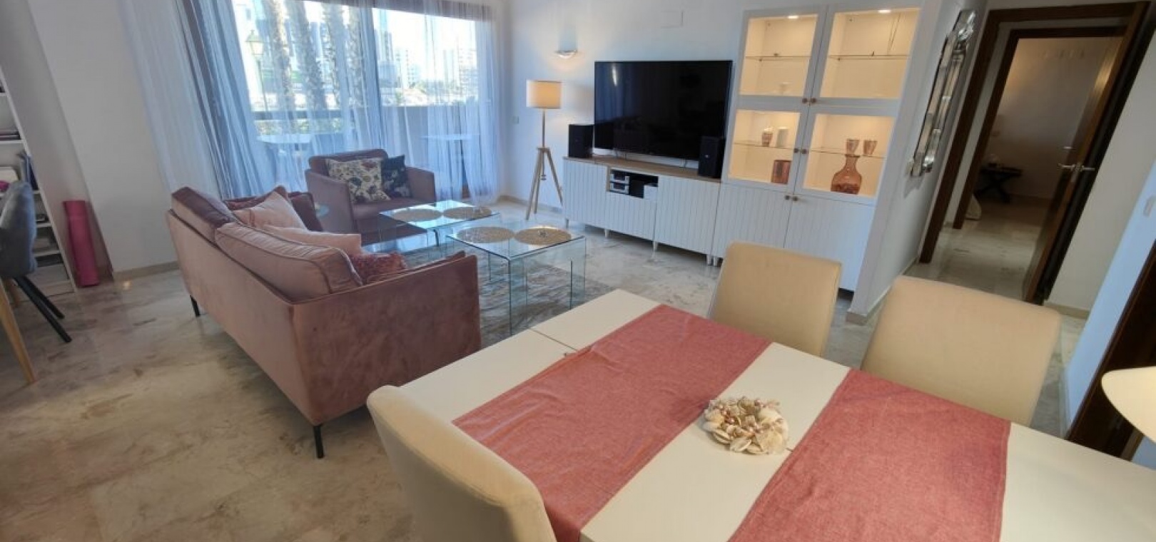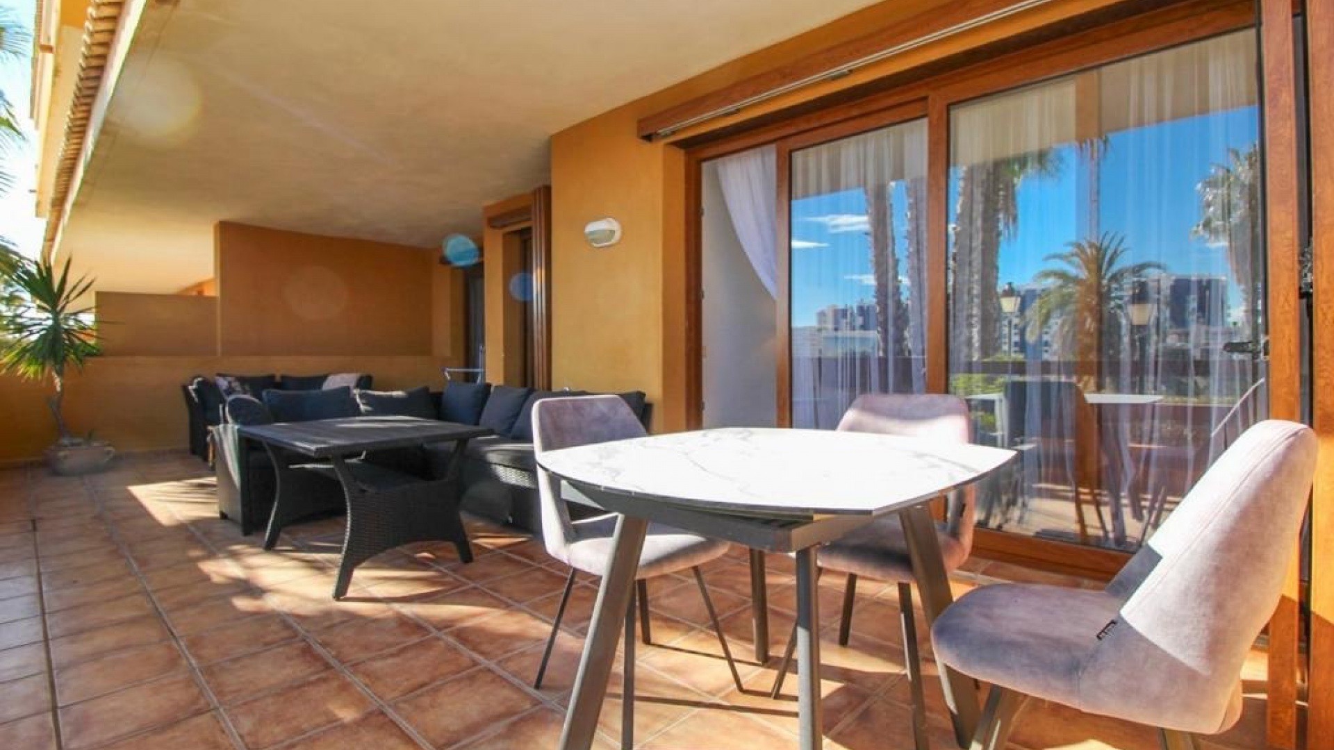 We offer for sale this spacious apartment on the ground floor located in one of the most desirable urbanizations of Punta Prima, La Entrada. The apartment is composed of 2 bedrooms, 2 bathrooms, a large lounge, kitchen and an impressive terrace of 36 m2. La Entrada is the gated community with several swimming pools, ( one is heated), perfectly maintained green zones and a 24/7 security. It is a perfect place to live all year round or to spend your holidays with friends and family. Punta Prima is a typical Spanish seaside tourist resort, located on the southern Costa Blanca and less than 30 minutes from two international airports, Murcia and Alicante. The beaches, which are some of the cleanest around, have been awarded by Blue Flag status. There is a wonderful promenade with shops, boutiques, bars and restaurants. Punta Prima has a Mediterranean climate with 320 days of sunshine a year.