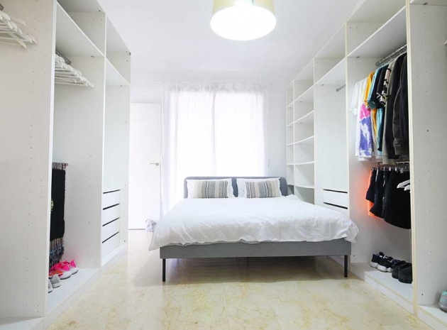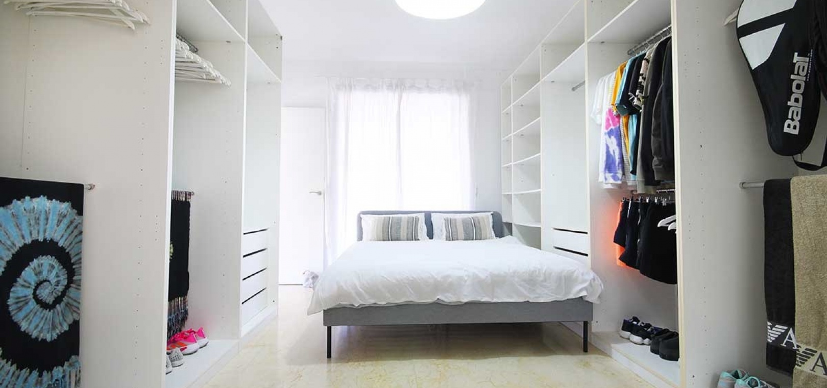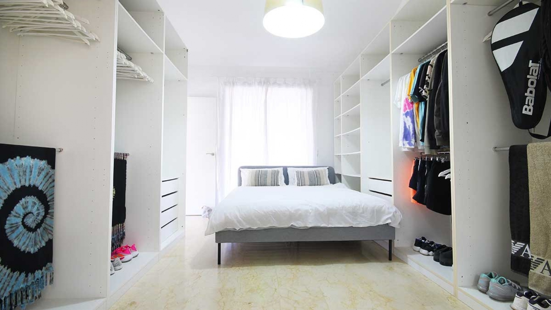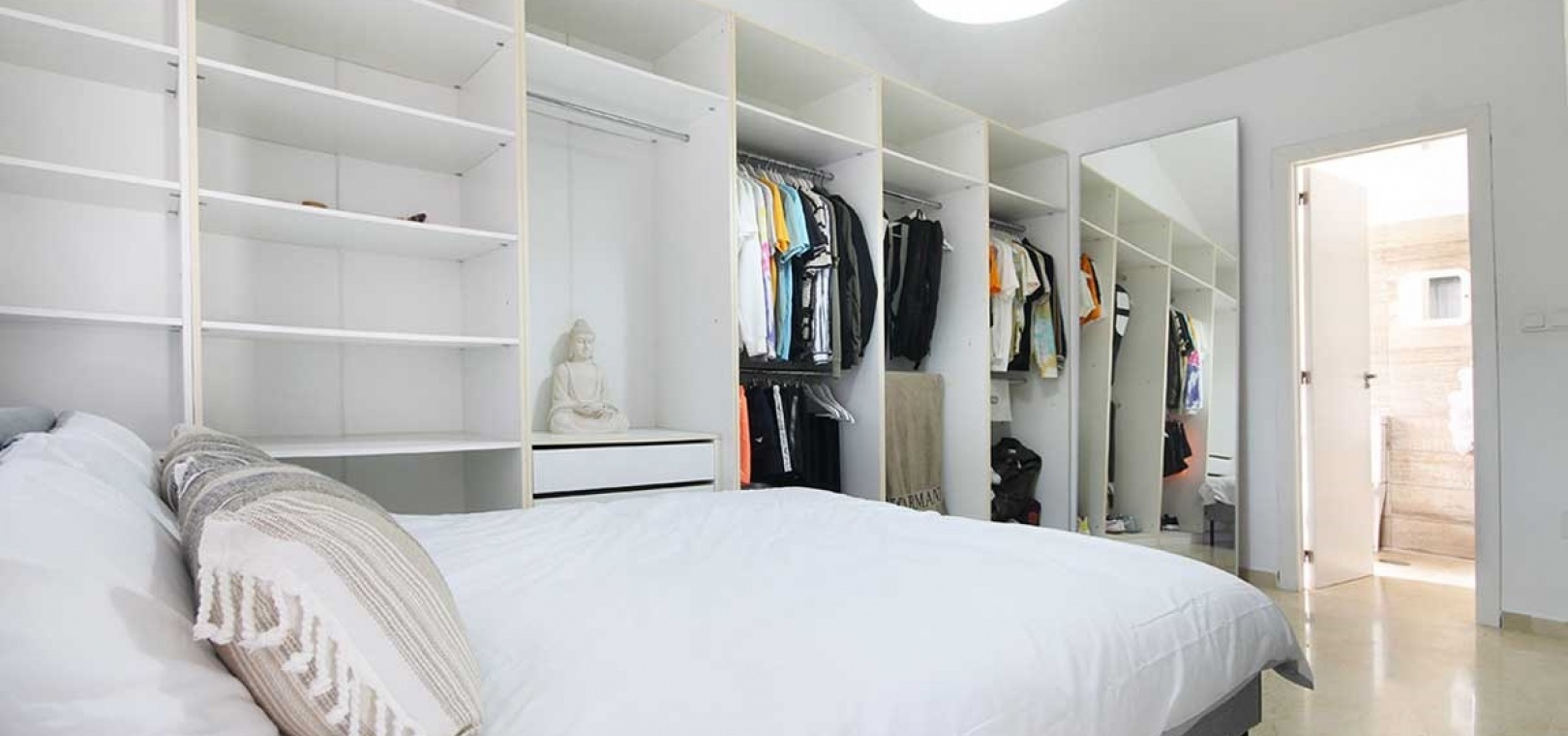 The main bedroom has a large walk-in closet and dressing area which is fully fitted with shelf and hanging space. This closet also easily fits a double bed and can be closed off from the master bedroom to create a fourth bedroom if desired.