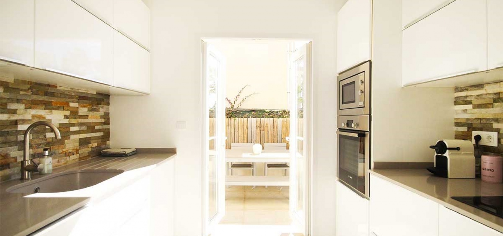 On the ground floor there is a very spacious and bright lounge/dining room with hot and cold A/C & patio doors which lead on to the garden, a separate fully fitted kitchen with doors out to the garden, 1 x double bedroom, 1 x shower room & an under stair storage cupboard.