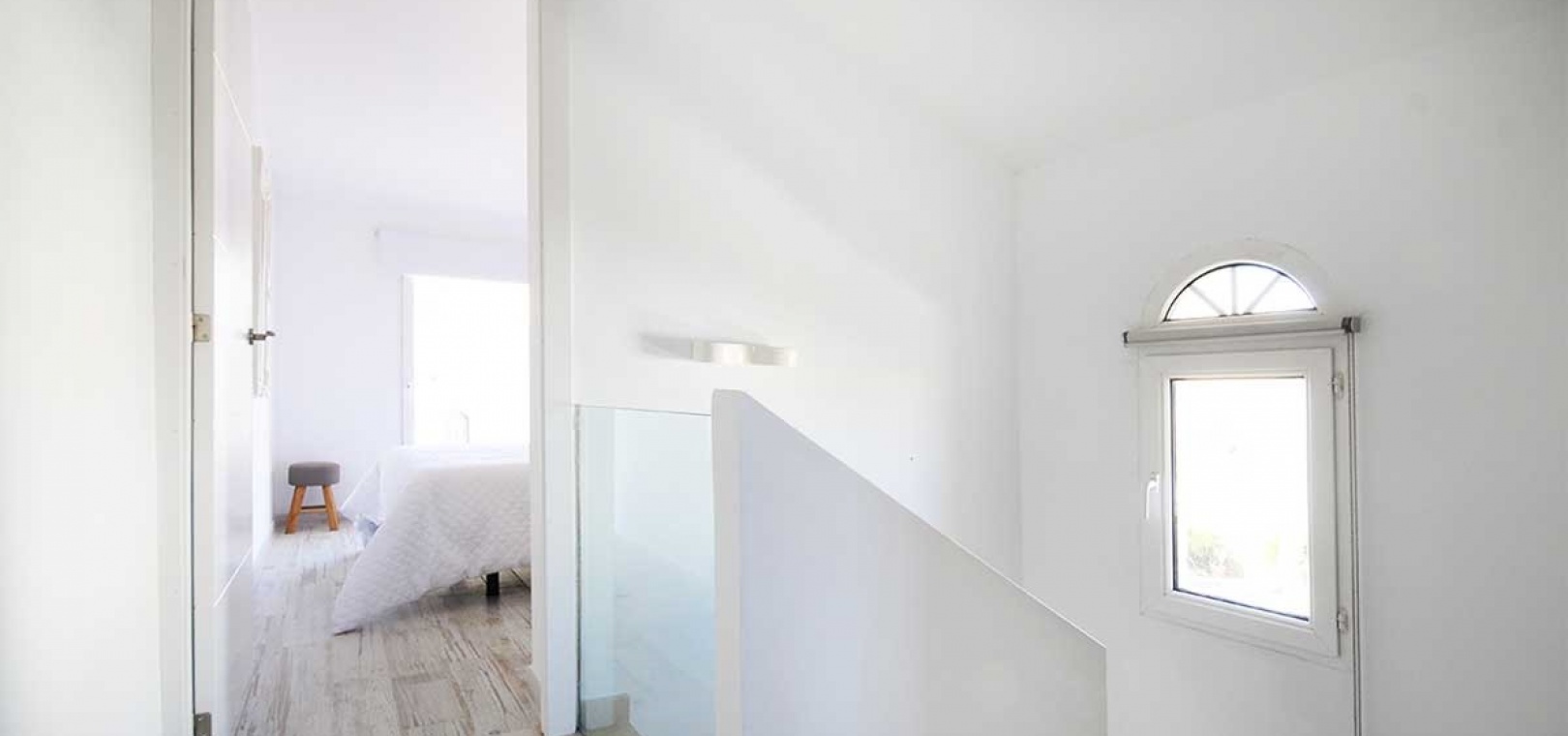 Stairs lead up to the first floor landing with modern glass balustrade. From here is access to the main bedroom, 2nd guest bedroom, a very large closet and dressing room and another large shower room.