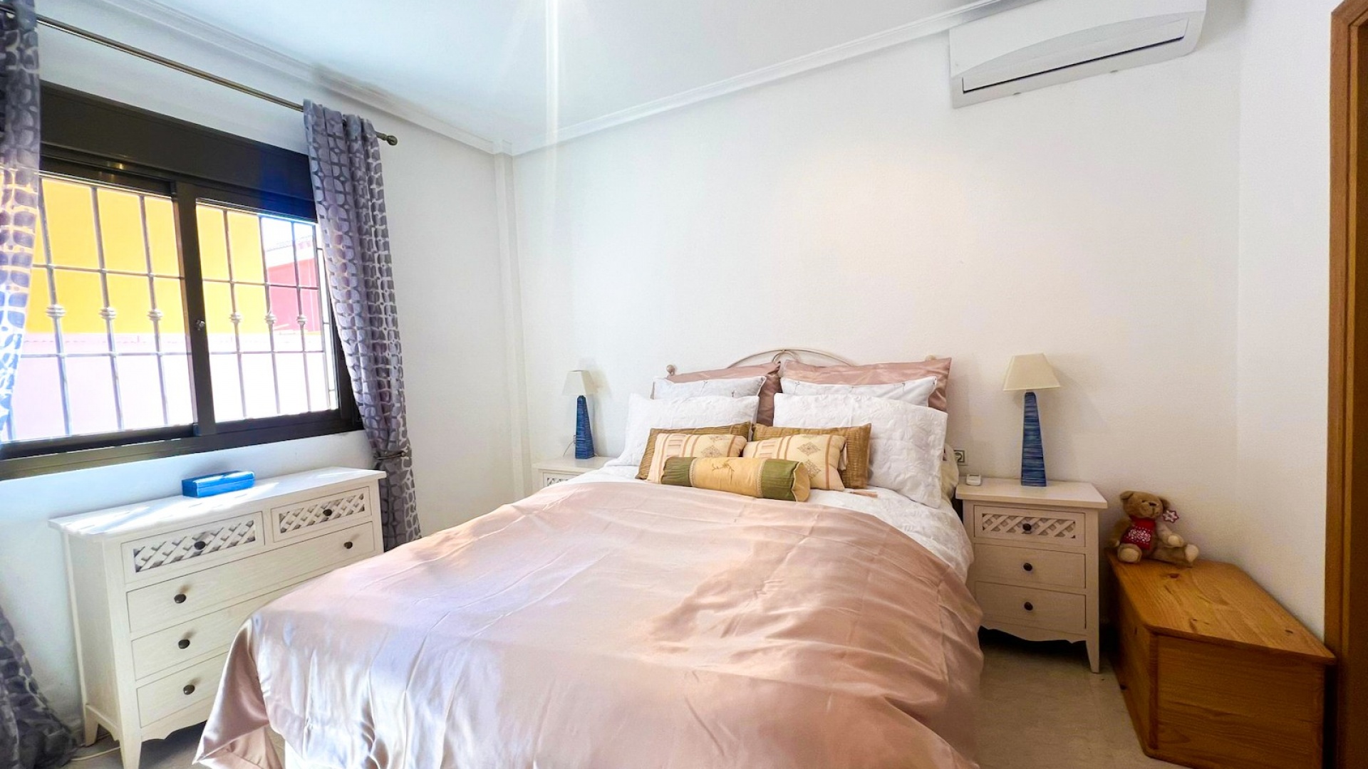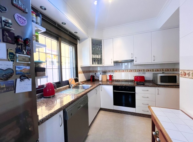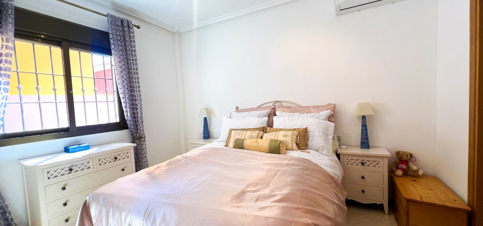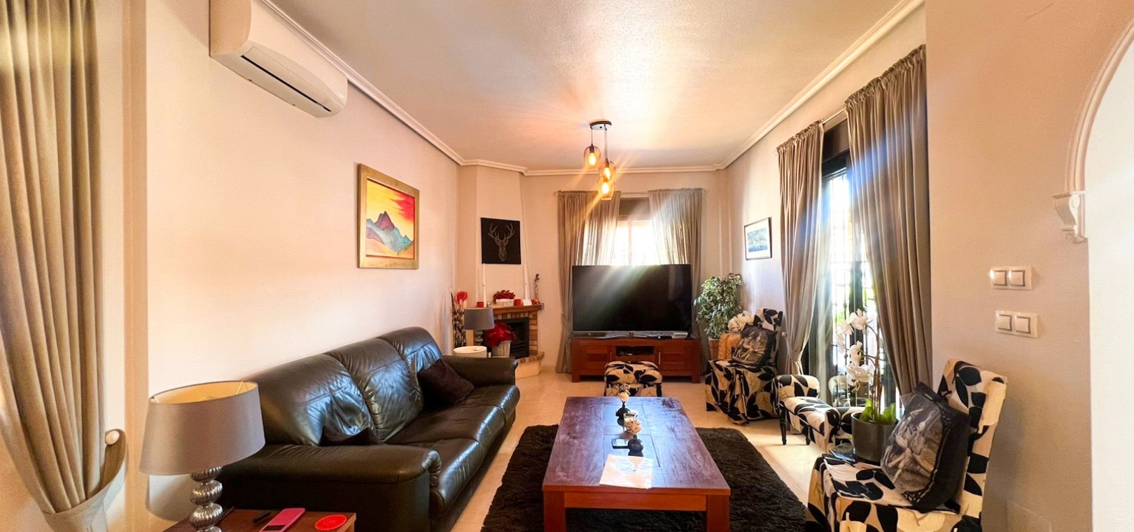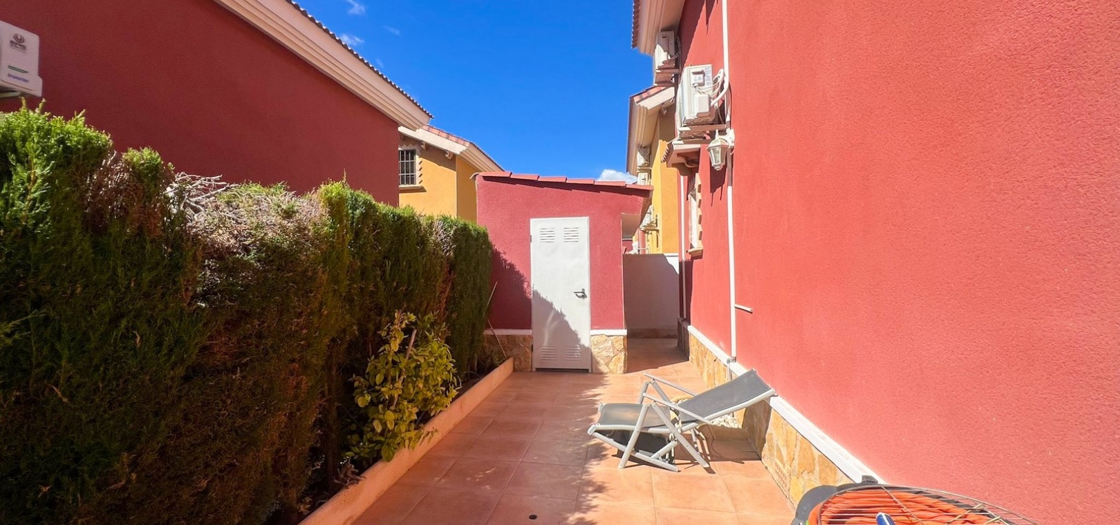 we are pleased to present you this superb 3 bedroom 3 bathroom villa with private pool and communal pool with a car portAs you enter the garden you will find a private swimming pool which faces the villa and there is also some rear garden space to enjoy the sunOn entering the property there is a glazed balcony leading to the living room, on the main floor there is a separate kitchen with a double bedroom with fitted wardrobes and en suite with bathtub and another spare bathroom On the upper floor there are two double bedrooms and a bathroom with a terraceExtras to this property is, it comes fully furnished and has air conditioning units in all rooms