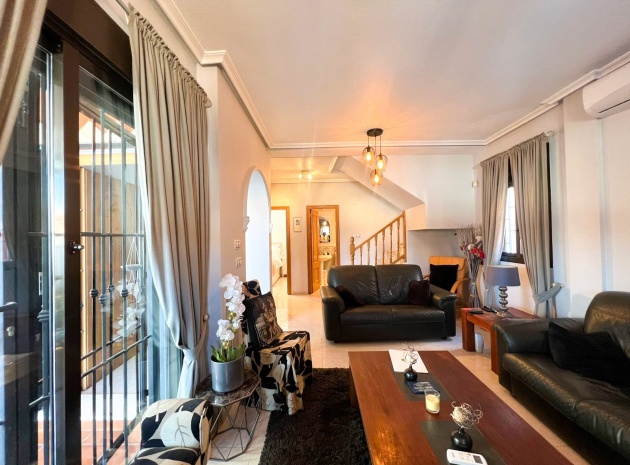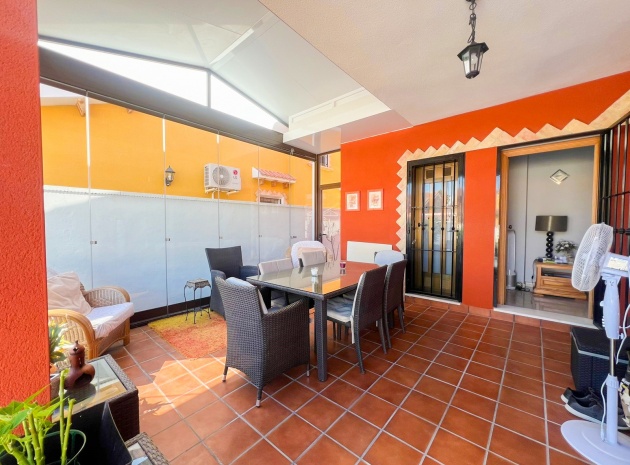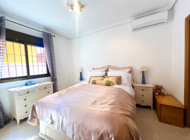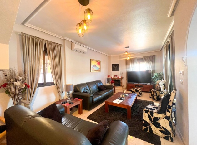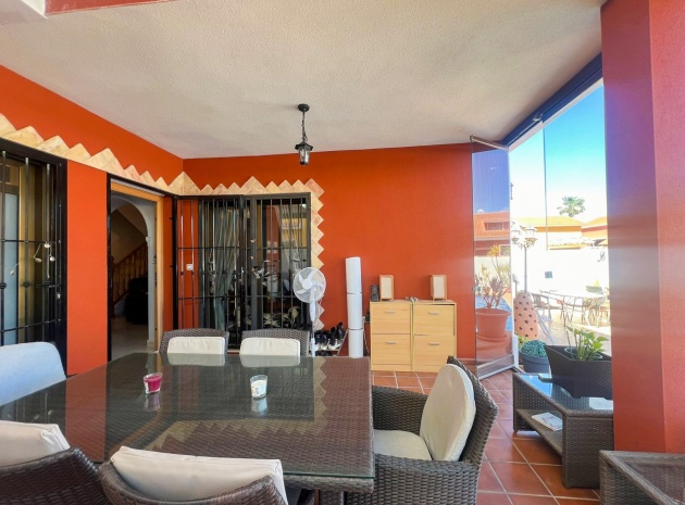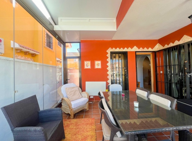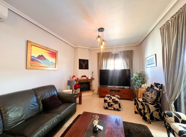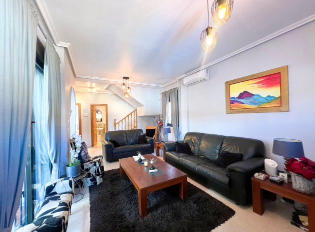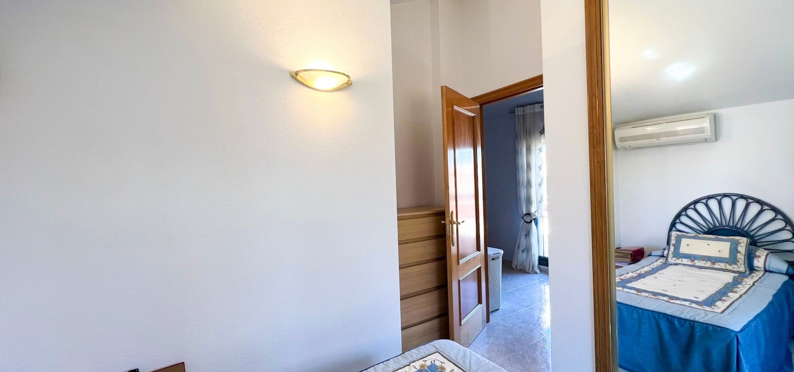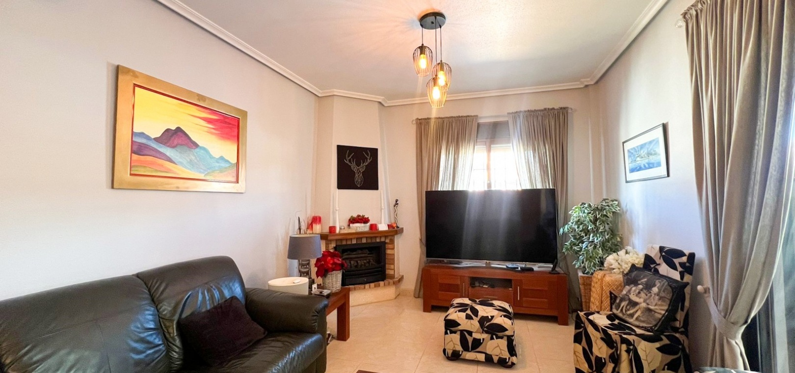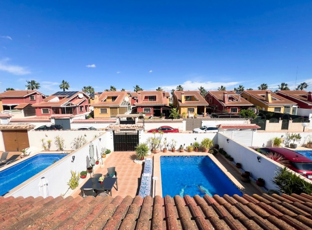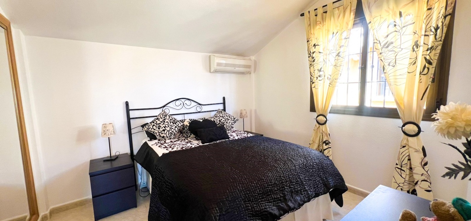 we are pleased to present you this superb 3 bedroom 3 bathroom villa with private pool and communal pool with a car portAs you enter the garden you will find a private swimming pool which faces the villa and there is also some rear garden space to enjoy the sunOn entering the property there is a glazed balcony leading to the living room, on the main floor there is a separate kitchen with a double bedroom with fitted wardrobes and en suite with bathtub and another spare bathroom On the upper floor there are two double bedrooms and a bathroom with a terraceExtras to this property is, it comes fully furnished and has air conditioning units in all rooms