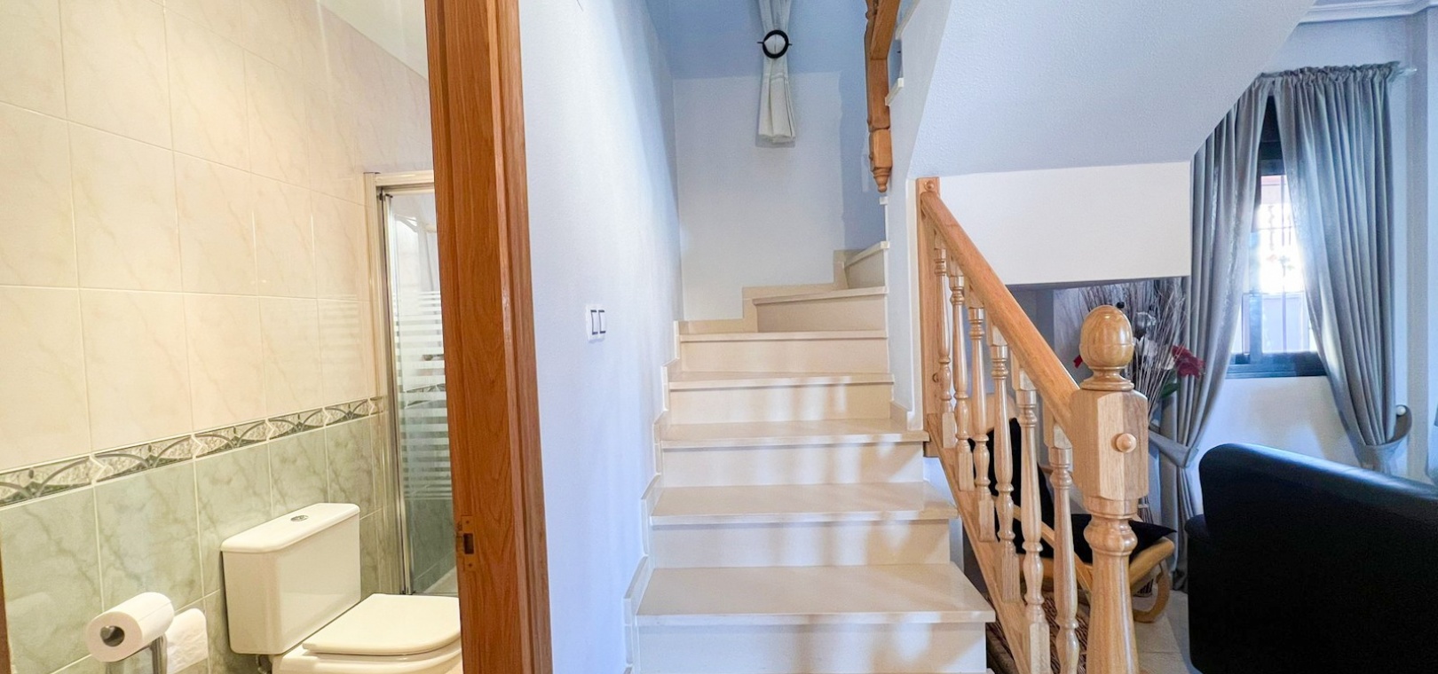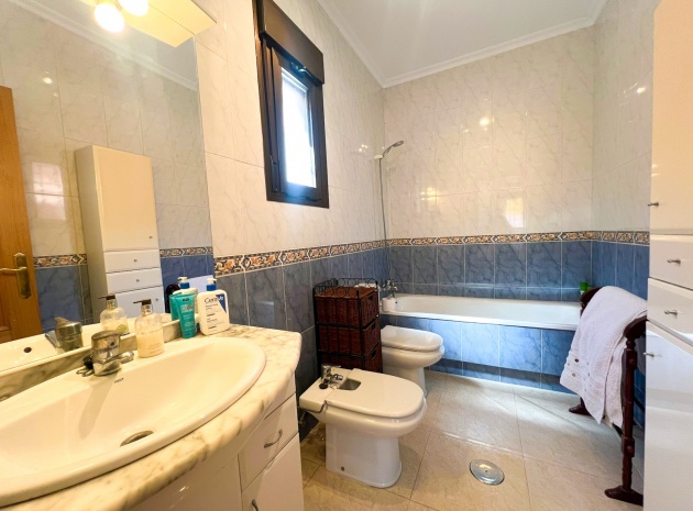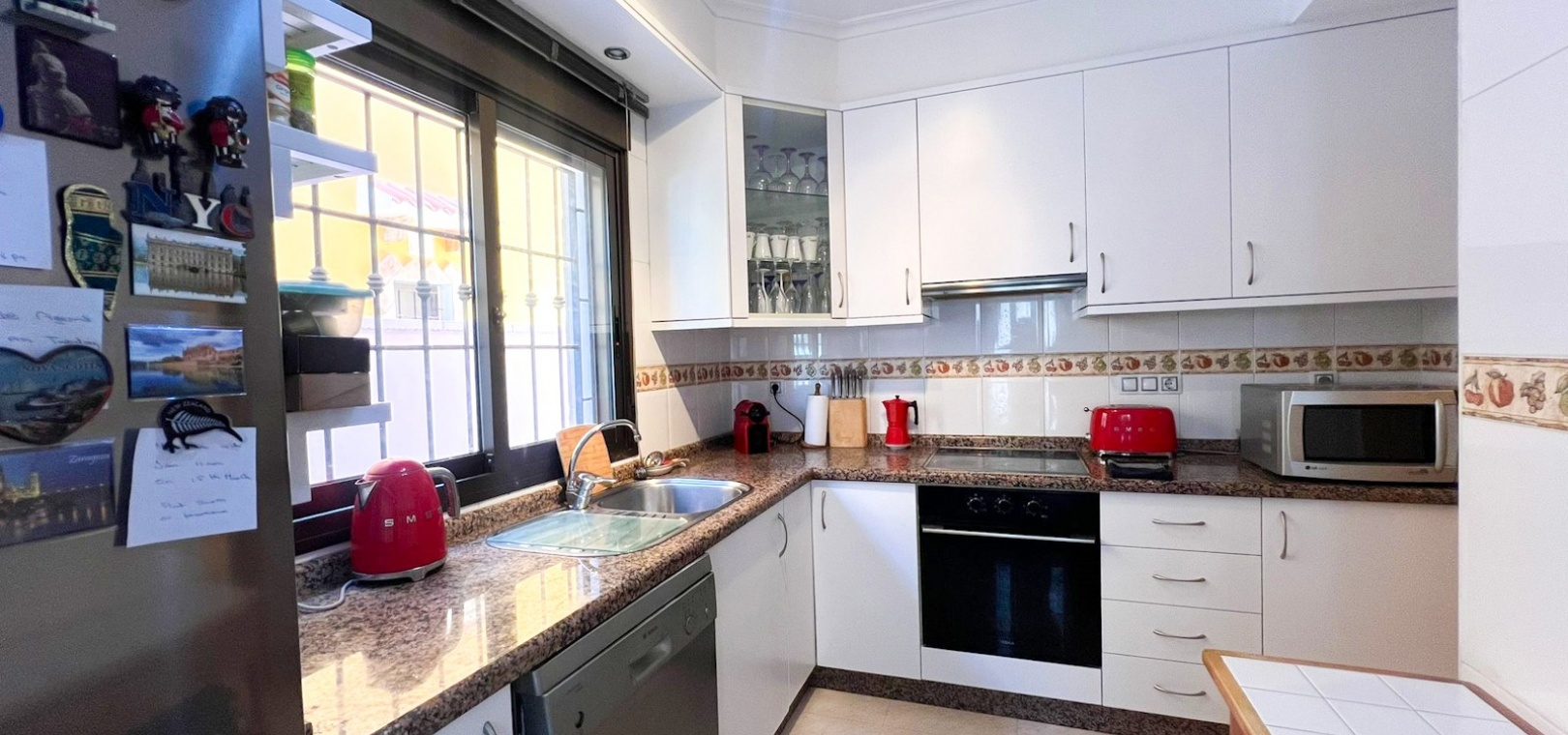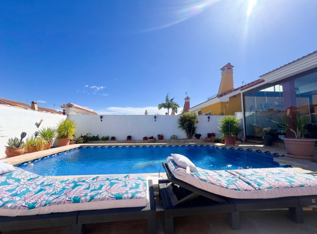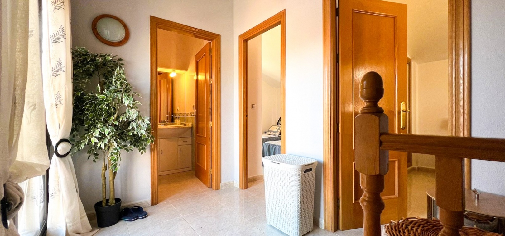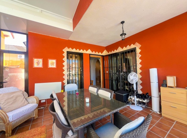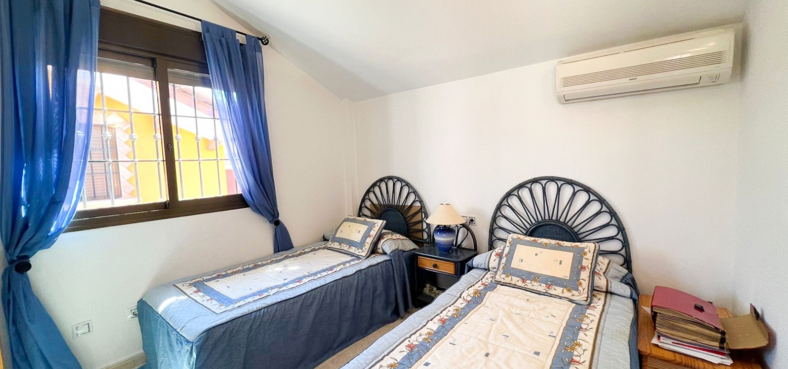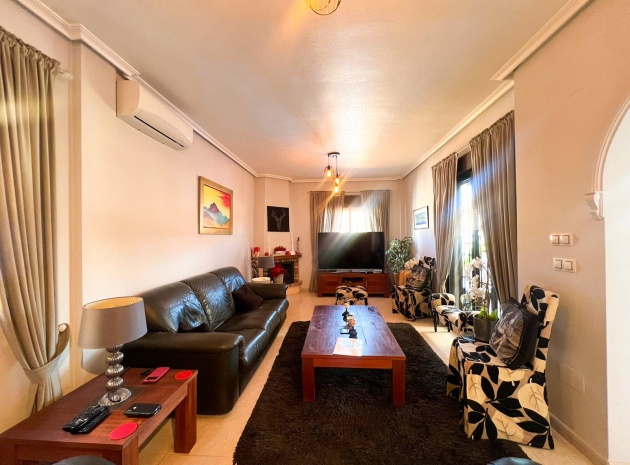 we are pleased to present you this superb 3 bedroom 3 bathroom villa with private pool and communal pool with a car portAs you enter the garden you will find a private swimming pool which faces the villa and there is also some rear garden space to enjoy the sunOn entering the property there is a glazed balcony leading to the living room, on the main floor there is a separate kitchen with a double bedroom with fitted wardrobes and en suite with bathtub and another spare bathroom On the upper floor there are two double bedrooms and a bathroom with a terraceExtras to this property is, it comes fully furnished and has air conditioning units in all rooms