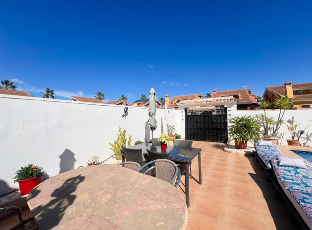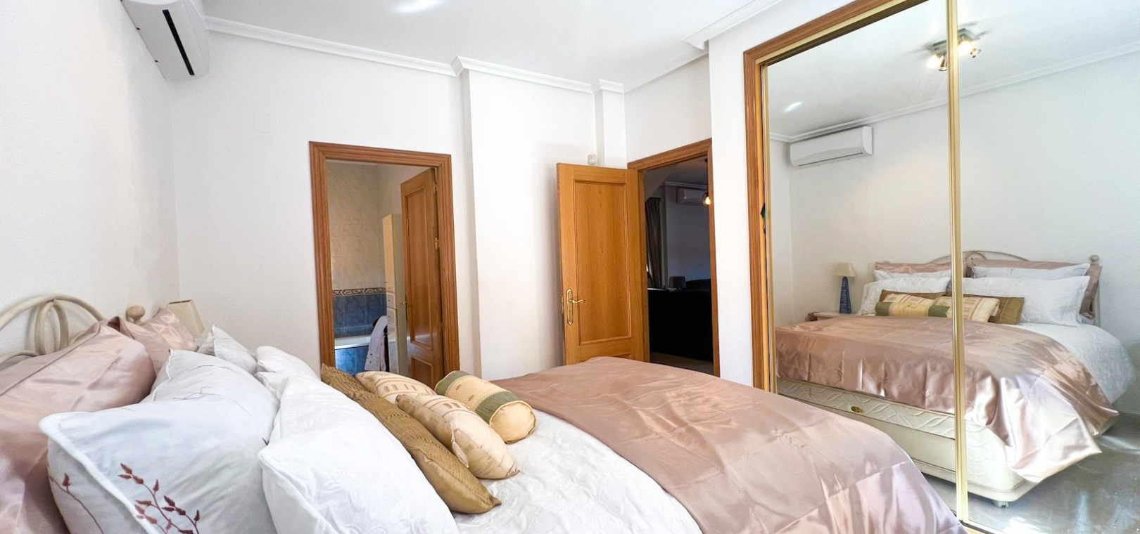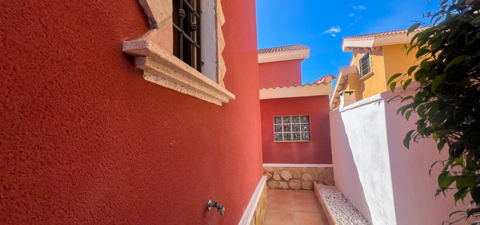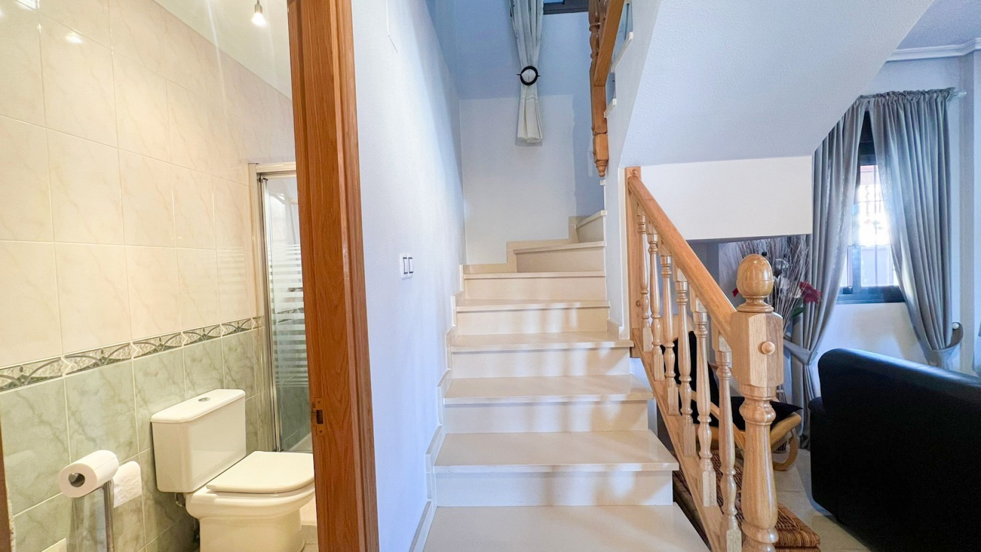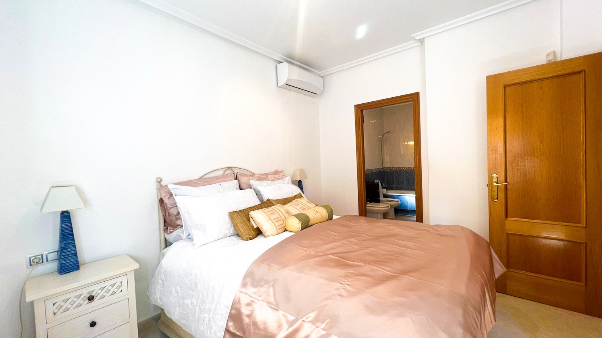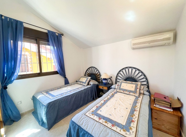 we are pleased to present you this superb 3 bedroom 3 bathroom villa with private pool and communal pool with a car portAs you enter the garden you will find a private swimming pool which faces the villa and there is also some rear garden space to enjoy the sunOn entering the property there is a glazed balcony leading to the living room, on the main floor there is a separate kitchen with a double bedroom with fitted wardrobes and en suite with bathtub and another spare bathroom On the upper floor there are two double bedrooms and a bathroom with a terraceExtras to this property is, it comes fully furnished and has air conditioning units in all rooms