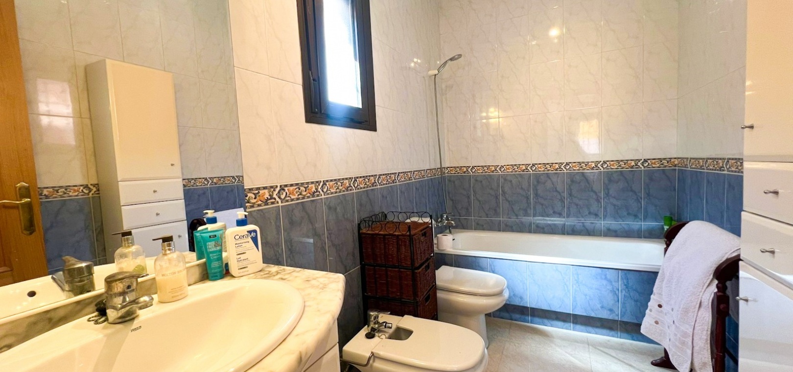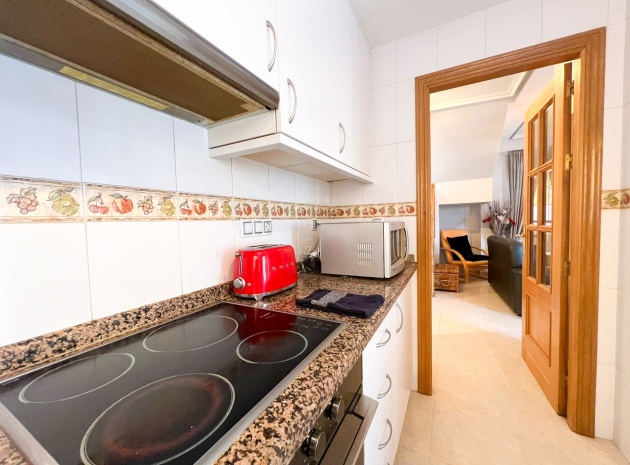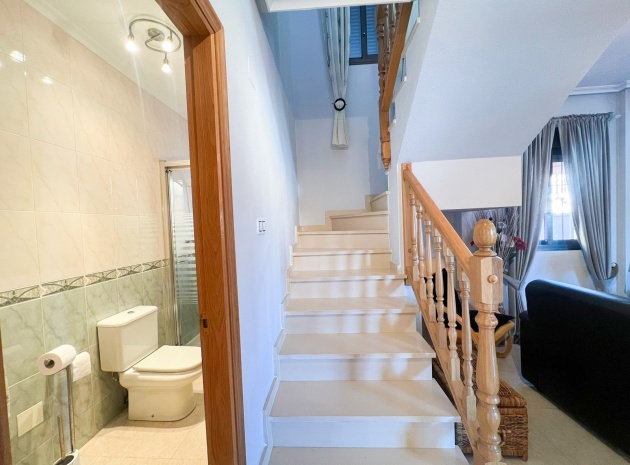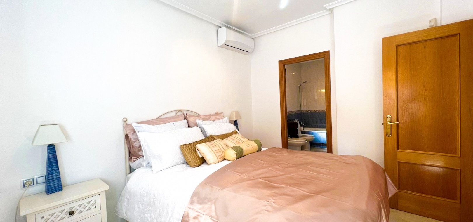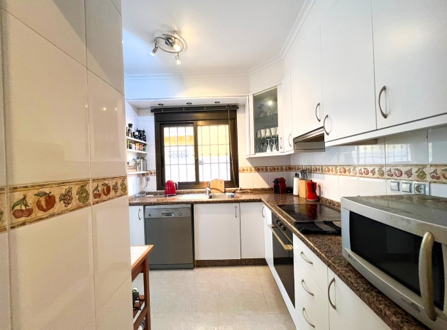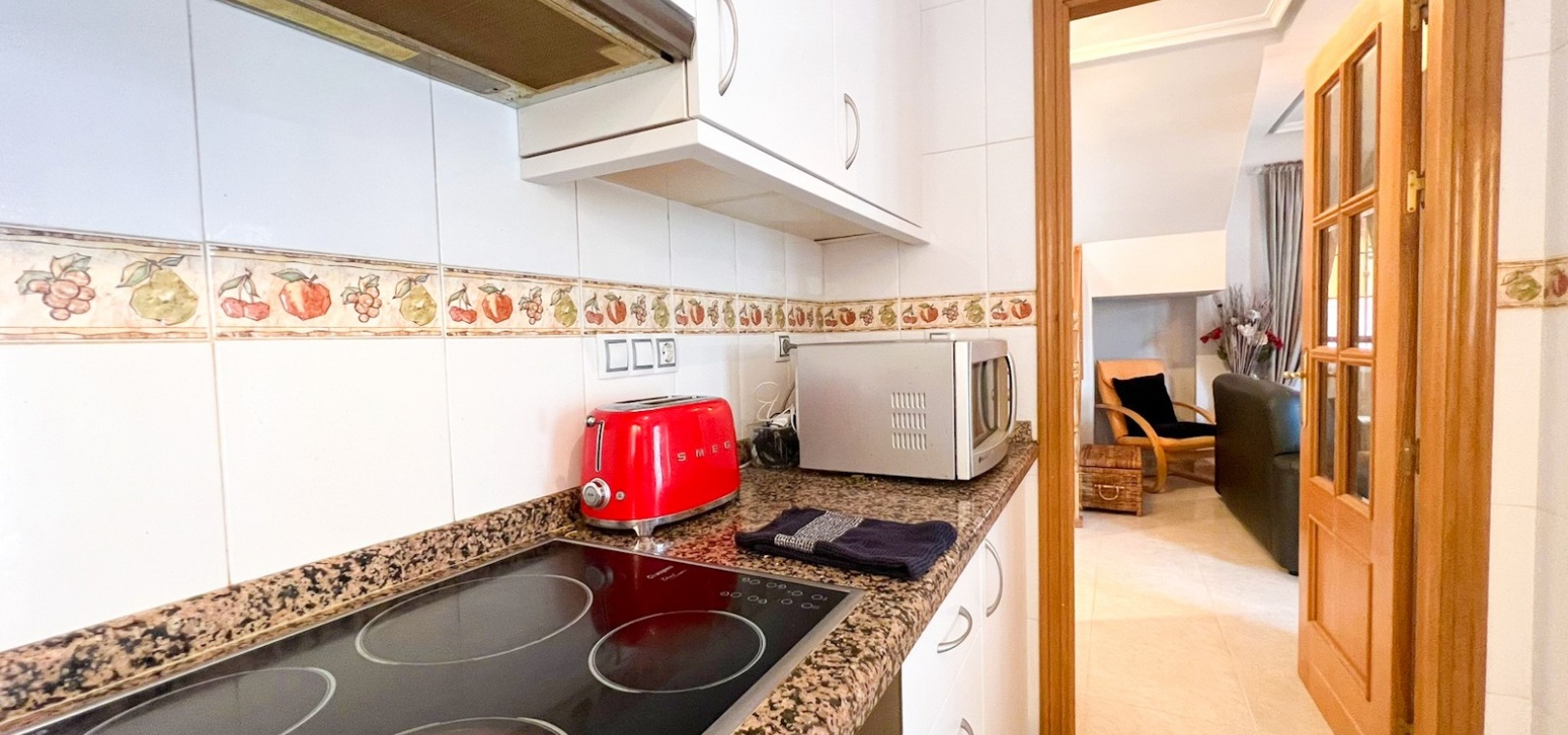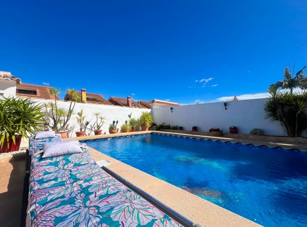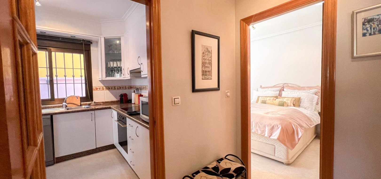 we are pleased to present you this superb 3 bedroom 3 bathroom villa with private pool and communal pool with a car portAs you enter the garden you will find a private swimming pool which faces the villa and there is also some rear garden space to enjoy the sunOn entering the property there is a glazed balcony leading to the living room, on the main floor there is a separate kitchen with a double bedroom with fitted wardrobes and en suite with bathtub and another spare bathroom On the upper floor there are two double bedrooms and a bathroom with a terraceExtras to this property is, it comes fully furnished and has air conditioning units in all rooms