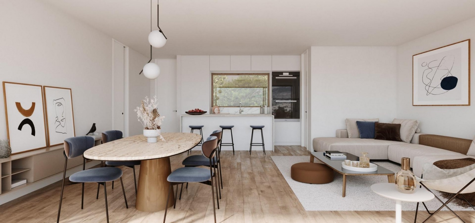 You can choose between 2 and 3 bedrooms apartments. Some of them has a terrace, private garden or large private solarium.