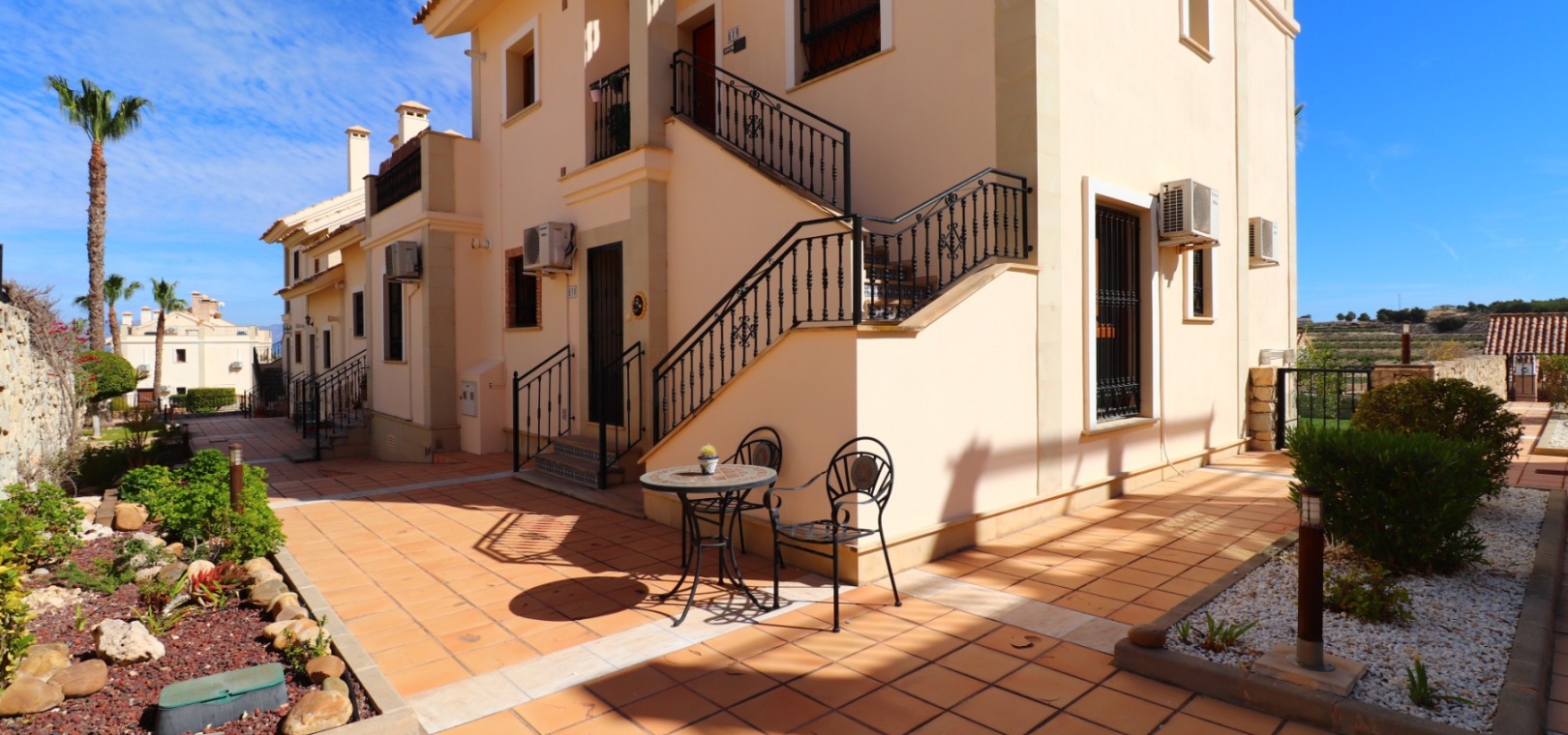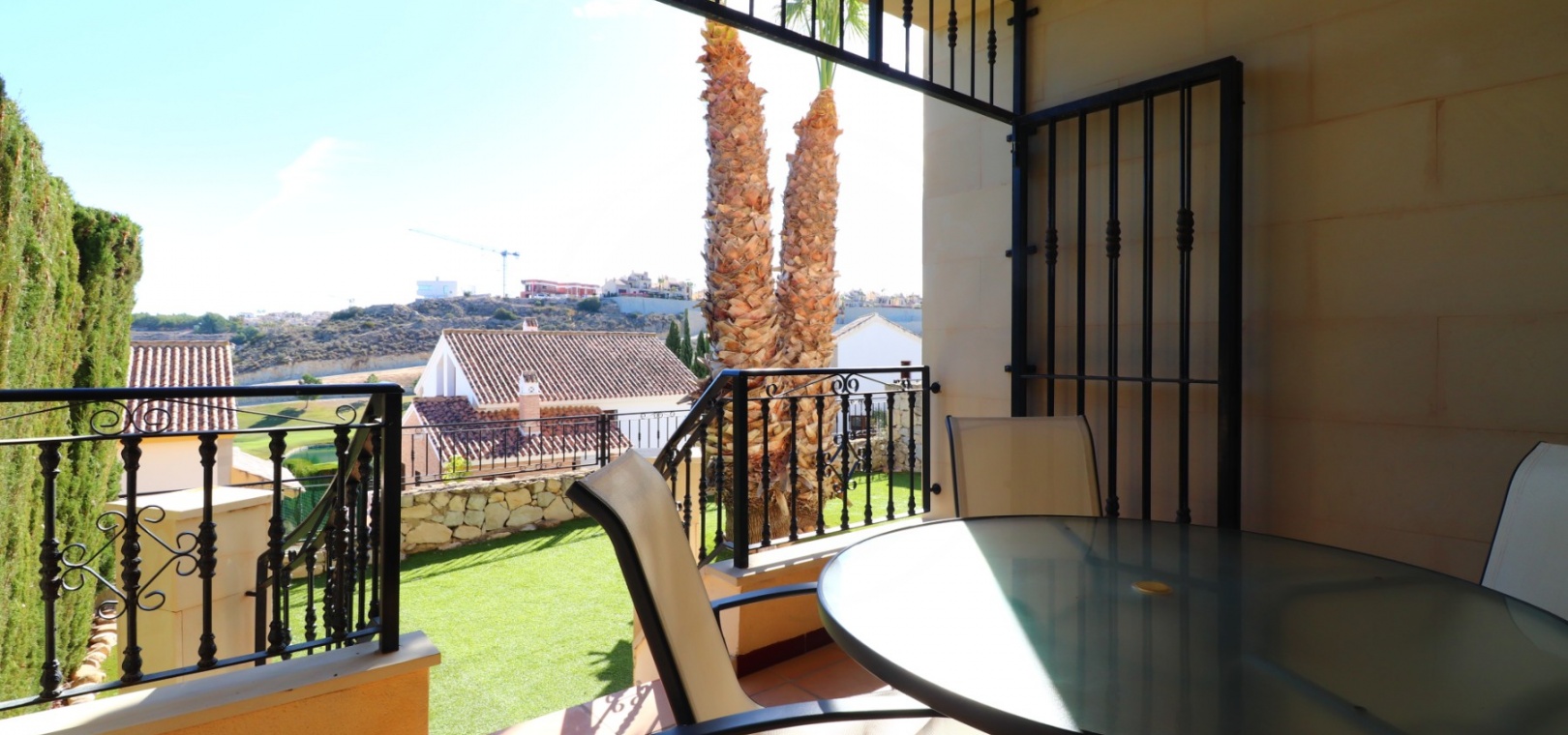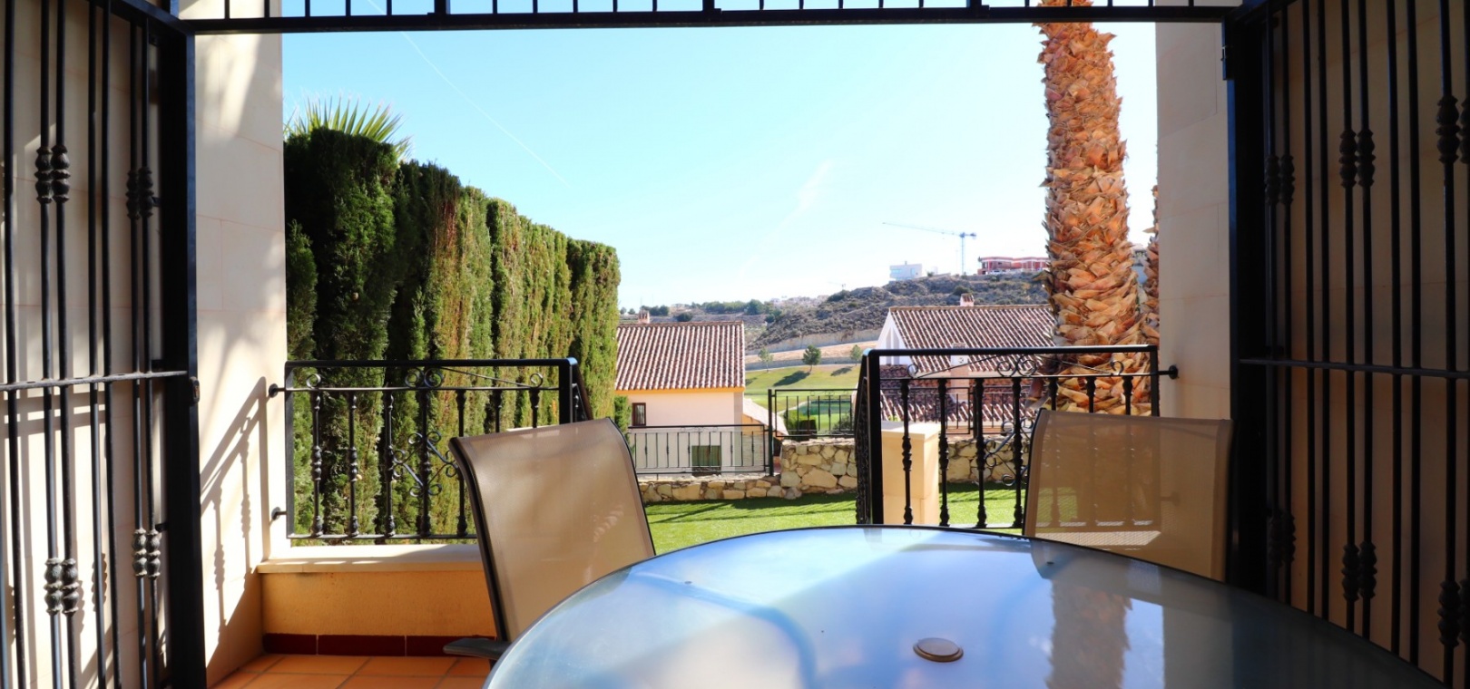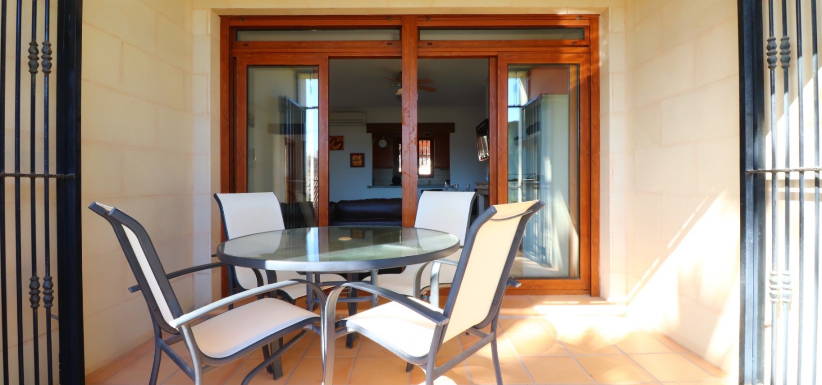 This Corner, East Facing, Two Bedroom, Ground Floor Apartment in La Finca Golf Resort is located in Algorfa, Costa Blanca, offering an ideal blend of comfort and convenience. Situated within a gated community, this property boasts a thoughtfully designed layout featuring two bedrooms and two shower rooms, ensuring ample space for relaxation and privacy. Upon entering, you are greeted by an inviting ambiance complemented by air conditioning throughout, ensuring year-round comfort. Fitted wardrobes provide convenient storage solutions, while grills offer added security. The property features one updated bathroom from its original design, showcasing modern amenities and style. The lovely living space includes a fireplace, creating a warm and inviting atmosphere, perfect for gatherings or quiet evenings in. An American-style kitchen adds to the contemporary charm of the home, providing functionality and style. Spanning 72 square meters, the apartment offers comfortable living spaces, further enhanced by an 8 square meter terrace, ideal for enjoying the Mediterranean climate and soaking up the sun. Additionally, a 75 square meter private artificial grass garden offers a tranquil outdoor retreat, complete with some slight golf views, providing a serene backdrop for relaxation. Residents of this community can enjoy access to a communal swimming pool located just 50 meters away, perfect for cooling off on hot summer days. The surrounding area boasts panoramic citrus grove and mountain views, adding to the natural beauty and charm of the location. Convenient gated community parking ensures hassle-free arrivals and departures, while the proximity to La Finca Golf Resort and its amenities adds to the appeal of this exceptional property. Whether you seek a permanent residence or a holiday retreat, this apartment offers a delightful blend of comfort, style, and convenience in a sought-after Costa Blanca location.