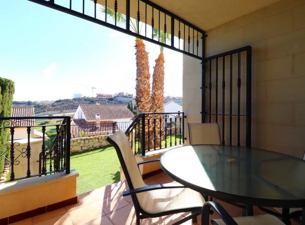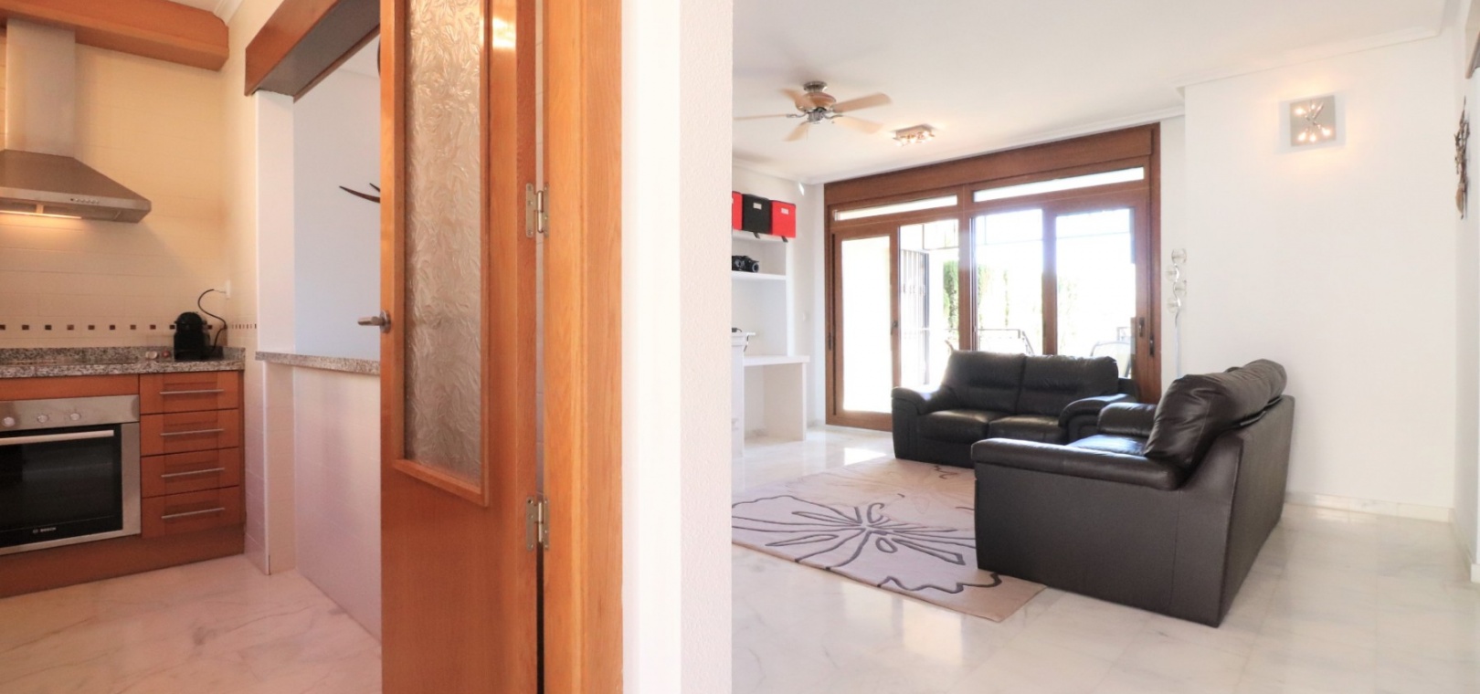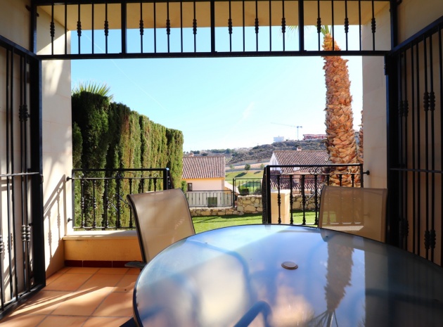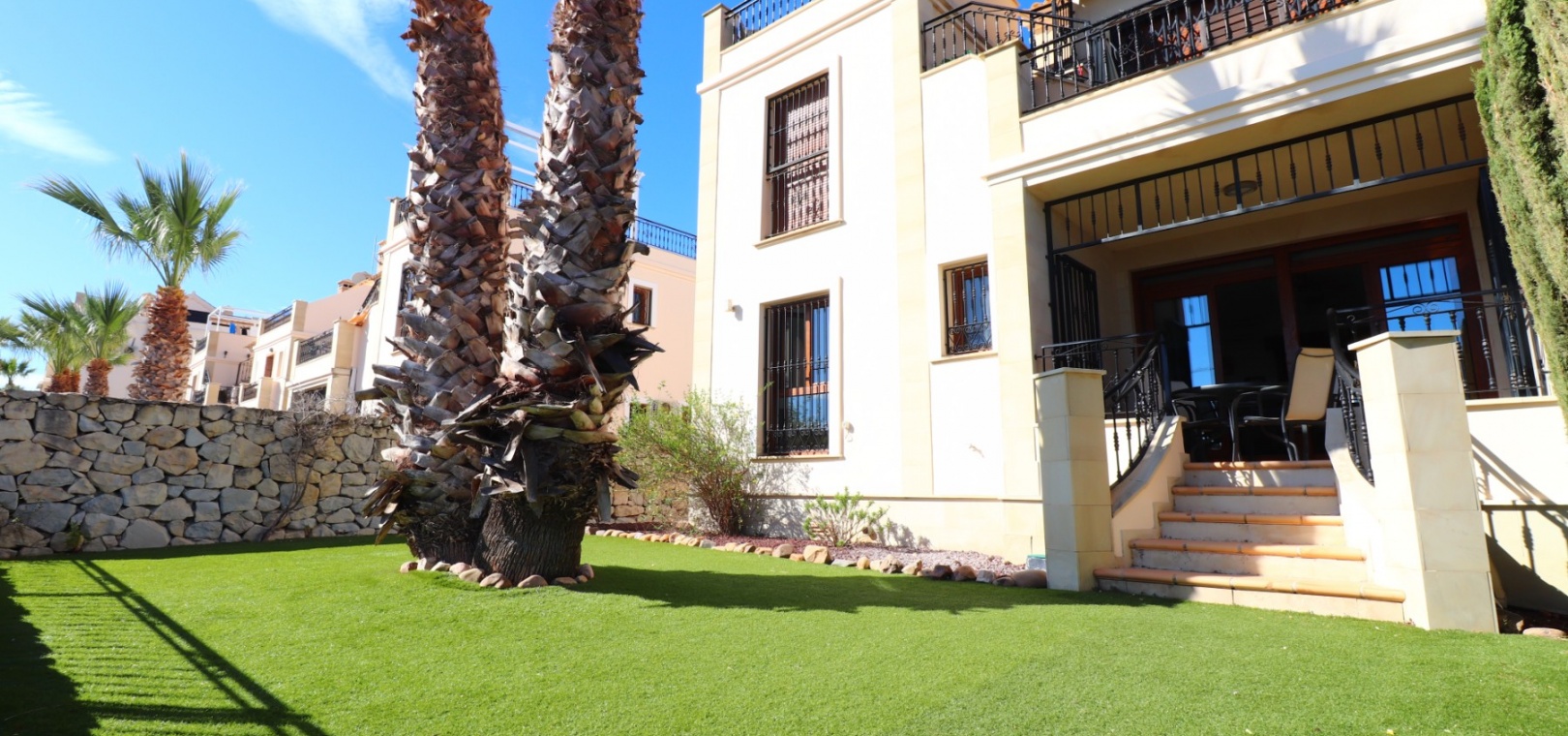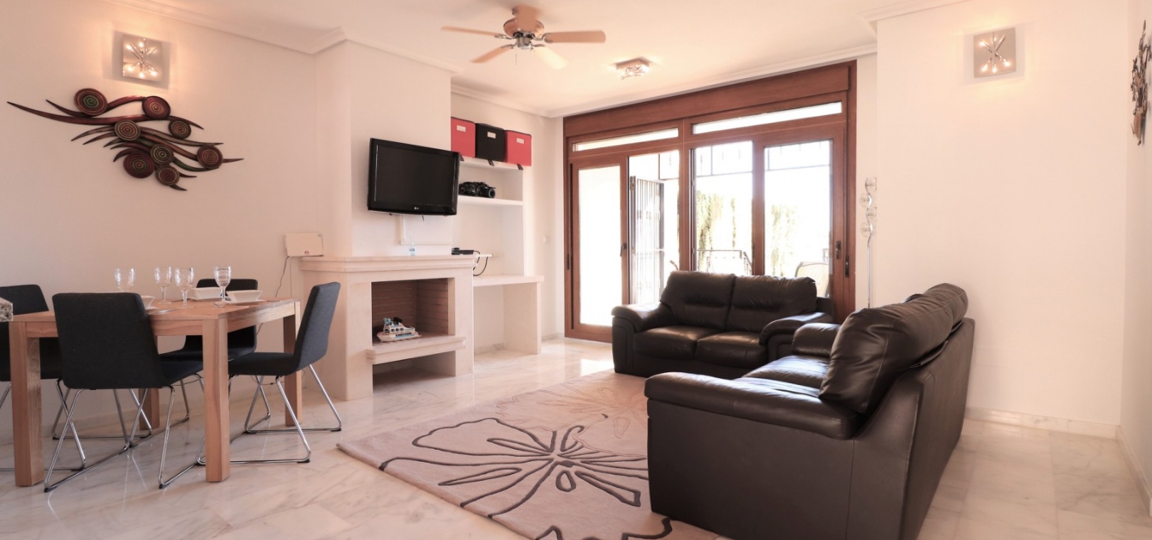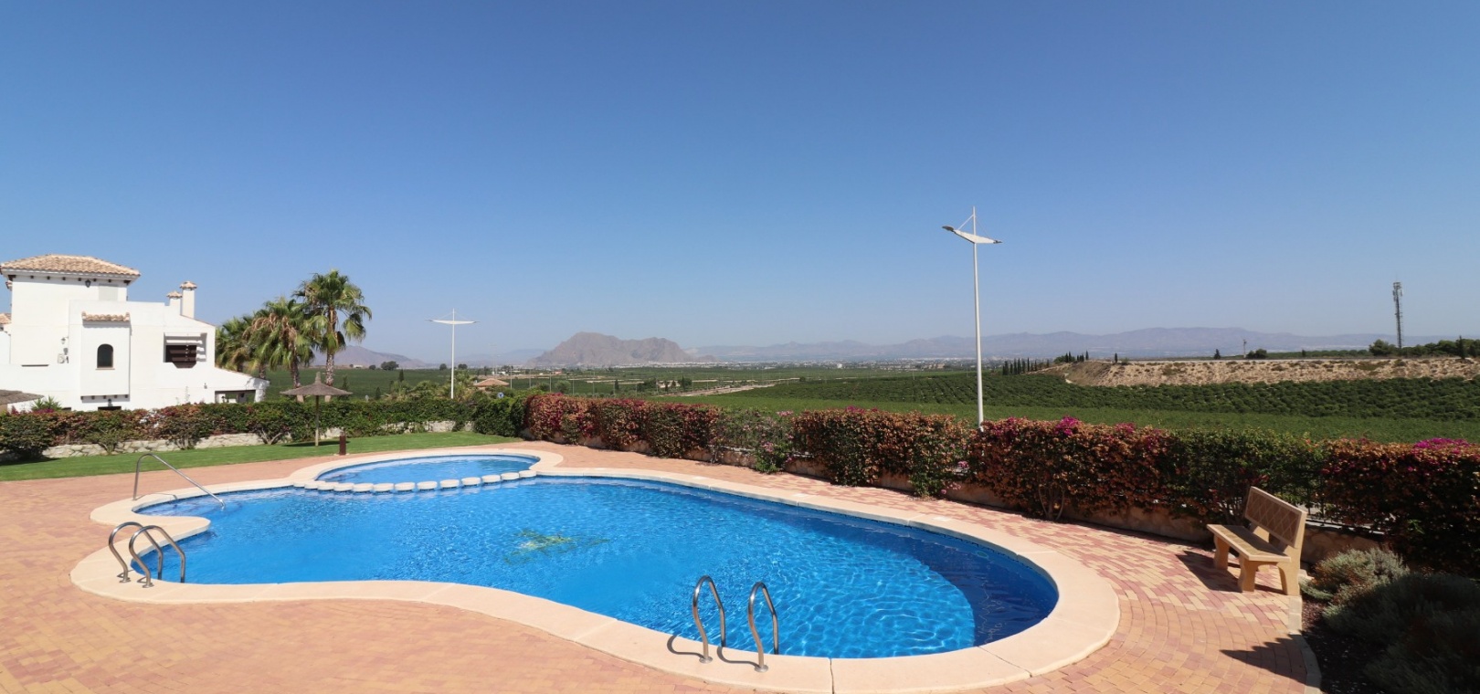 This Corner, East Facing, Two Bedroom, Ground Floor Apartment in La Finca Golf Resort is located in Algorfa, Costa Blanca, offering an ideal blend of comfort and convenience. Situated within a gated community, this property boasts a thoughtfully designed layout featuring two bedrooms and two shower rooms, ensuring ample space for relaxation and privacy. Upon entering, you are greeted by an inviting ambiance complemented by air conditioning throughout, ensuring year-round comfort. Fitted wardrobes provide convenient storage solutions, while grills offer added security. The property features one updated bathroom from its original design, showcasing modern amenities and style. The lovely living space includes a fireplace, creating a warm and inviting atmosphere, perfect for gatherings or quiet evenings in. An American-style kitchen adds to the contemporary charm of the home, providing functionality and style. Spanning 72 square meters, the apartment offers comfortable living spaces, further enhanced by an 8 square meter terrace, ideal for enjoying the Mediterranean climate and soaking up the sun. Additionally, a 75 square meter private artificial grass garden offers a tranquil outdoor retreat, complete with some slight golf views, providing a serene backdrop for relaxation. Residents of this community can enjoy access to a communal swimming pool located just 50 meters away, perfect for cooling off on hot summer days. The surrounding area boasts panoramic citrus grove and mountain views, adding to the natural beauty and charm of the location. Convenient gated community parking ensures hassle-free arrivals and departures, while the proximity to La Finca Golf Resort and its amenities adds to the appeal of this exceptional property. Whether you seek a permanent residence or a holiday retreat, this apartment offers a delightful blend of comfort, style, and convenience in a sought-after Costa Blanca location.