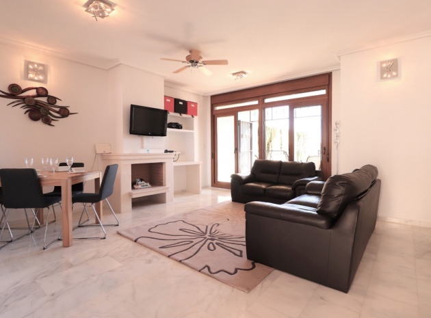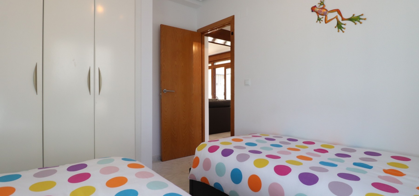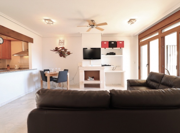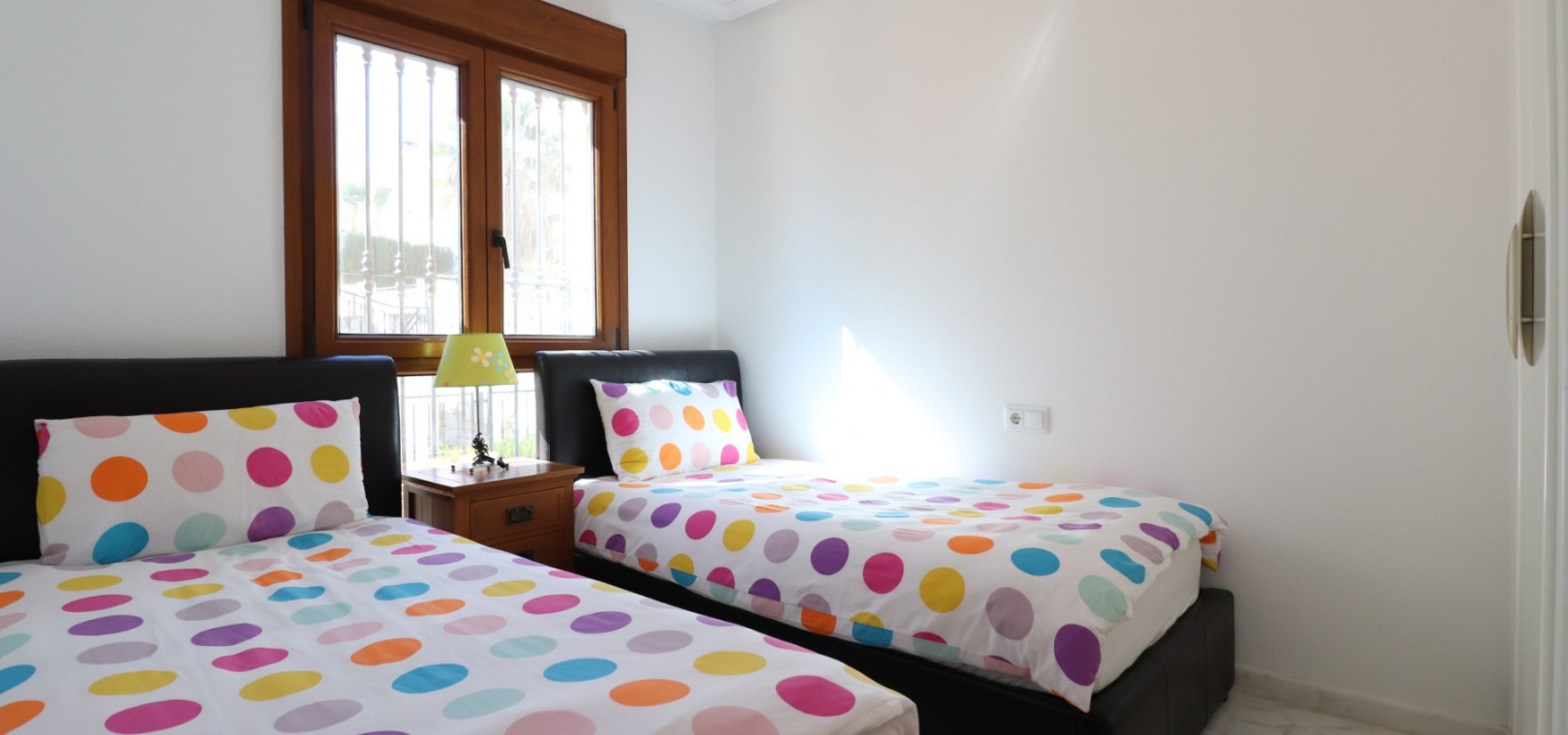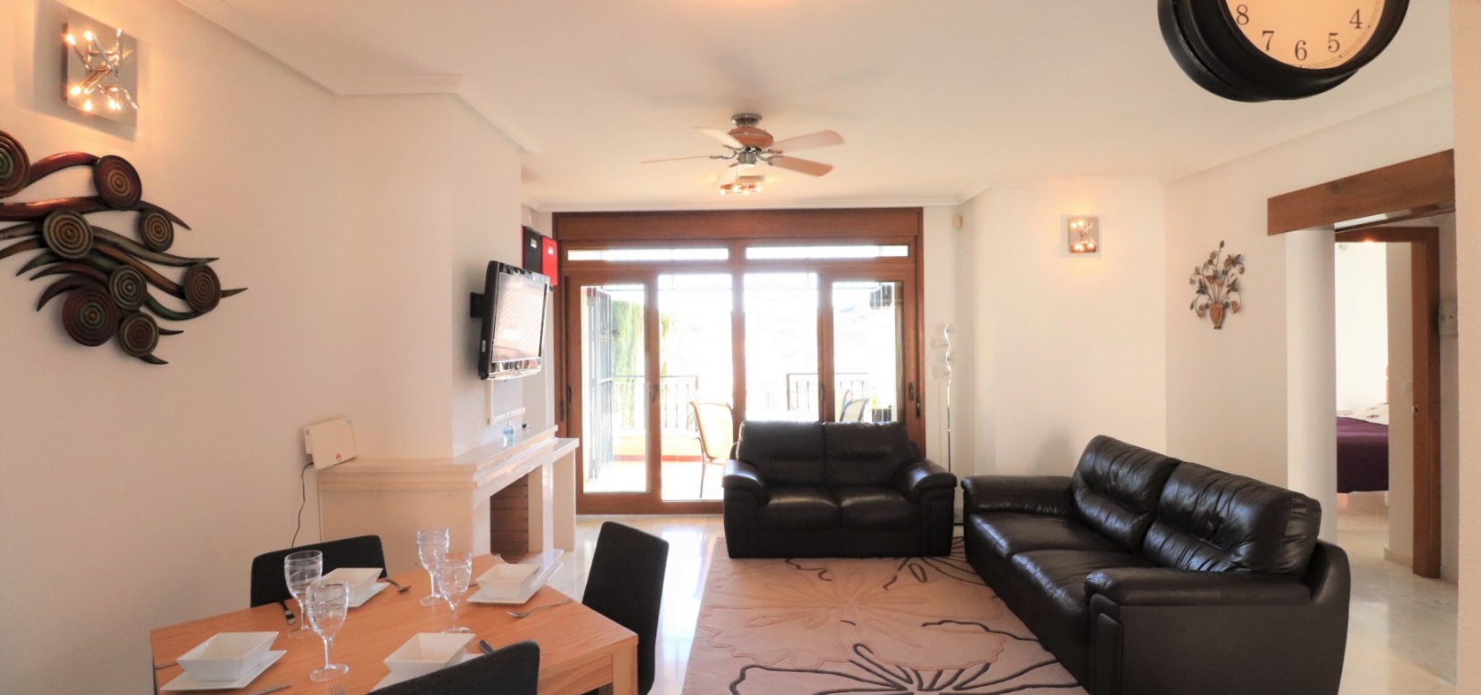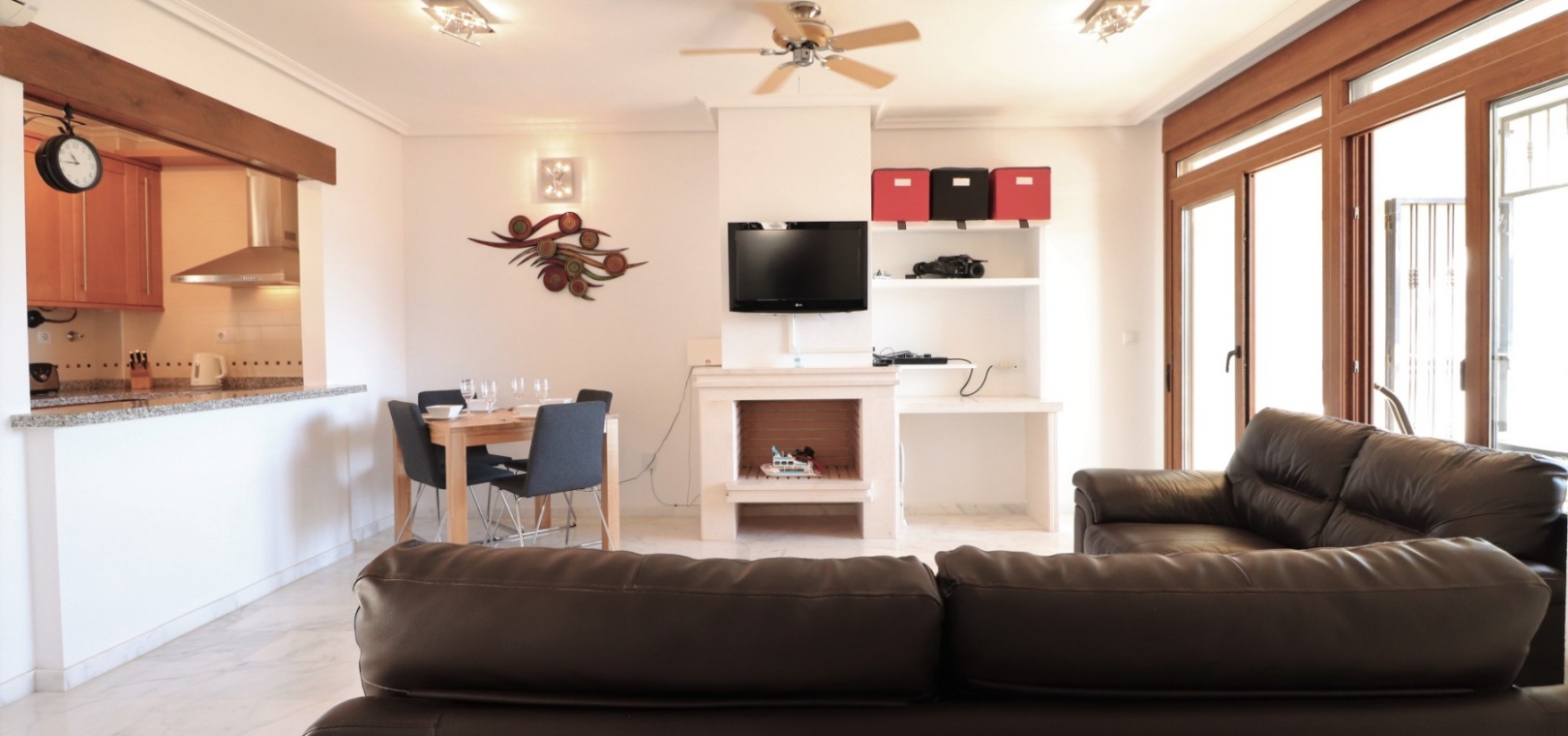 This Corner, East Facing, Two Bedroom, Ground Floor Apartment in La Finca Golf Resort is located in Algorfa, Costa Blanca, offering an ideal blend of comfort and convenience. Situated within a gated community, this property boasts a thoughtfully designed layout featuring two bedrooms and two shower rooms, ensuring ample space for relaxation and privacy. Upon entering, you are greeted by an inviting ambiance complemented by air conditioning throughout, ensuring year-round comfort. Fitted wardrobes provide convenient storage solutions, while grills offer added security. The property features one updated bathroom from its original design, showcasing modern amenities and style. The lovely living space includes a fireplace, creating a warm and inviting atmosphere, perfect for gatherings or quiet evenings in. An American-style kitchen adds to the contemporary charm of the home, providing functionality and style. Spanning 72 square meters, the apartment offers comfortable living spaces, further enhanced by an 8 square meter terrace, ideal for enjoying the Mediterranean climate and soaking up the sun. Additionally, a 75 square meter private artificial grass garden offers a tranquil outdoor retreat, complete with some slight golf views, providing a serene backdrop for relaxation. Residents of this community can enjoy access to a communal swimming pool located just 50 meters away, perfect for cooling off on hot summer days. The surrounding area boasts panoramic citrus grove and mountain views, adding to the natural beauty and charm of the location. Convenient gated community parking ensures hassle-free arrivals and departures, while the proximity to La Finca Golf Resort and its amenities adds to the appeal of this exceptional property. Whether you seek a permanent residence or a holiday retreat, this apartment offers a delightful blend of comfort, style, and convenience in a sought-after Costa Blanca location.
