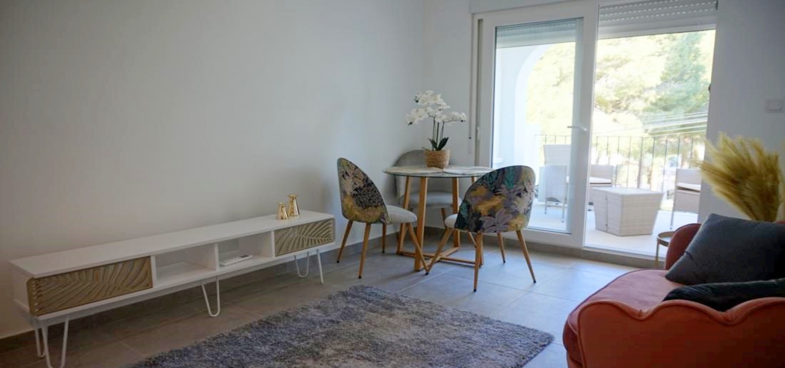 Lounge/diner with hot and cold A/C, open plan newly fitted kitchen, 1 x double bedroom, 1 x newly fitted shower room, balcony off the lounge with views over the communal gardens & much much more.