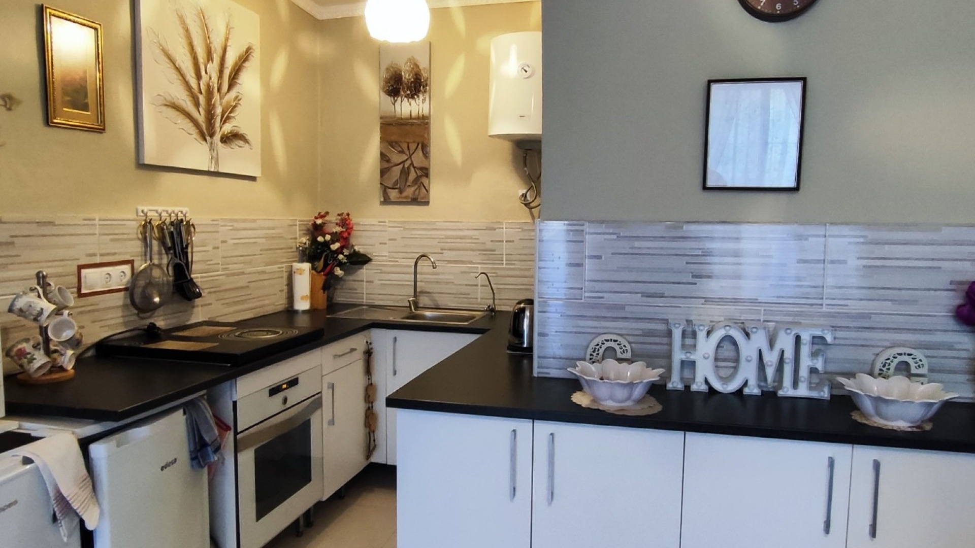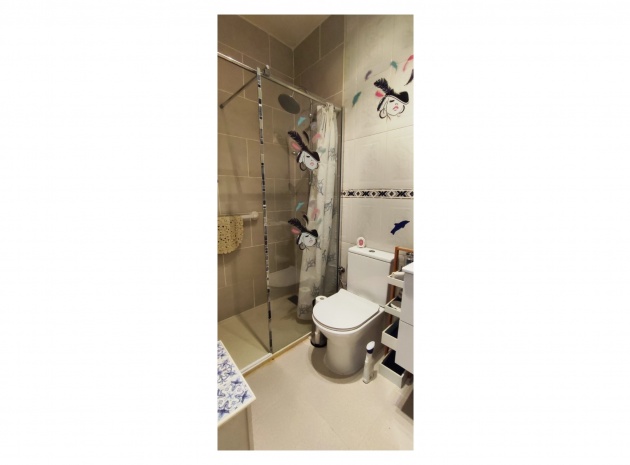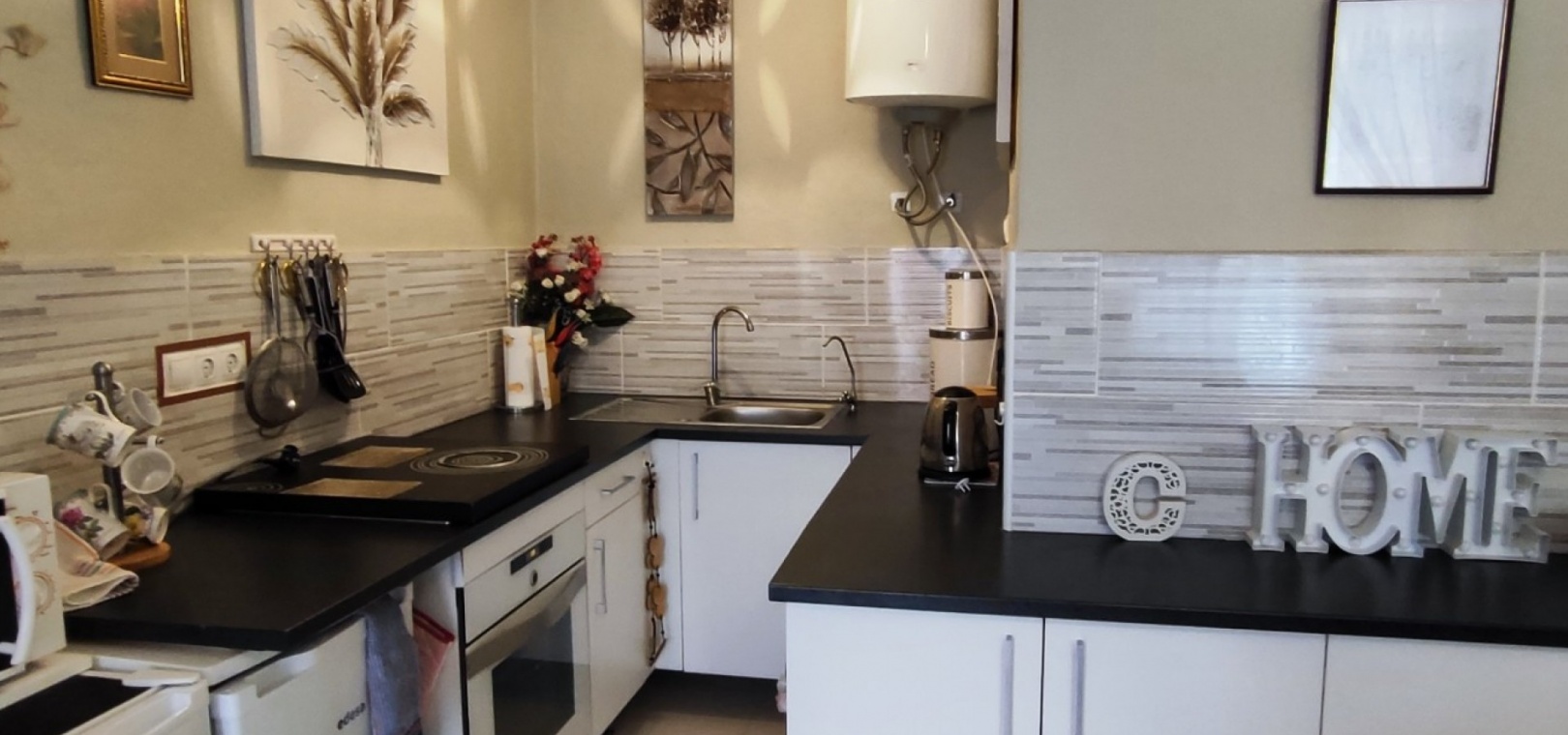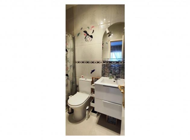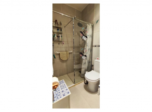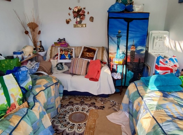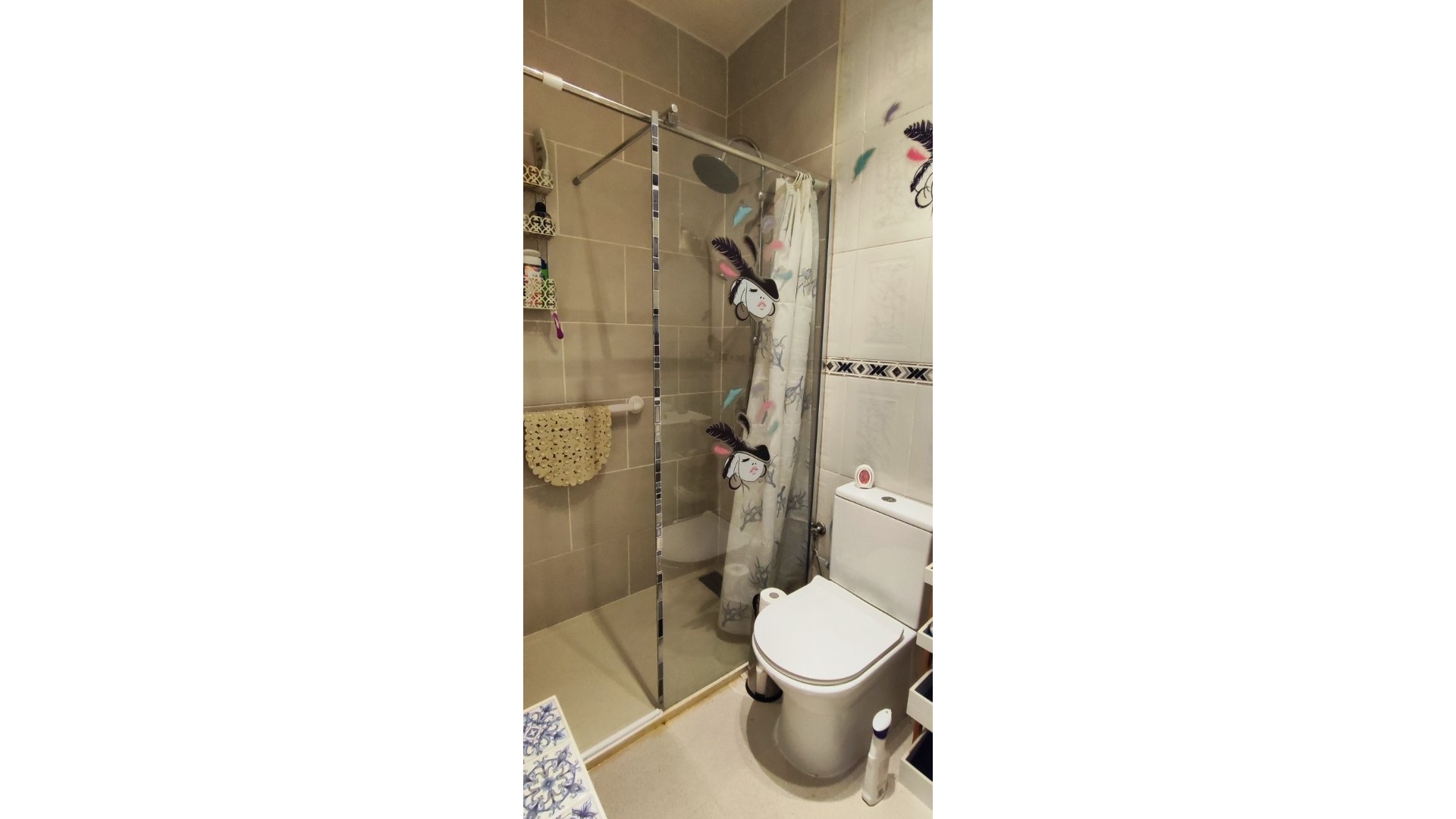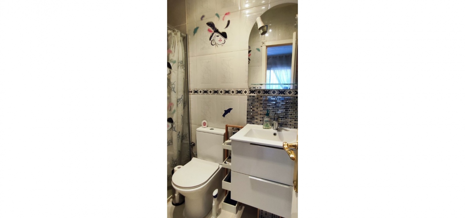 We are happy to introduce this quad style one level villa located close to Las Ramblas golf course on the Orihuela Costa, South Costa Blanca. Situated just 45 minutes drive to both Alicante or Murcia airport and within walking distance to a local supermarket, bars and restaurants and only a short drive or cycle to the beaches of Cabo Roig and Dehesa de Campomor.The property is found within the community so there is no direct car access but street parking is just 2 properties away. There are a few steps beyond the main entrance gate that lead you up onto the flat plot where we find a patio area with outside seating and a garden mainly laid to gravel with a selection of Mediterranean plants bordering the plot. Inside we find an open plan living room with a fitted modern kitchen. There are 2 double bedrooms, one larger master bedroom with ample wardrobe space and a twin room with small storage cupboard. The bathroom has been changed to have a walking shower, vanity unit and W.C.There is a 3rd bedroom/storage room on the roof that is accessed via a spiral staircase, this room currently has 2 single beds and a sofa as well as the washing machine so it would be possible to add a small shower room here for guests as there is already plumbing. The solarium is a great area for sunbathing, the floor has recently been resealed and thee is also a large storage cupboard. Within the garden area there is a brick built shed/tool room. The property will be sold furnished.