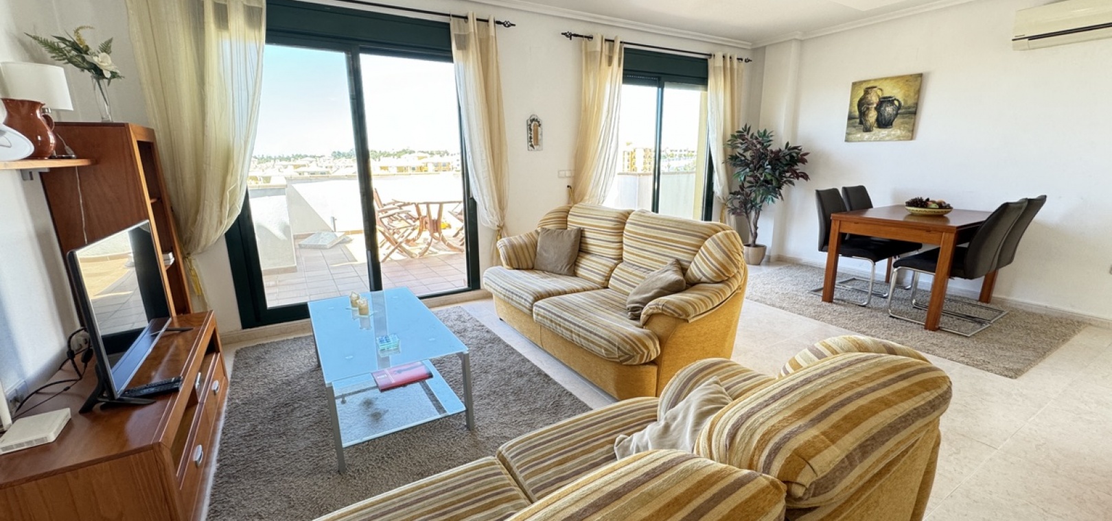 A 2 bed 2 bath top floor apartment located in Lomas de Campoamor, Campoamor Golf Course, Costa Blanca.