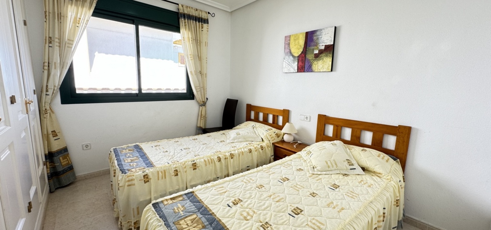 This property is located just a short walk from the La Fuente commercial centre where you will find numerous bars, shops, restaurant, supermarket & the local bus stop. The golden beaches of Campoamor & Cabo Roig are just a few minutes drive away as are 3 further golf courses. Alicante airport is 55 minutes drive away.
