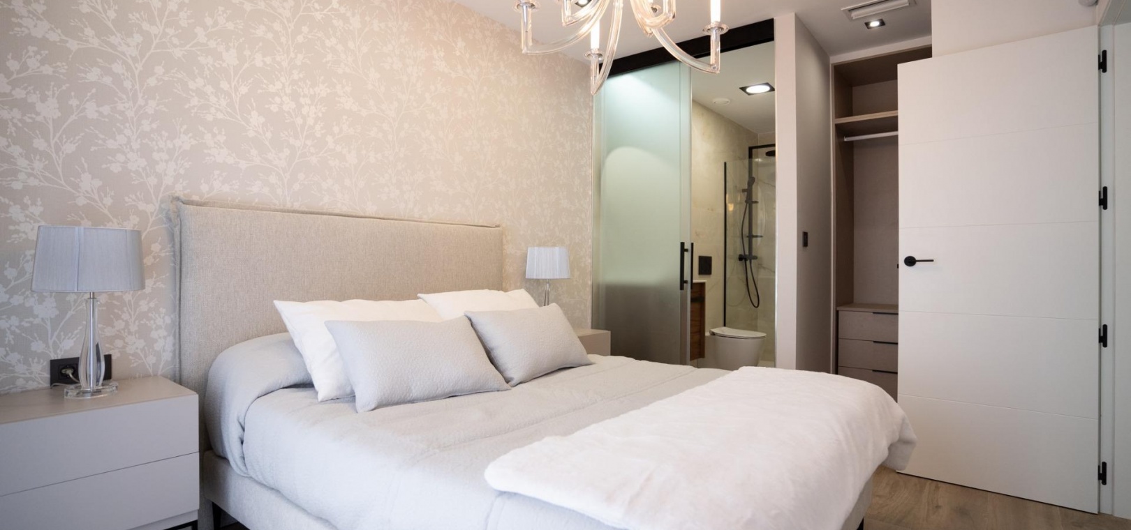 The penthouse apartment offers a modern and elegant living space, with a lounge that opens onto a terrace, creating a seamless indoor-outdoor flow. The open-plan kitchen and dining area are perfect for entertaining, while the master bedroom with an en-suite bathroom and fitted wardrobes, along with a second double bedroom and guest bathroom, provide comfort and convenience.