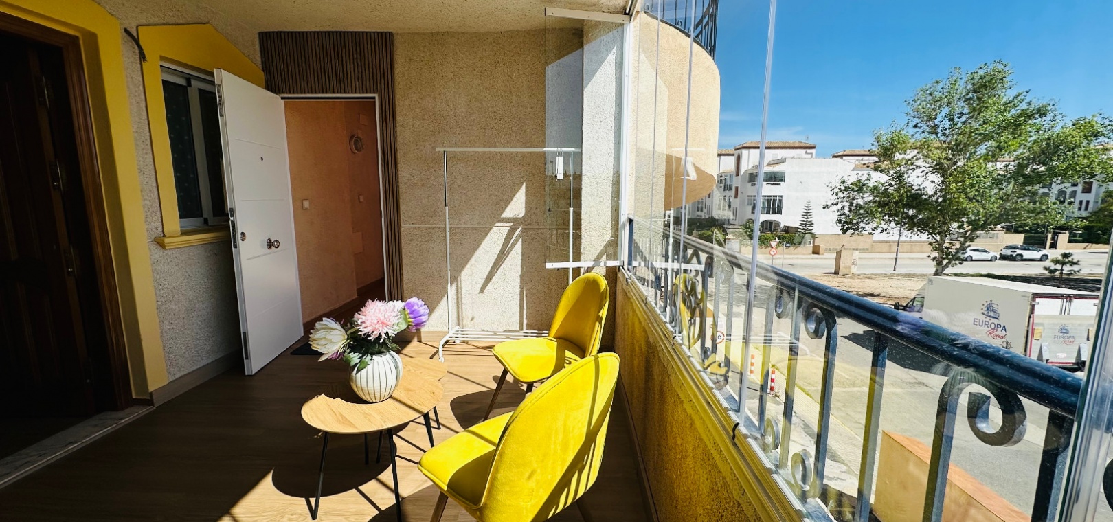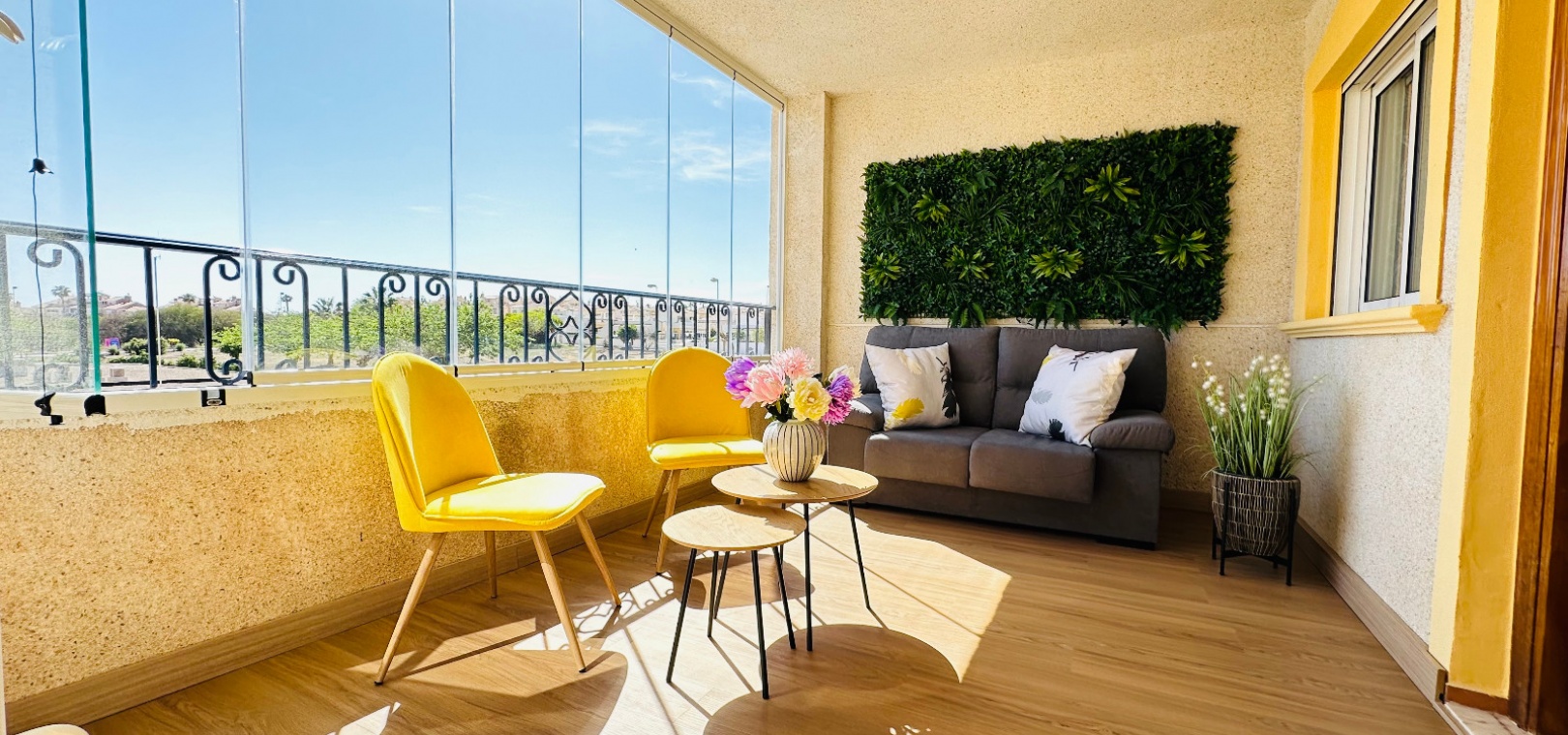 Lounge / diner with hot and cold A/C, a newly fitted independent kitchen with a separate utility room, 2 x double bedrooms both with fitted wardrobes, 1 x newly fitted shower room, large glazed in balcony, communal swimming pool, communal off road parking & much, much more.