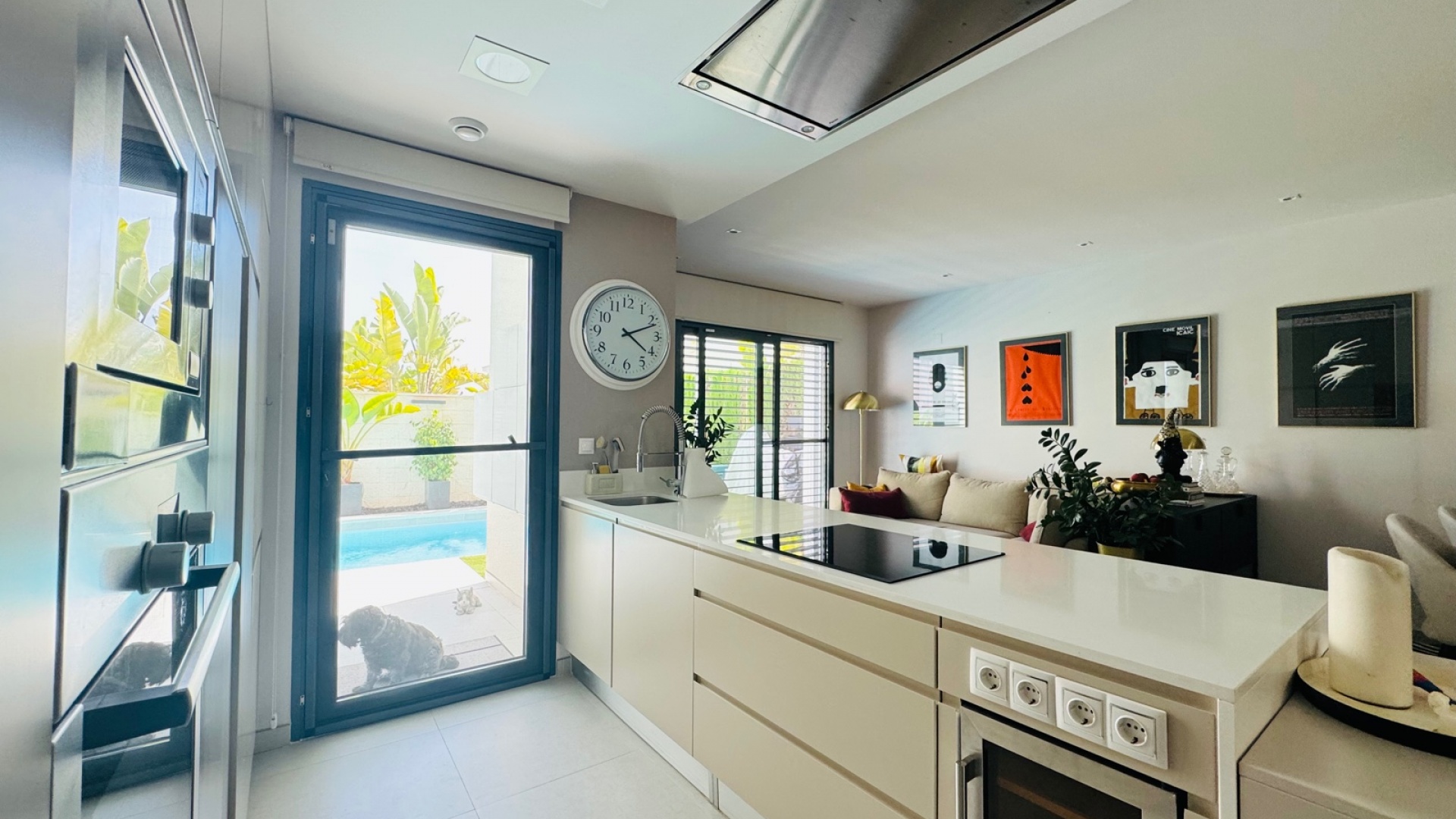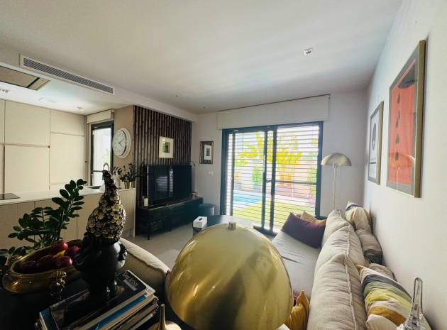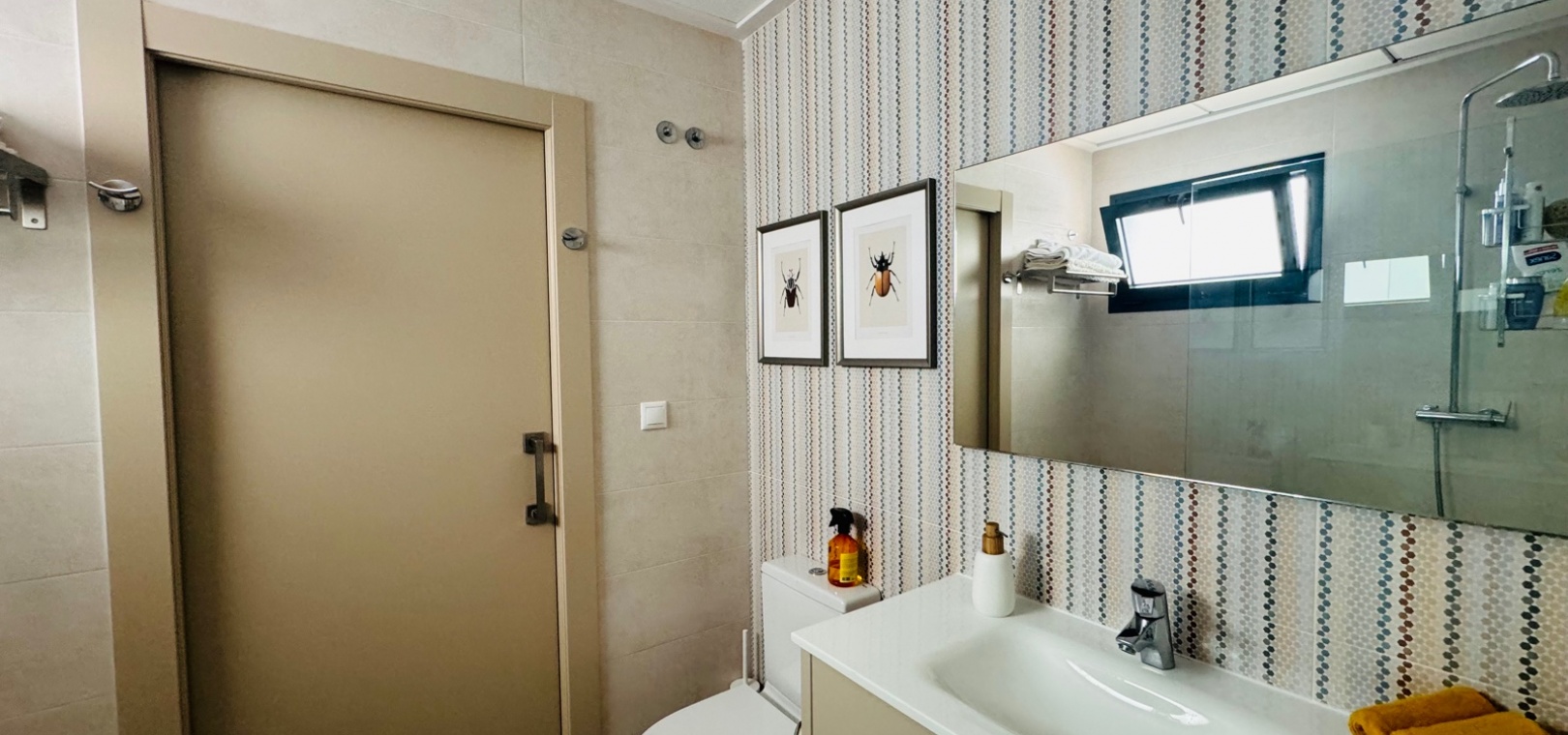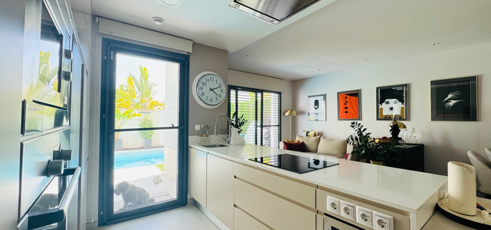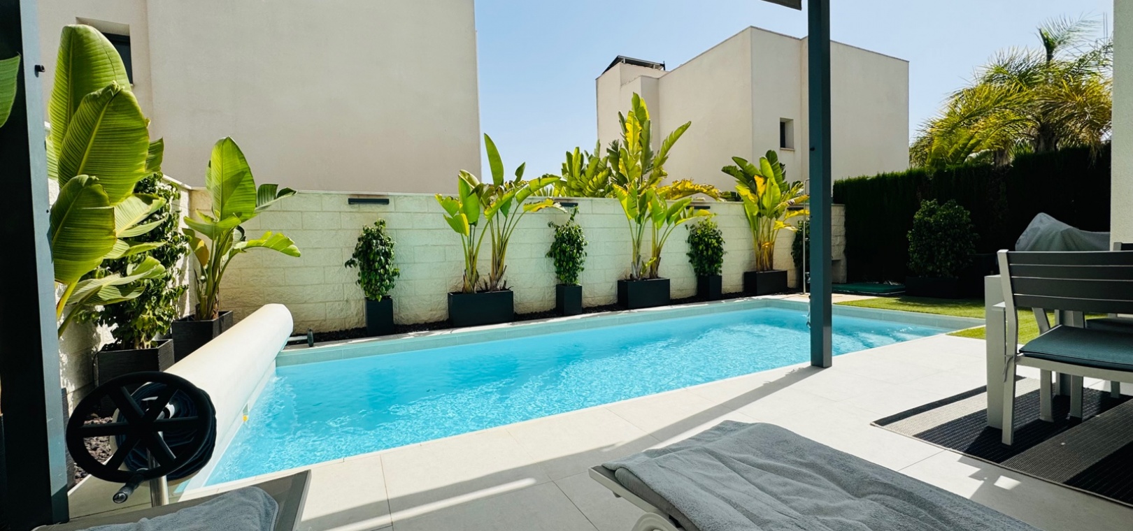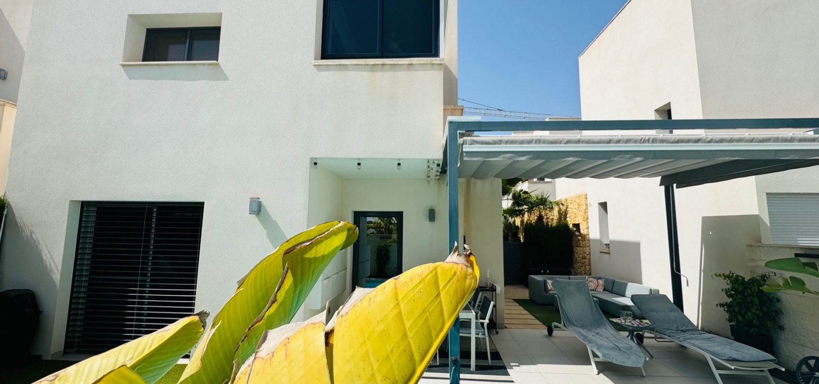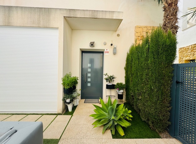 We are pleased to introduce this contemporary home that offers a spacious and bright living room with direct access to the garden and pool area. The open-plan kitchen is fully equipped with modern appliances and high-quality finishes. Both bedrooms are generously sized and come with built-in wardrobes, while the two stylish bathrooms are fitted with modern fixtures and walk-in showers.The outdoor space is perfect for relaxation and entertainment, featuring a beautifully landscaped garden, a heated pool, and ample space for lounging and al fresco dining. The property also includes a private parking spot for your convenience. Situated in the peaceful and desirable Pueblo Bravo area, this home offers both tranquility and easy access to local amenities and the vibrant center of Ciudad Quesada.