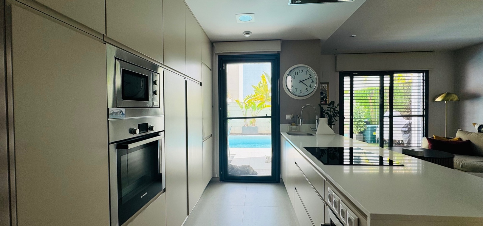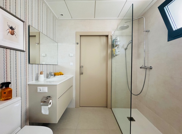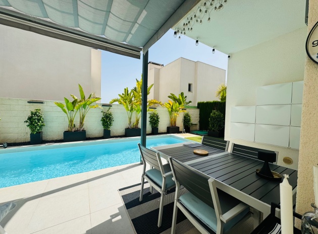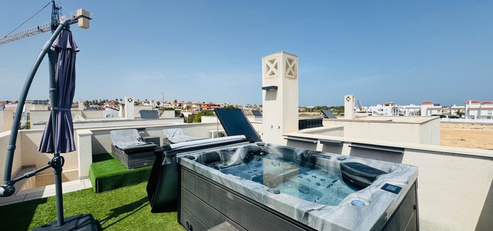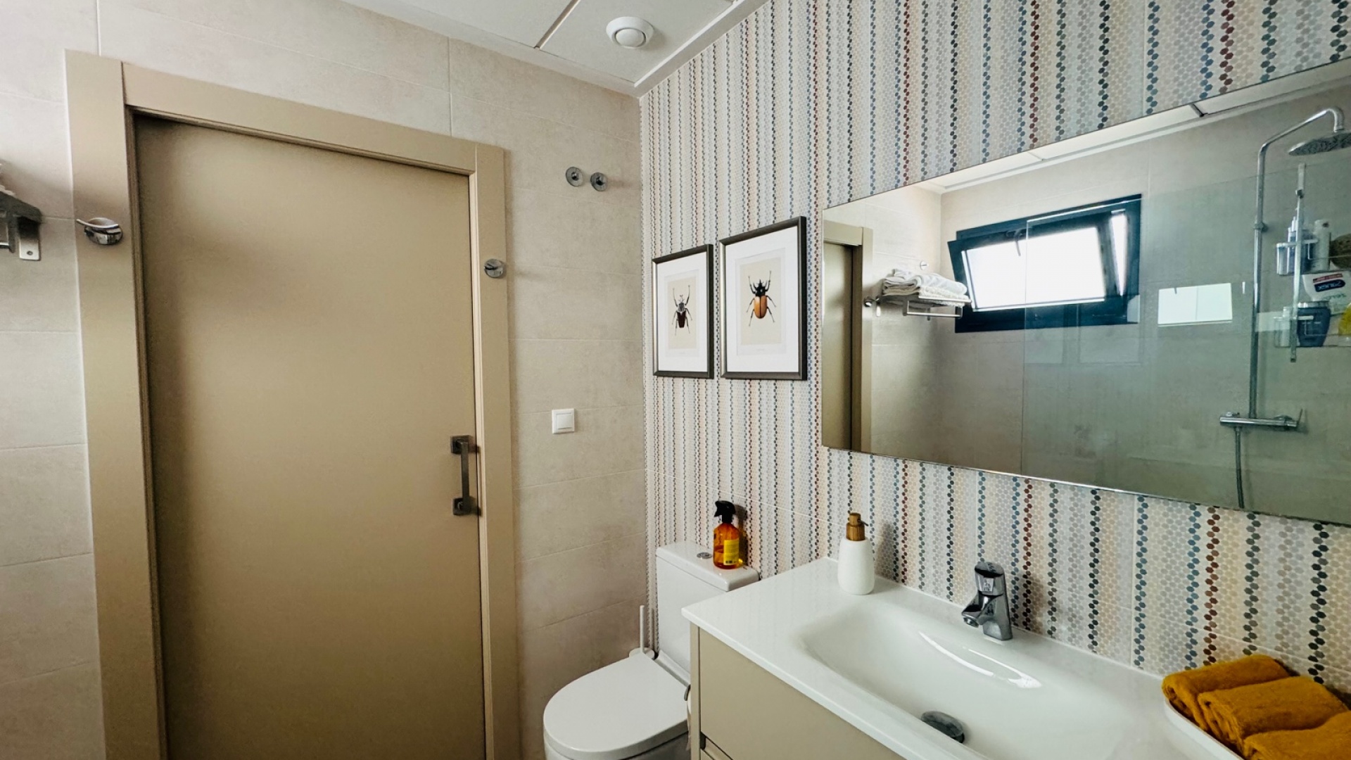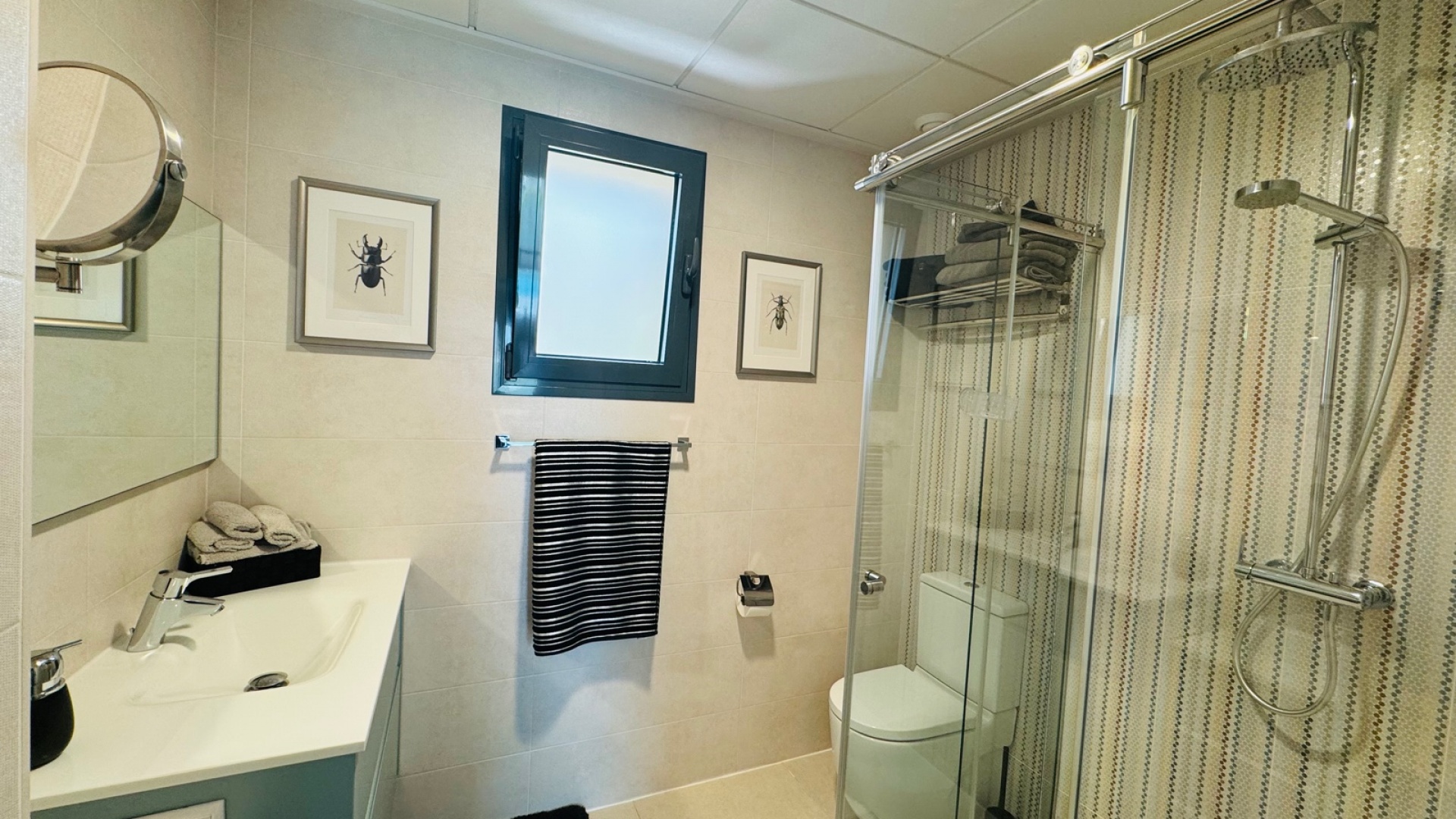 We are pleased to introduce this contemporary home that offers a spacious and bright living room with direct access to the garden and pool area. The open-plan kitchen is fully equipped with modern appliances and high-quality finishes. Both bedrooms are generously sized and come with built-in wardrobes, while the two stylish bathrooms are fitted with modern fixtures and walk-in showers.The outdoor space is perfect for relaxation and entertainment, featuring a beautifully landscaped garden, a heated pool, and ample space for lounging and al fresco dining. The property also includes a private parking spot for your convenience. Situated in the peaceful and desirable Pueblo Bravo area, this home offers both tranquility and easy access to local amenities and the vibrant center of Ciudad Quesada.