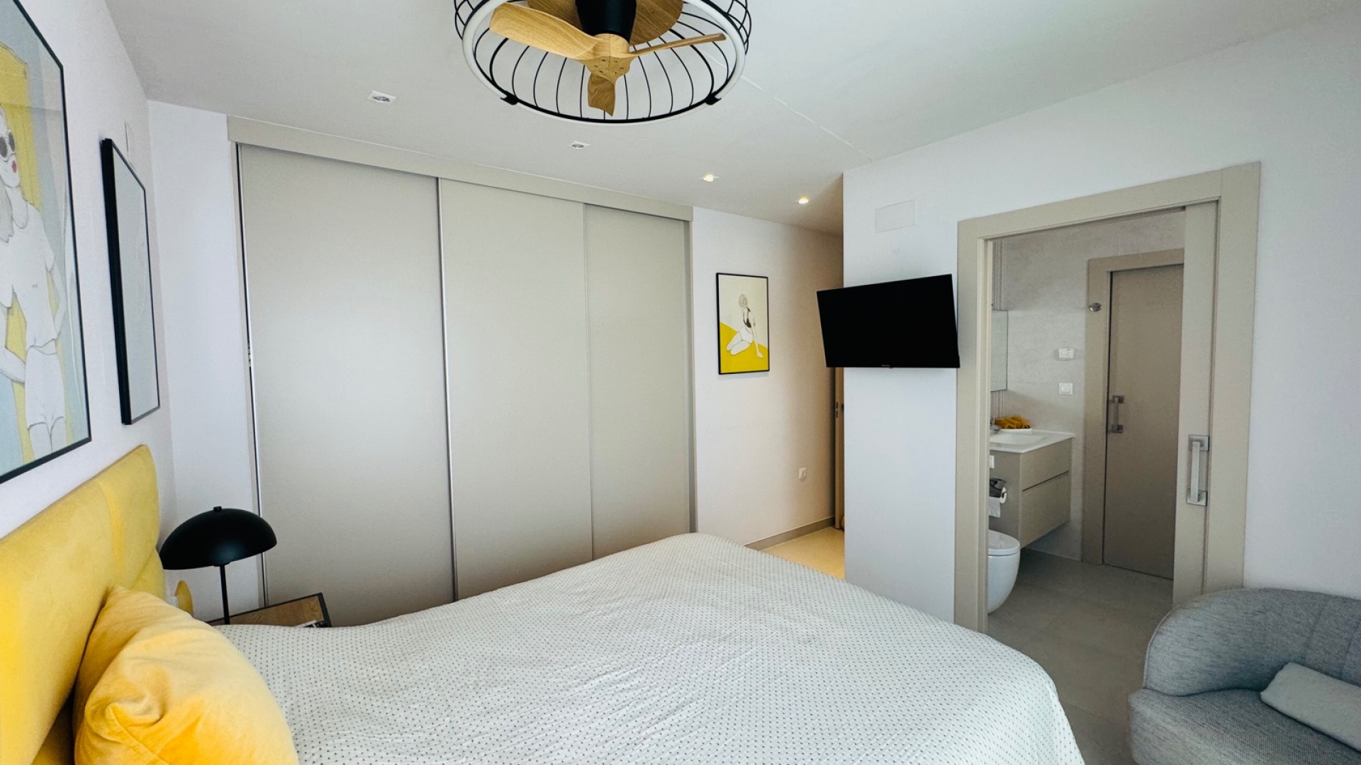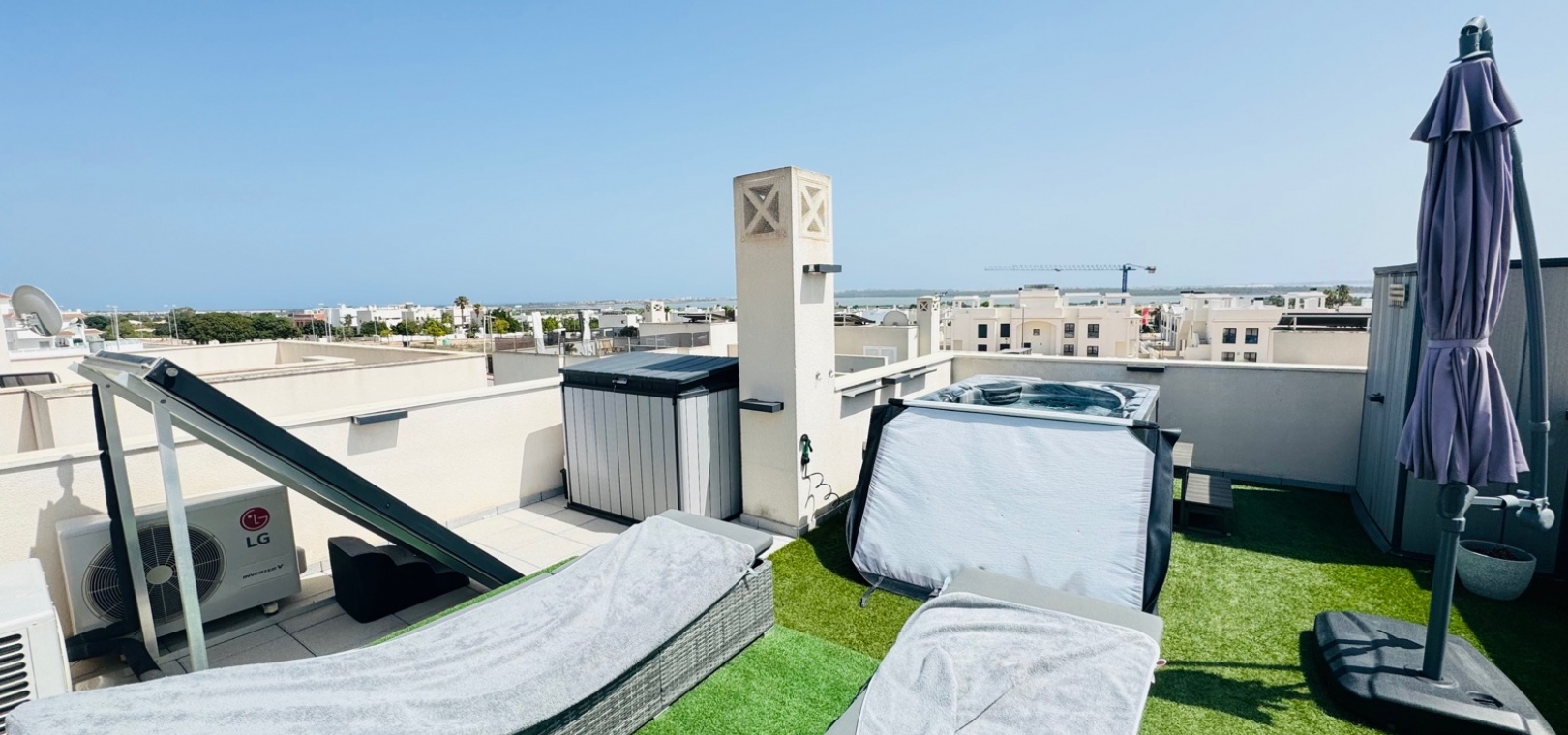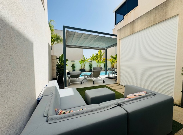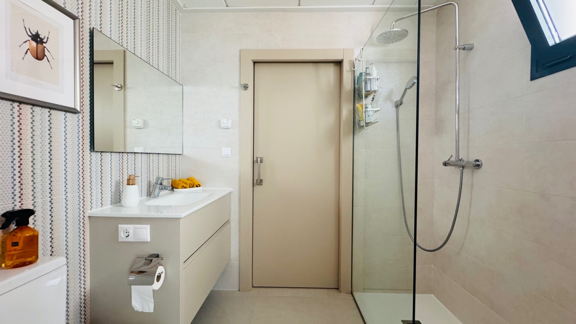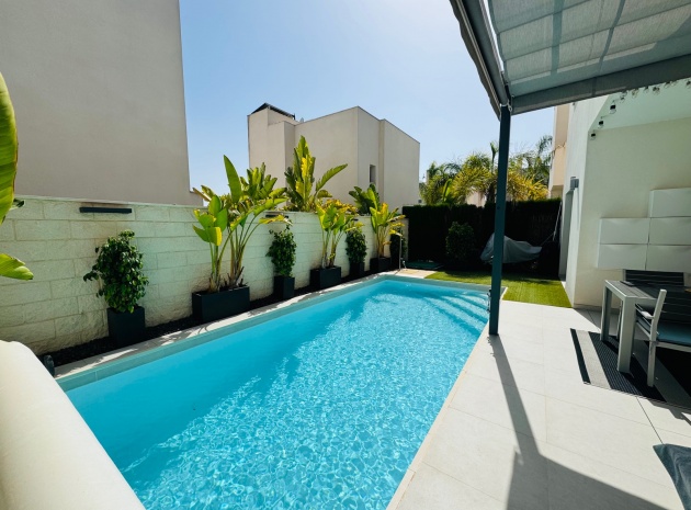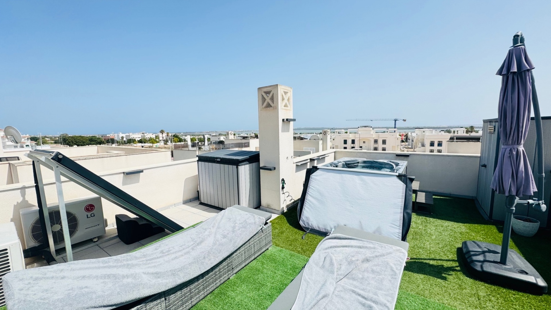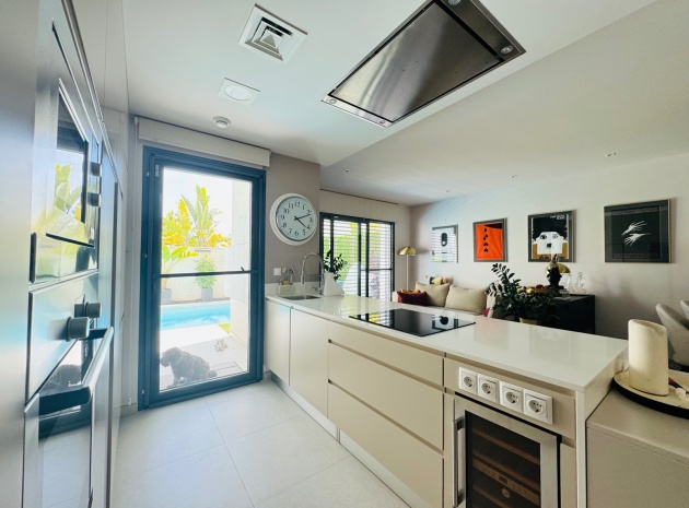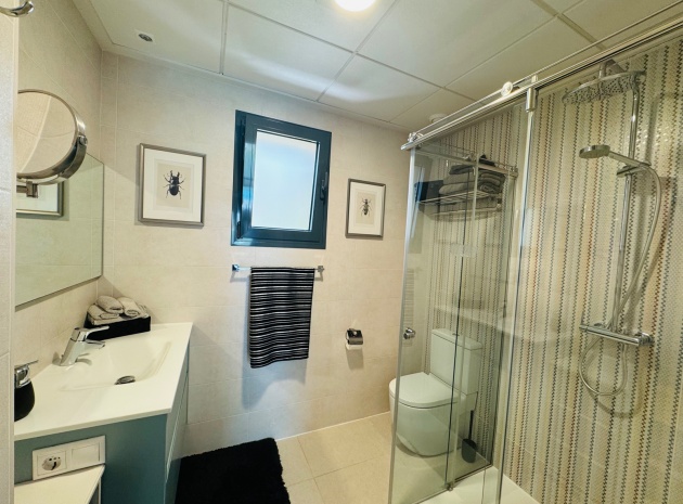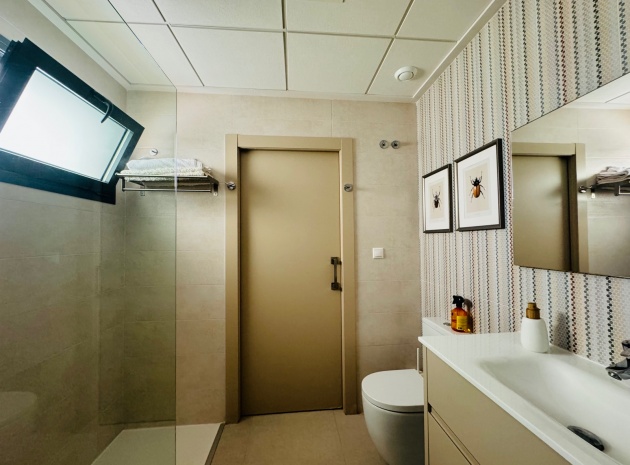 We are pleased to introduce this contemporary home that offers a spacious and bright living room with direct access to the garden and pool area. The open-plan kitchen is fully equipped with modern appliances and high-quality finishes. Both bedrooms are generously sized and come with built-in wardrobes, while the two stylish bathrooms are fitted with modern fixtures and walk-in showers.The outdoor space is perfect for relaxation and entertainment, featuring a beautifully landscaped garden, a heated pool, and ample space for lounging and al fresco dining. The property also includes a private parking spot for your convenience. Situated in the peaceful and desirable Pueblo Bravo area, this home offers both tranquility and easy access to local amenities and the vibrant center of Ciudad Quesada.