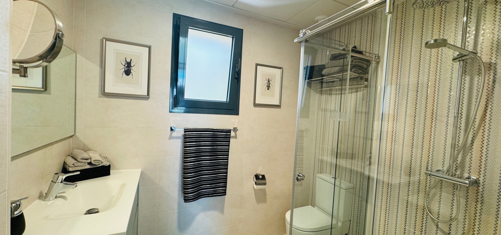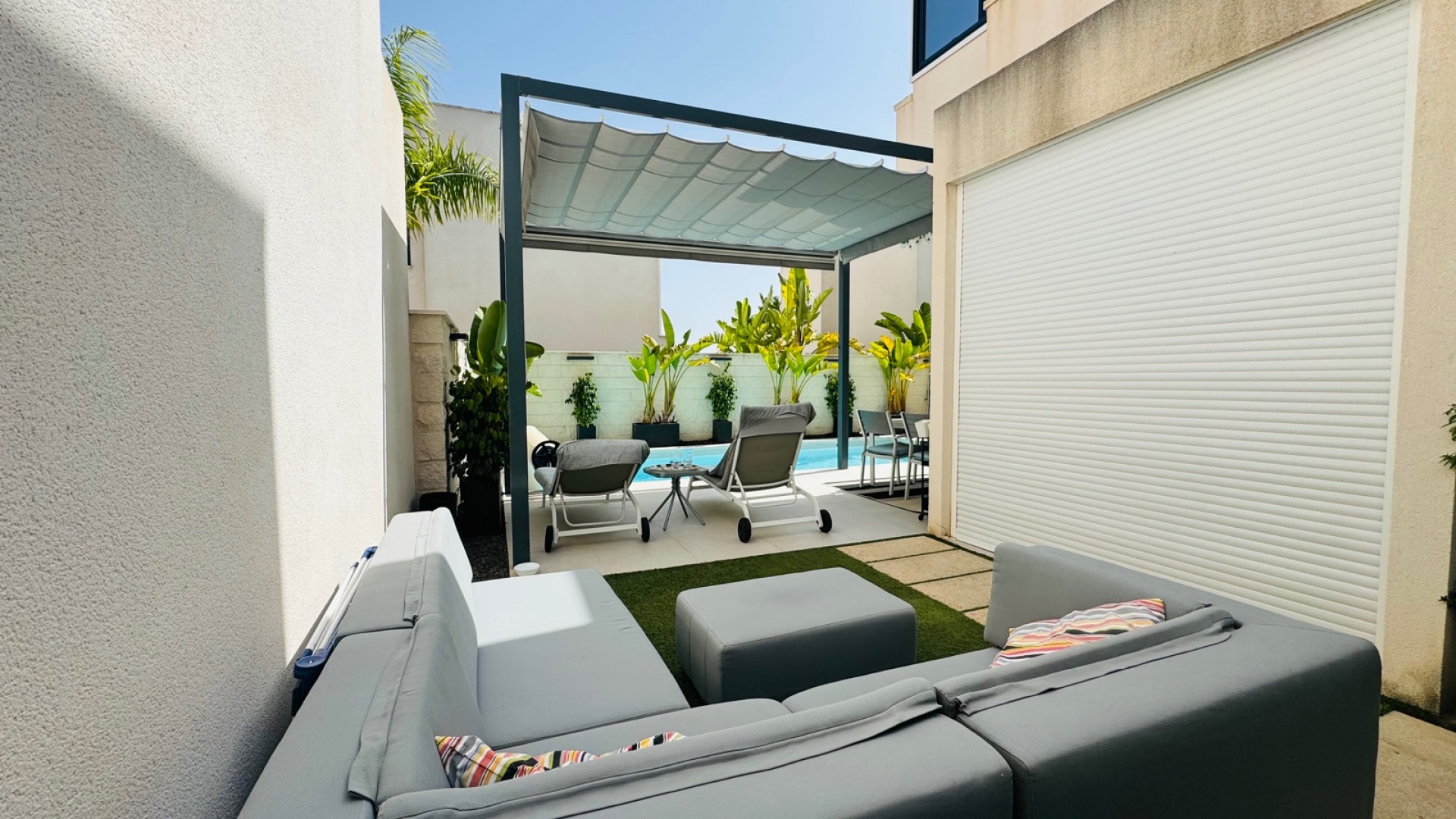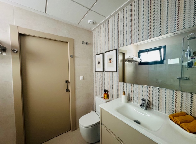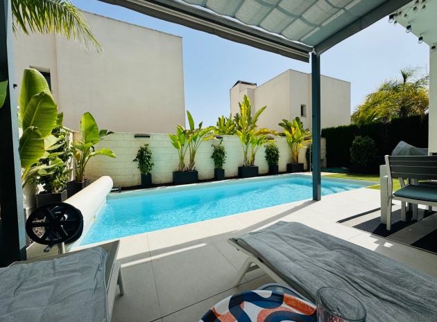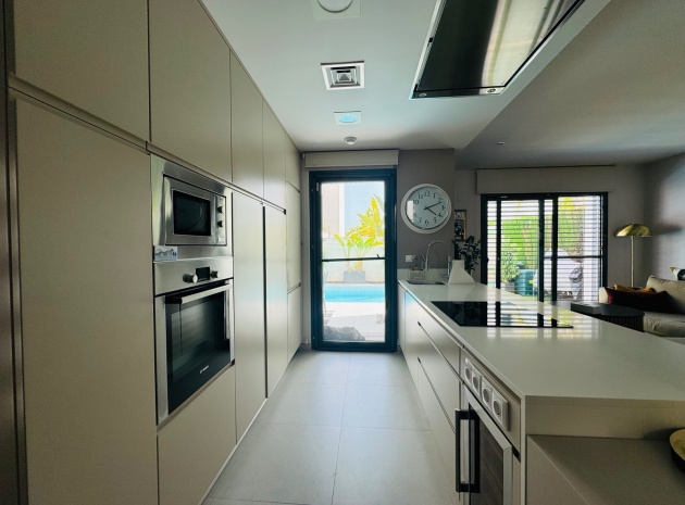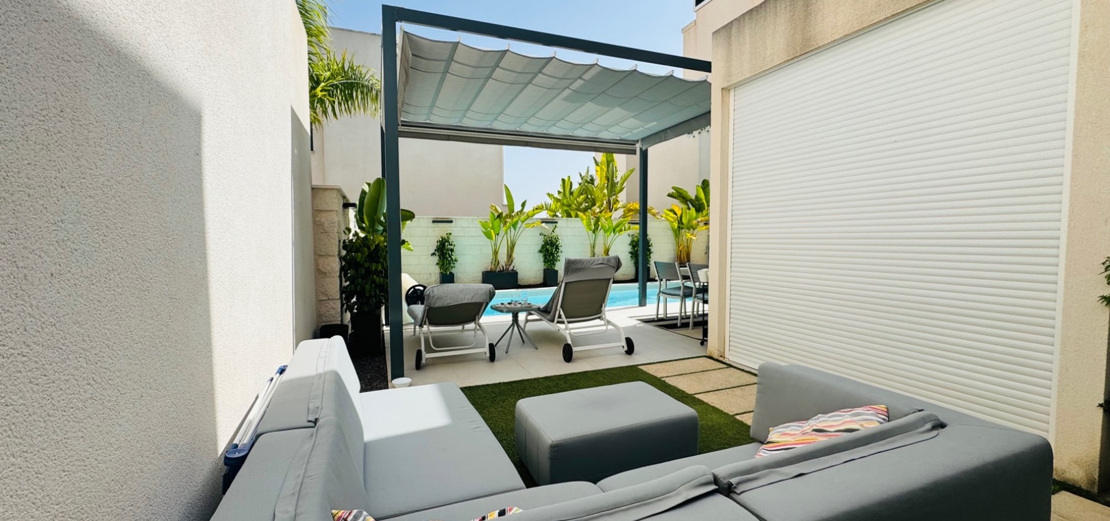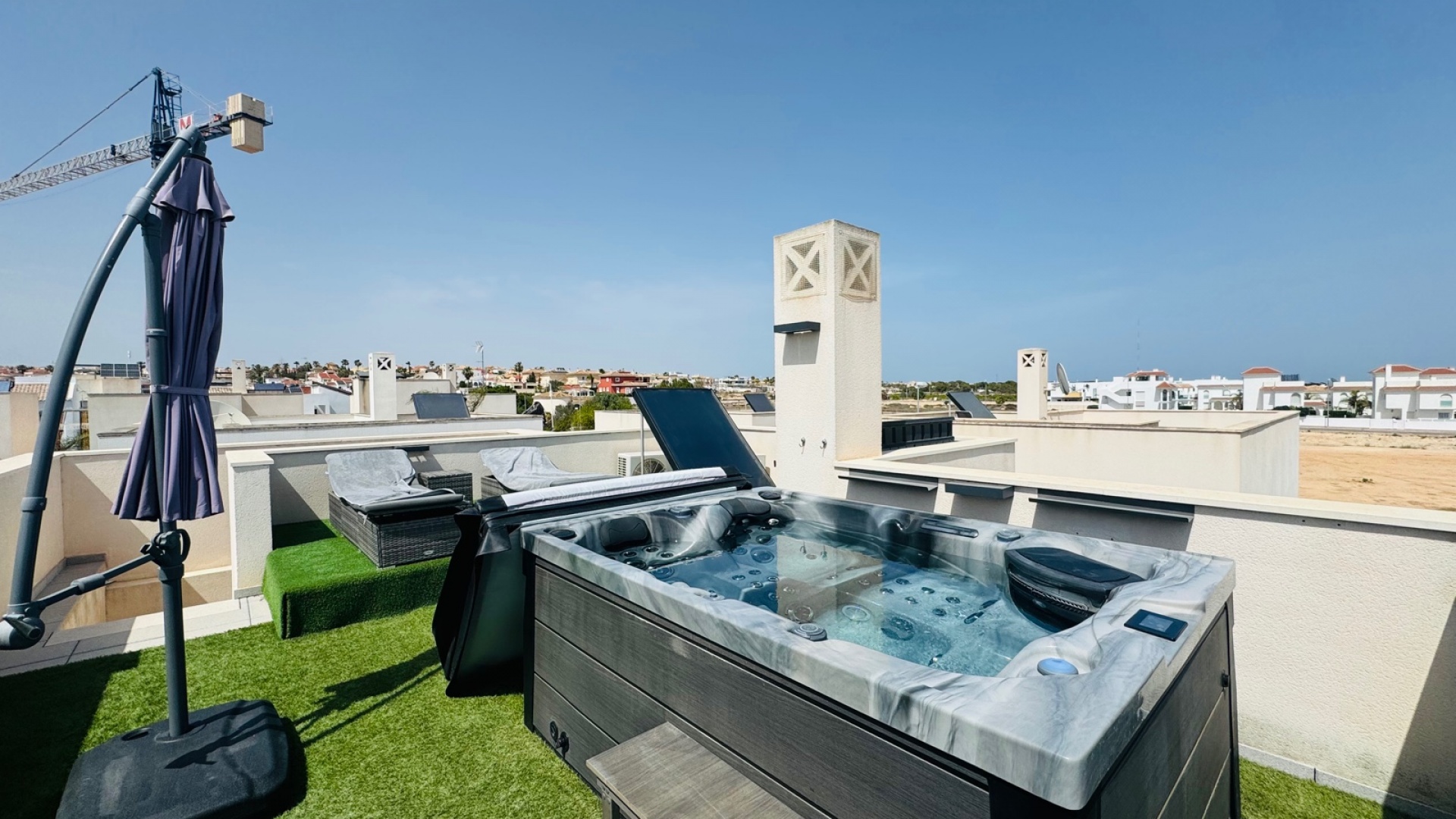 We are pleased to introduce this contemporary home that offers a spacious and bright living room with direct access to the garden and pool area. The open-plan kitchen is fully equipped with modern appliances and high-quality finishes. Both bedrooms are generously sized and come with built-in wardrobes, while the two stylish bathrooms are fitted with modern fixtures and walk-in showers.The outdoor space is perfect for relaxation and entertainment, featuring a beautifully landscaped garden, a heated pool, and ample space for lounging and al fresco dining. The property also includes a private parking spot for your convenience. Situated in the peaceful and desirable Pueblo Bravo area, this home offers both tranquility and easy access to local amenities and the vibrant center of Ciudad Quesada.