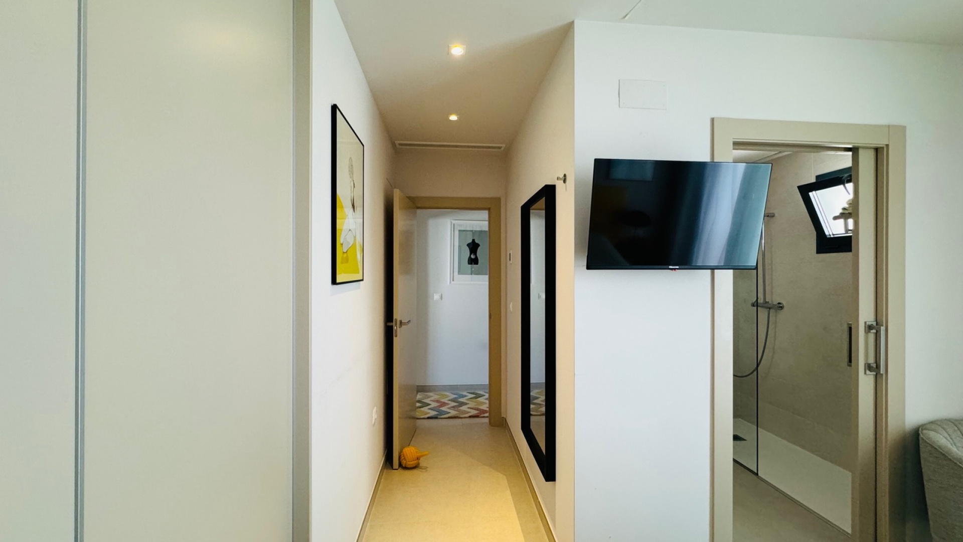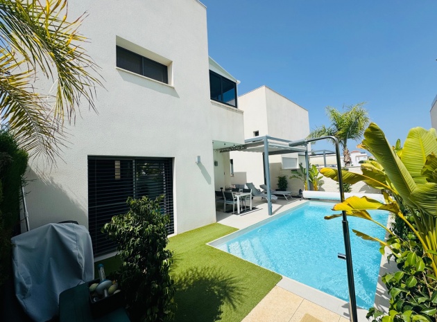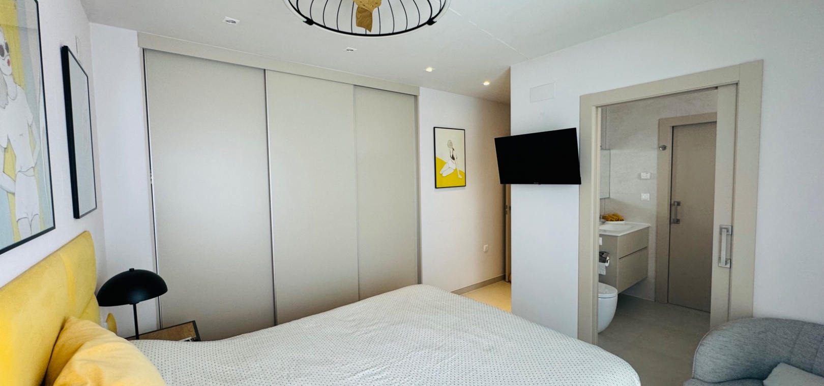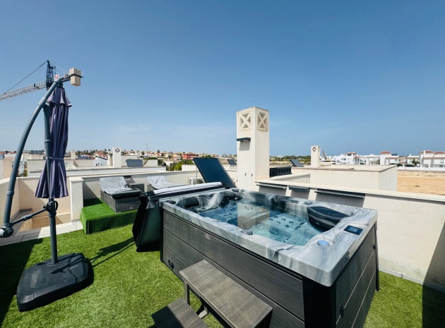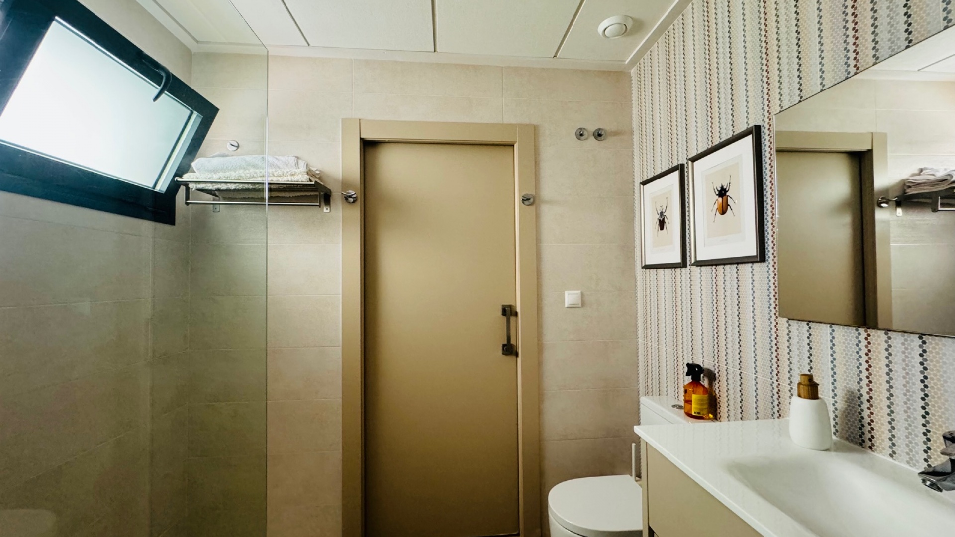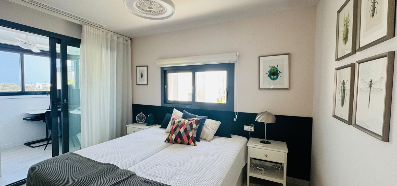 We are pleased to introduce this contemporary home that offers a spacious and bright living room with direct access to the garden and pool area. The open-plan kitchen is fully equipped with modern appliances and high-quality finishes. Both bedrooms are generously sized and come with built-in wardrobes, while the two stylish bathrooms are fitted with modern fixtures and walk-in showers.The outdoor space is perfect for relaxation and entertainment, featuring a beautifully landscaped garden, a heated pool, and ample space for lounging and al fresco dining. The property also includes a private parking spot for your convenience. Situated in the peaceful and desirable Pueblo Bravo area, this home offers both tranquility and easy access to local amenities and the vibrant center of Ciudad Quesada.