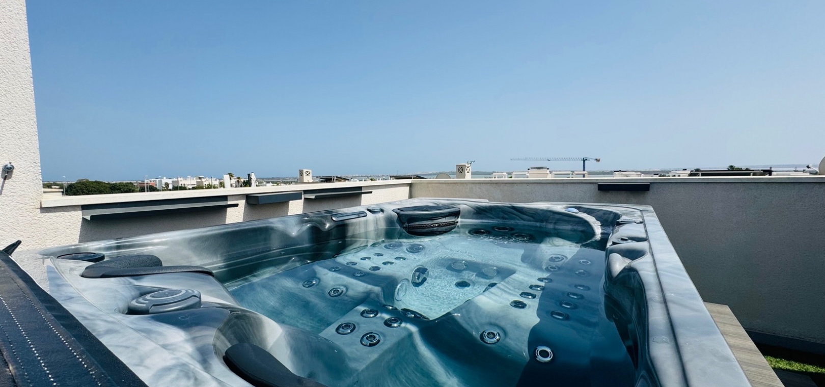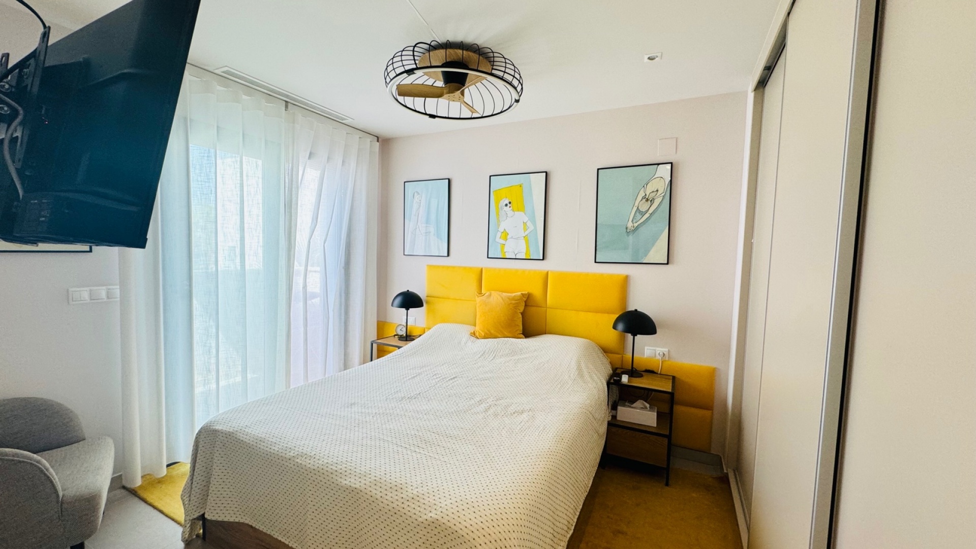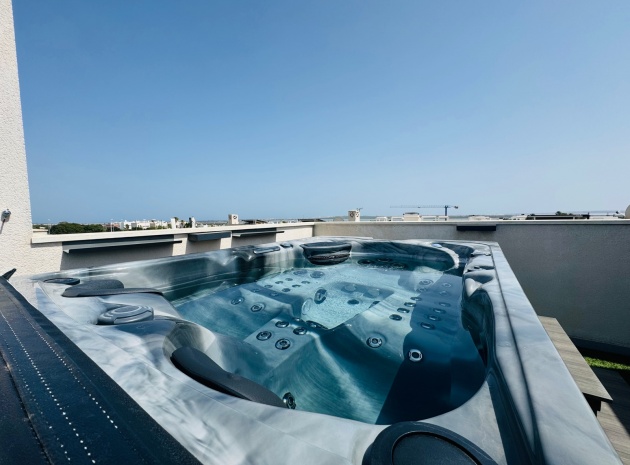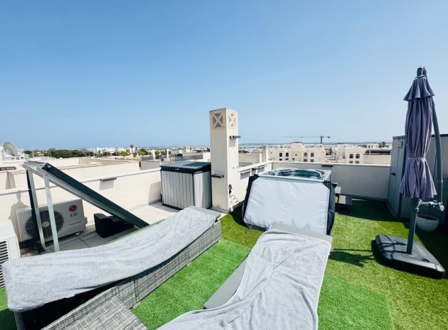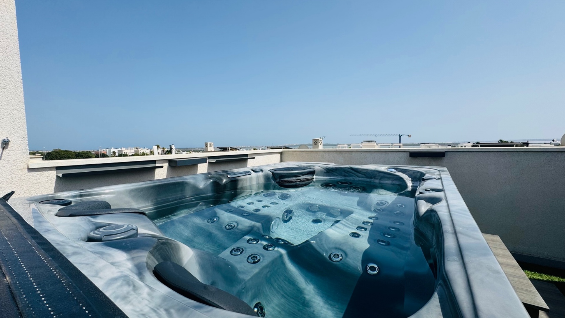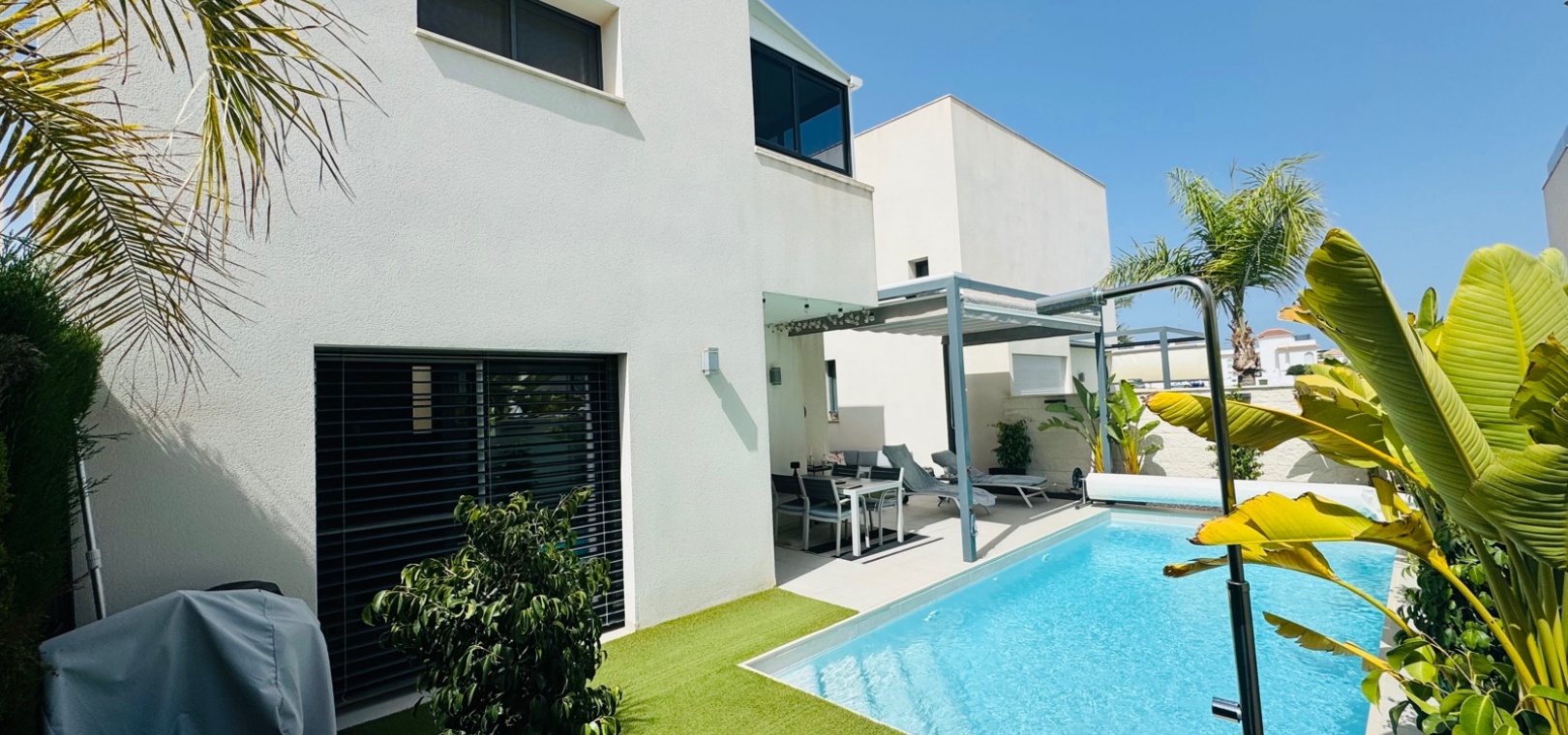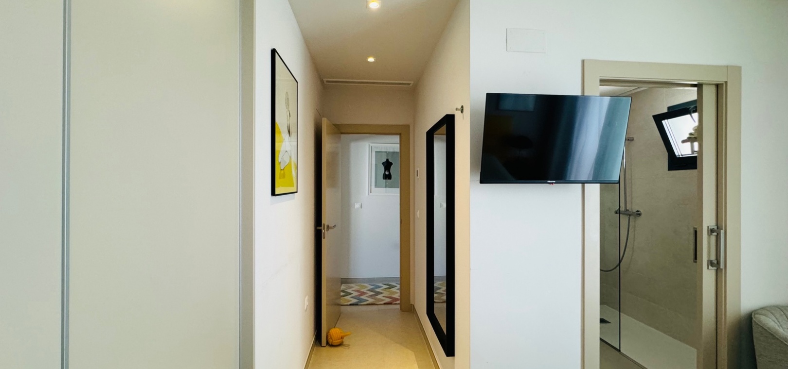 We are pleased to introduce this contemporary home that offers a spacious and bright living room with direct access to the garden and pool area. The open-plan kitchen is fully equipped with modern appliances and high-quality finishes. Both bedrooms are generously sized and come with built-in wardrobes, while the two stylish bathrooms are fitted with modern fixtures and walk-in showers.The outdoor space is perfect for relaxation and entertainment, featuring a beautifully landscaped garden, a heated pool, and ample space for lounging and al fresco dining. The property also includes a private parking spot for your convenience. Situated in the peaceful and desirable Pueblo Bravo area, this home offers both tranquility and easy access to local amenities and the vibrant center of Ciudad Quesada.